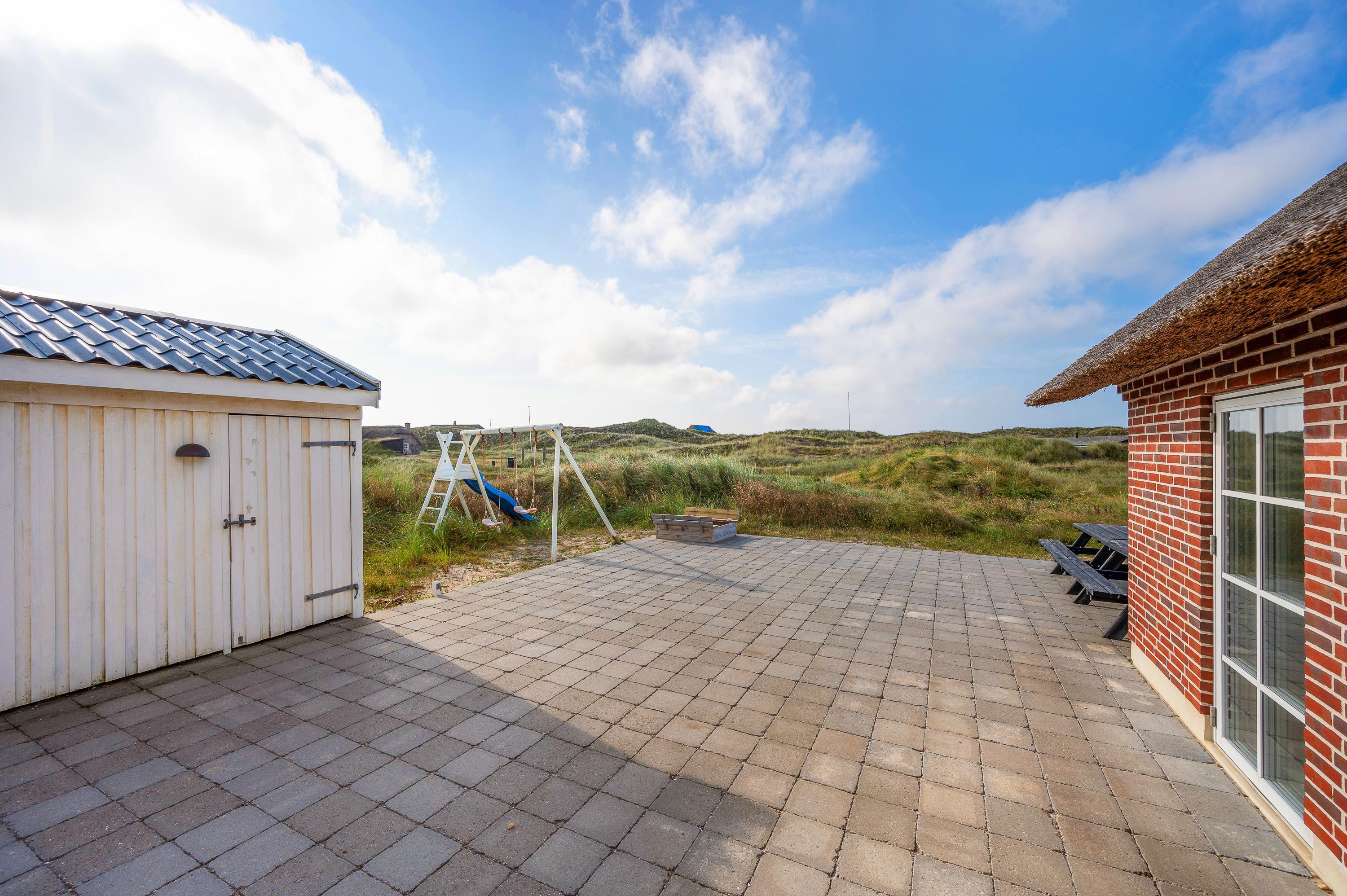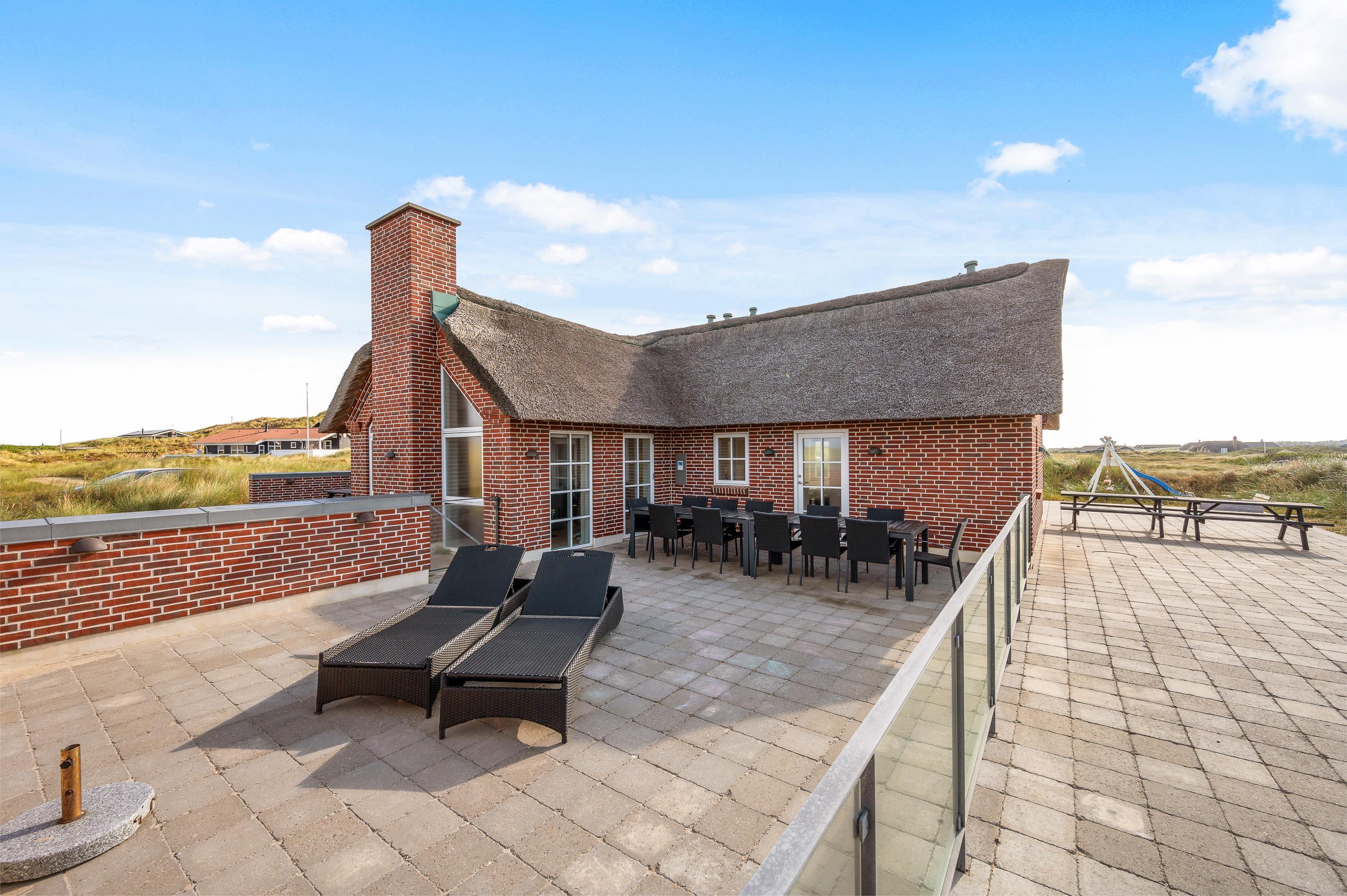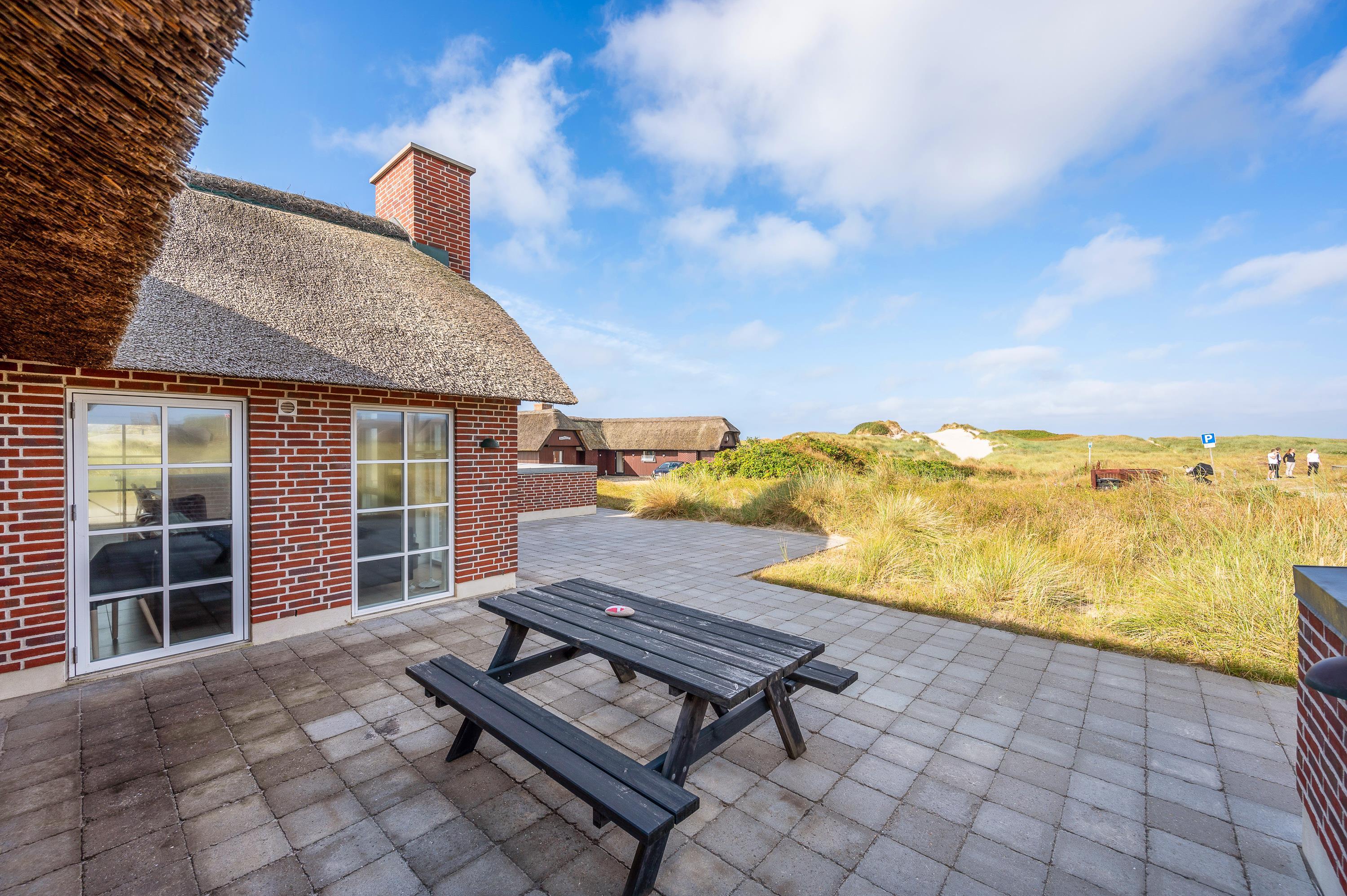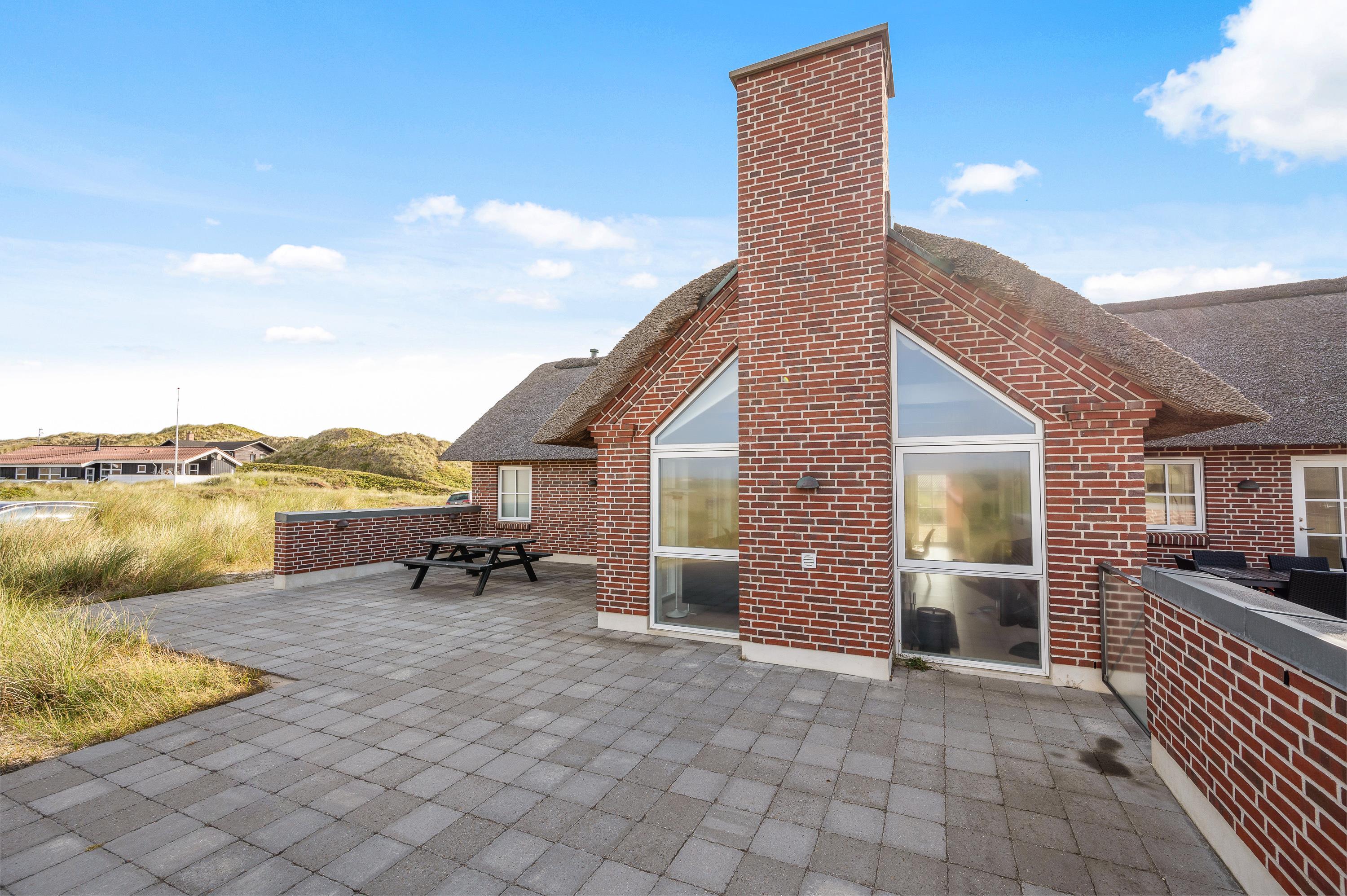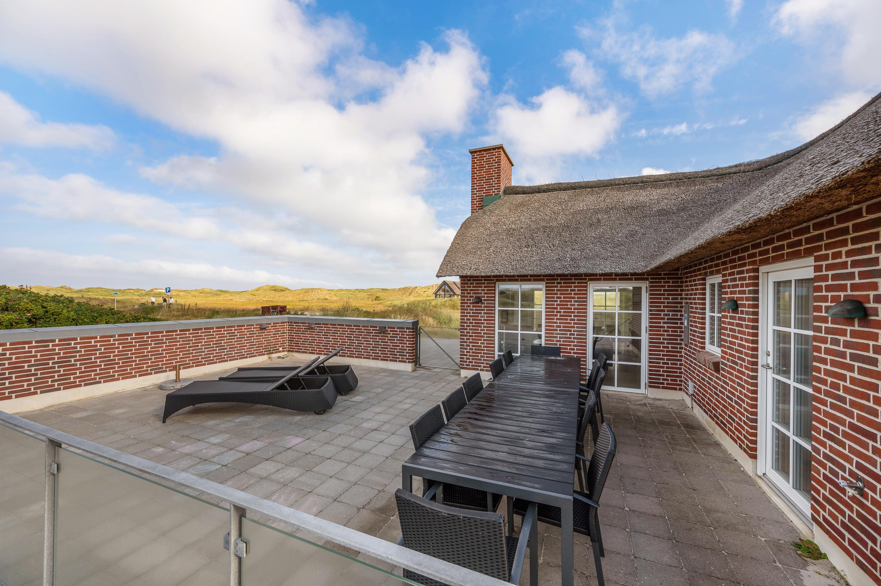 Huset er omgivet af gode terrasser mod både øst, syd og vest. Det betyder også, at uanset tidspunkt på dagen kan I finde en solrig plet, hvor I kan slå jer ned og nyde lyden af Vesterhavets brusende bølger i baggrinden. Der er naturligvis sørget for både liggestole, havemøbler og grill, så I virkelig slappe af og nyde sommeren med grillhygge og solbadning.