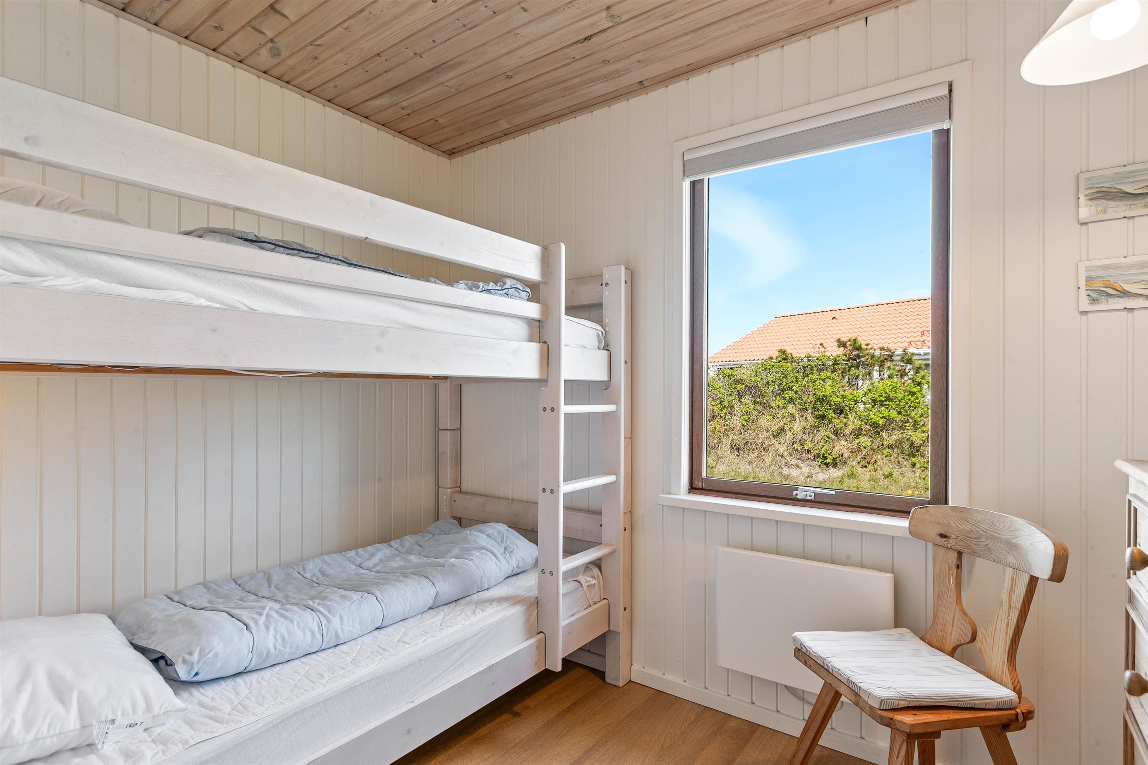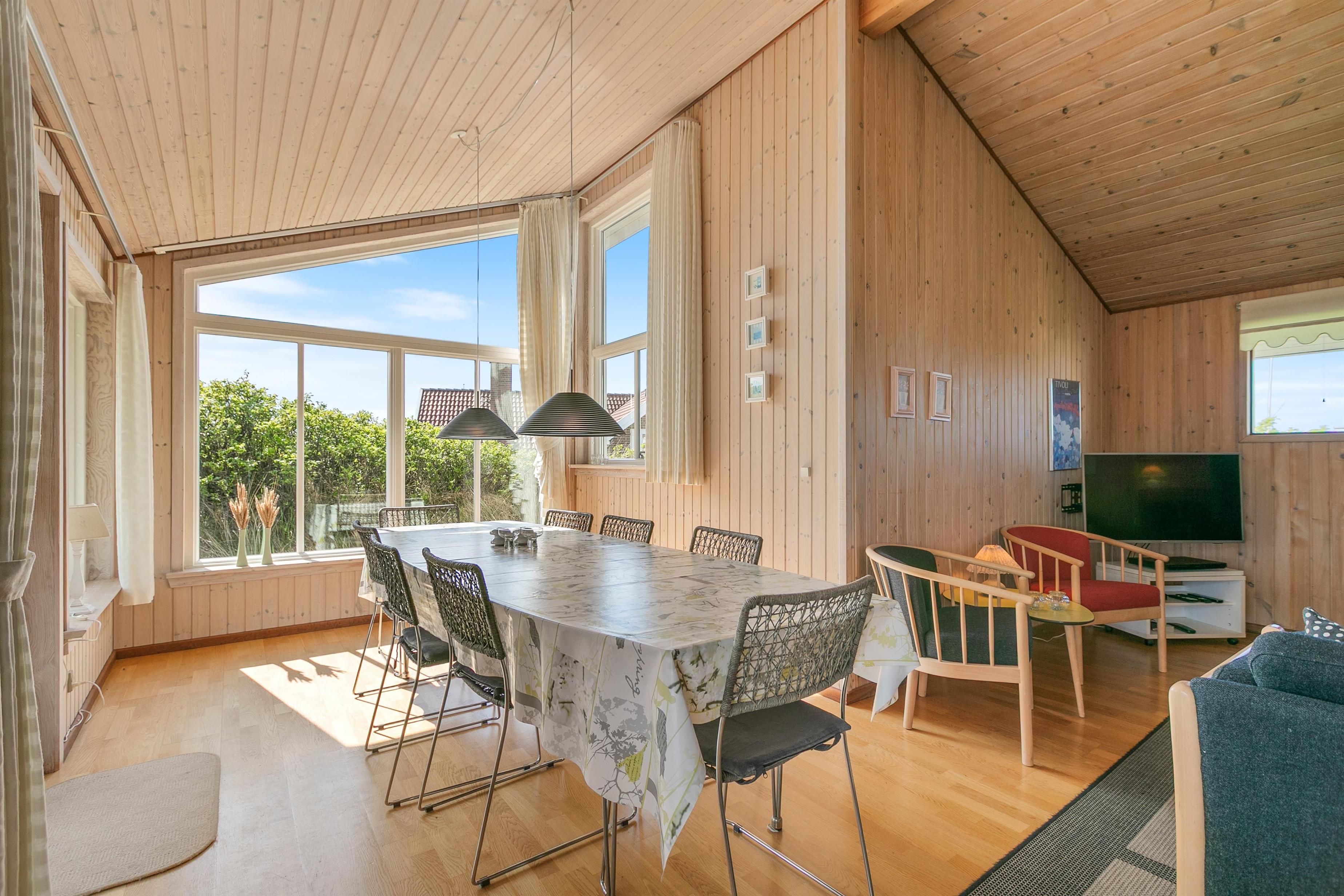 Sommerhuset ligger få minutters gang fra det brusende Vesterhav, og både store og små kan følge med på de 350 meter til strandkanten. Den kilometerlange sandstrand byder på nye oplevelser hele året rundt, og både store og små feriegæster vil elske en udflugt til stranden.