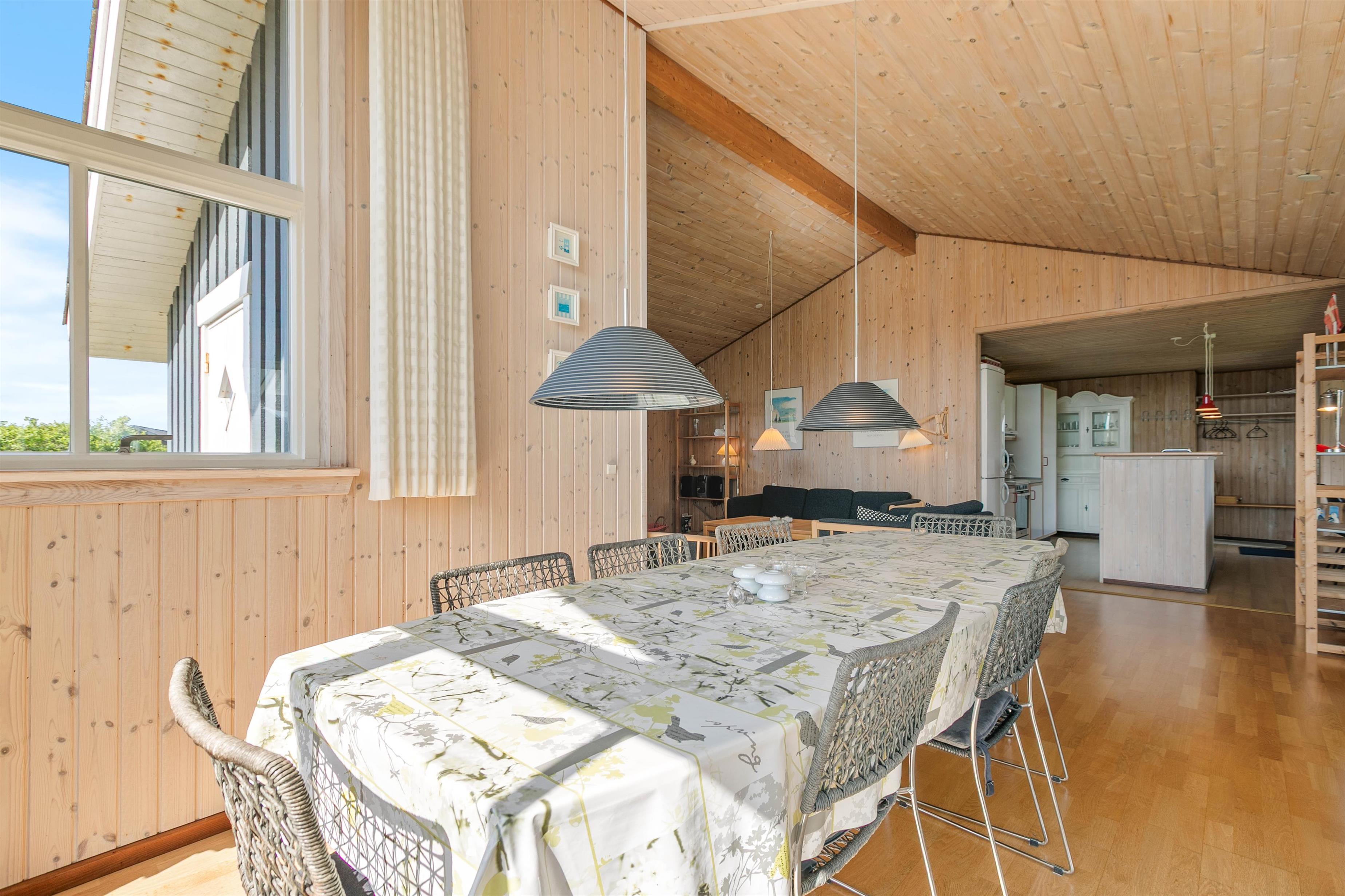 Det charmerende træhus i Søndervig sætter rammerne for en dejlig familieferie med mulighed for at koble helt af. Indretningen er venlig og indbydende, og de høje lofter og lyse træfarver gør huset endnu mere rummeligt og skaber en god atmosfære.