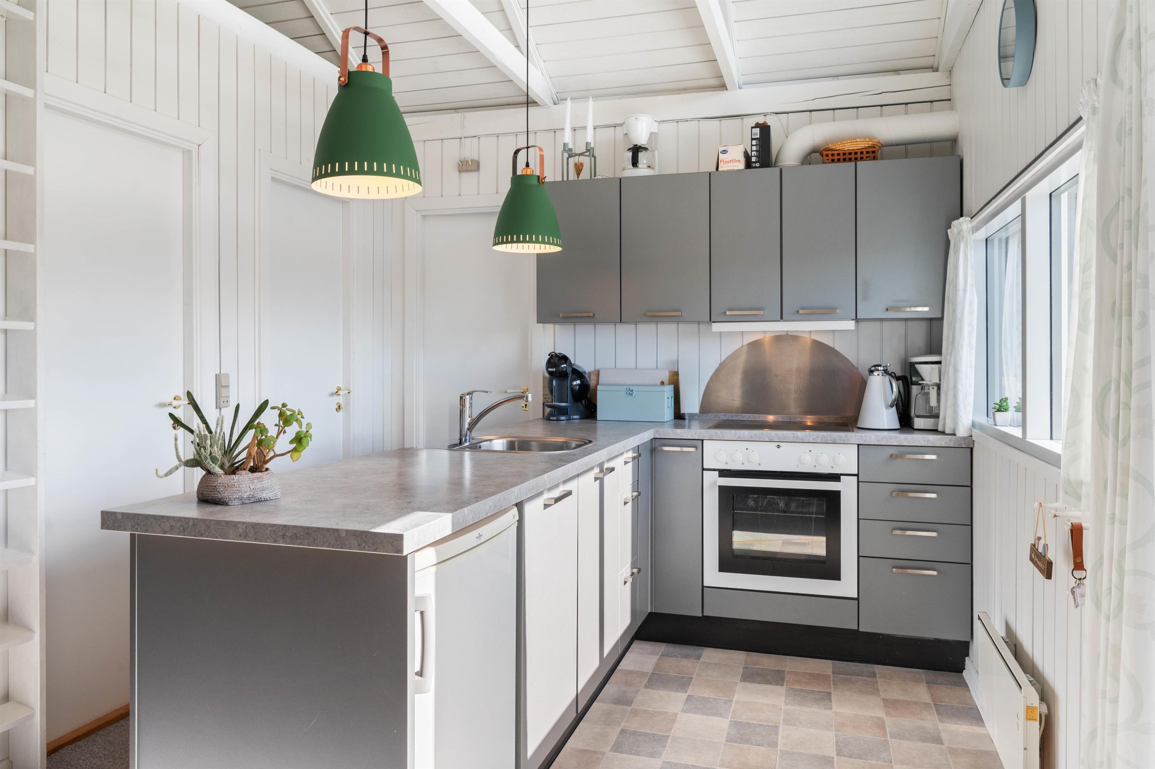 Her er desuden lyst grundet de hvidmalede vægge og lofter, og i sammenspil med den smarte indretning. Det åbne køkken er husets midtpunkt. Når I står i køkkenet, er der stadig rig mulighed for at snakke sammen med de andre i huset. Gennem de store vinduer og terrassedøren kan I nyde naturen på tæt hold.