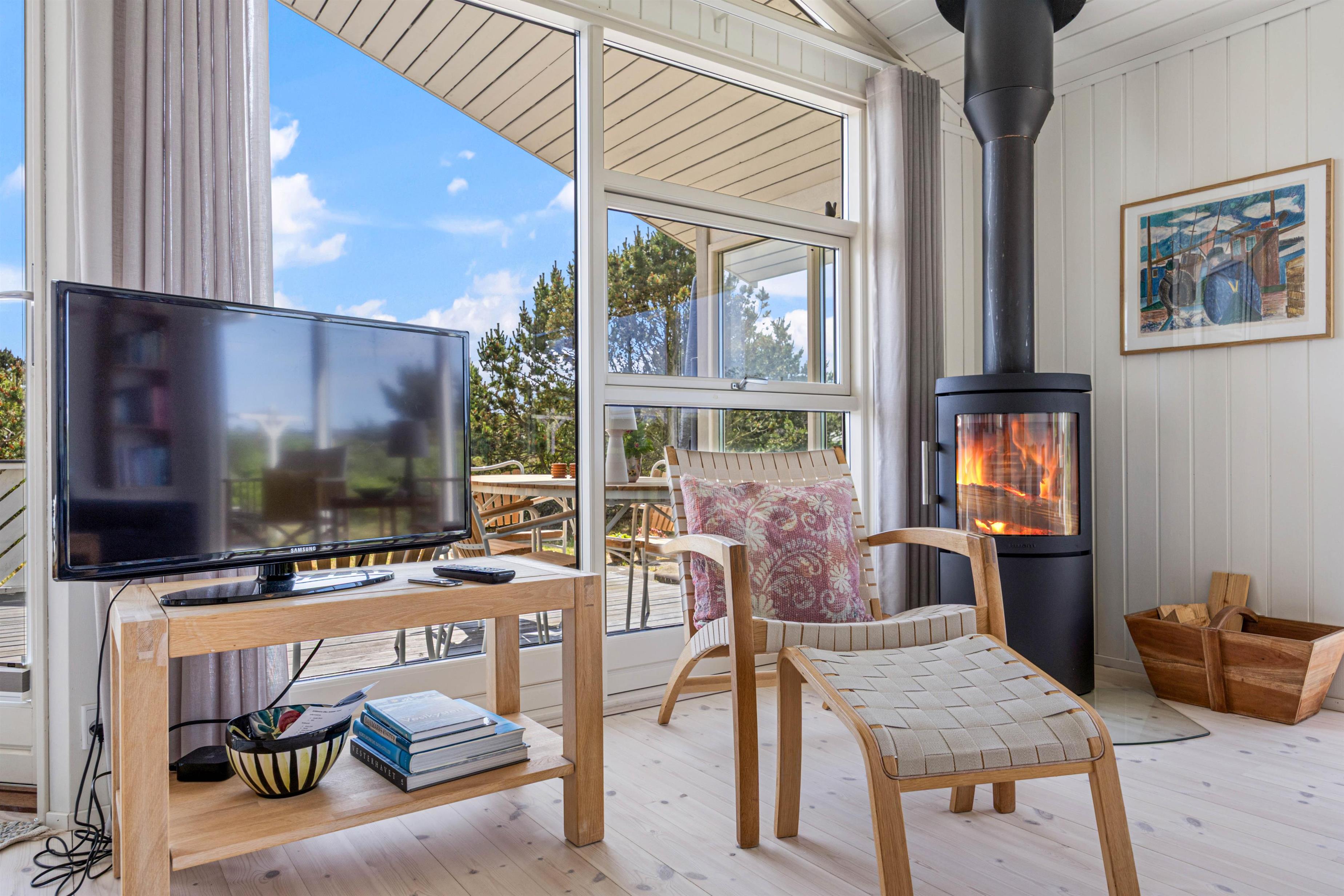 I sommerhusets hjerte finder I en brændeovn, der skaber en perfekt atmosfære på de køligere aftener. Hvis I hellere vil have en mere energivenlig opvarmning, kan I også få dette her i huset ved hjælp af den energivenlige luft-til-luft-varmepumpe, så I altid kan nyde et lunt miljø – uanset årstiden. Der er desuden gulvvarme i badeværelset. Vaskemaskinen sikrer, at I kan holde jeres garderobe ren, mens I nyder jeres ferie.