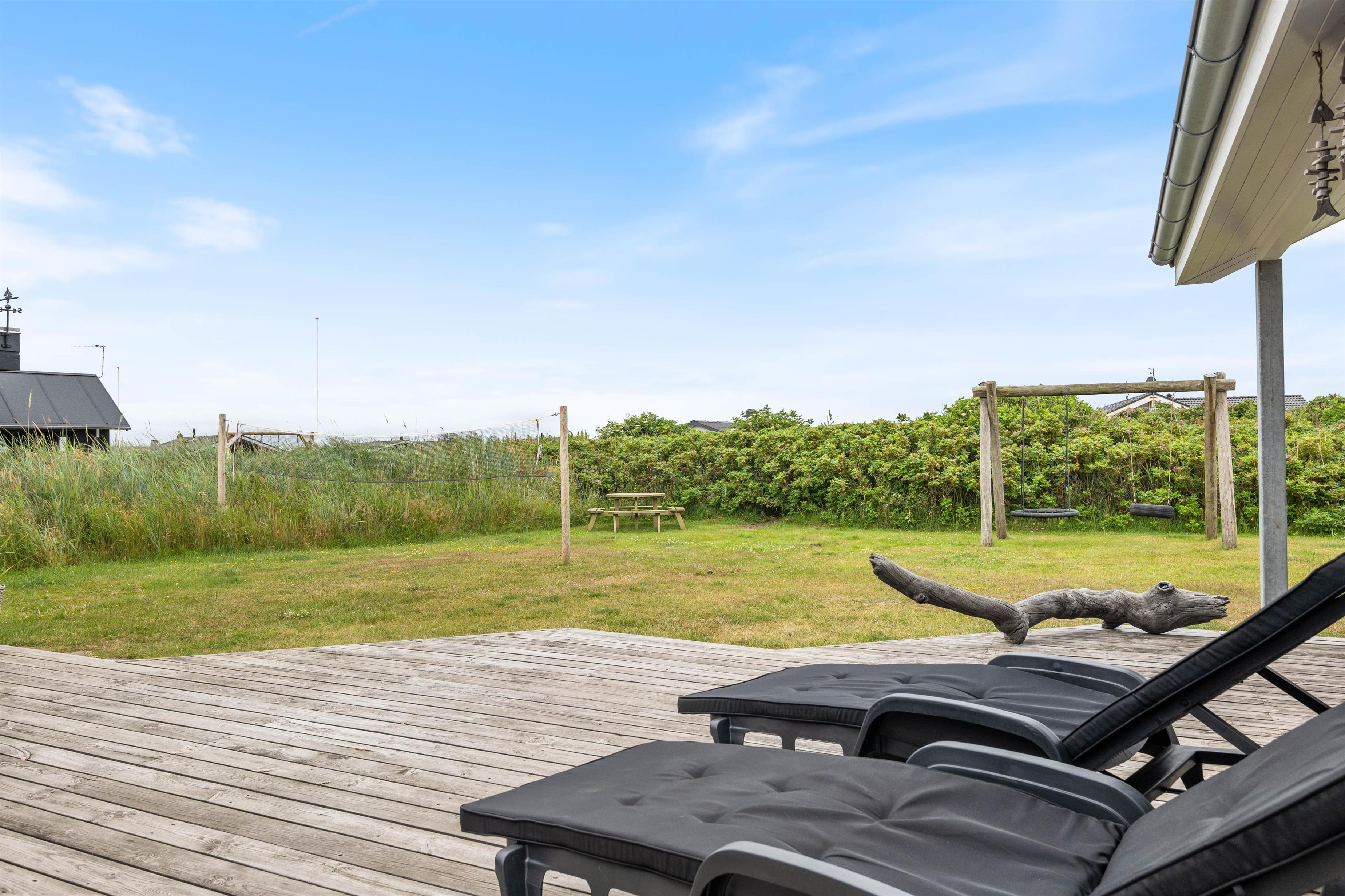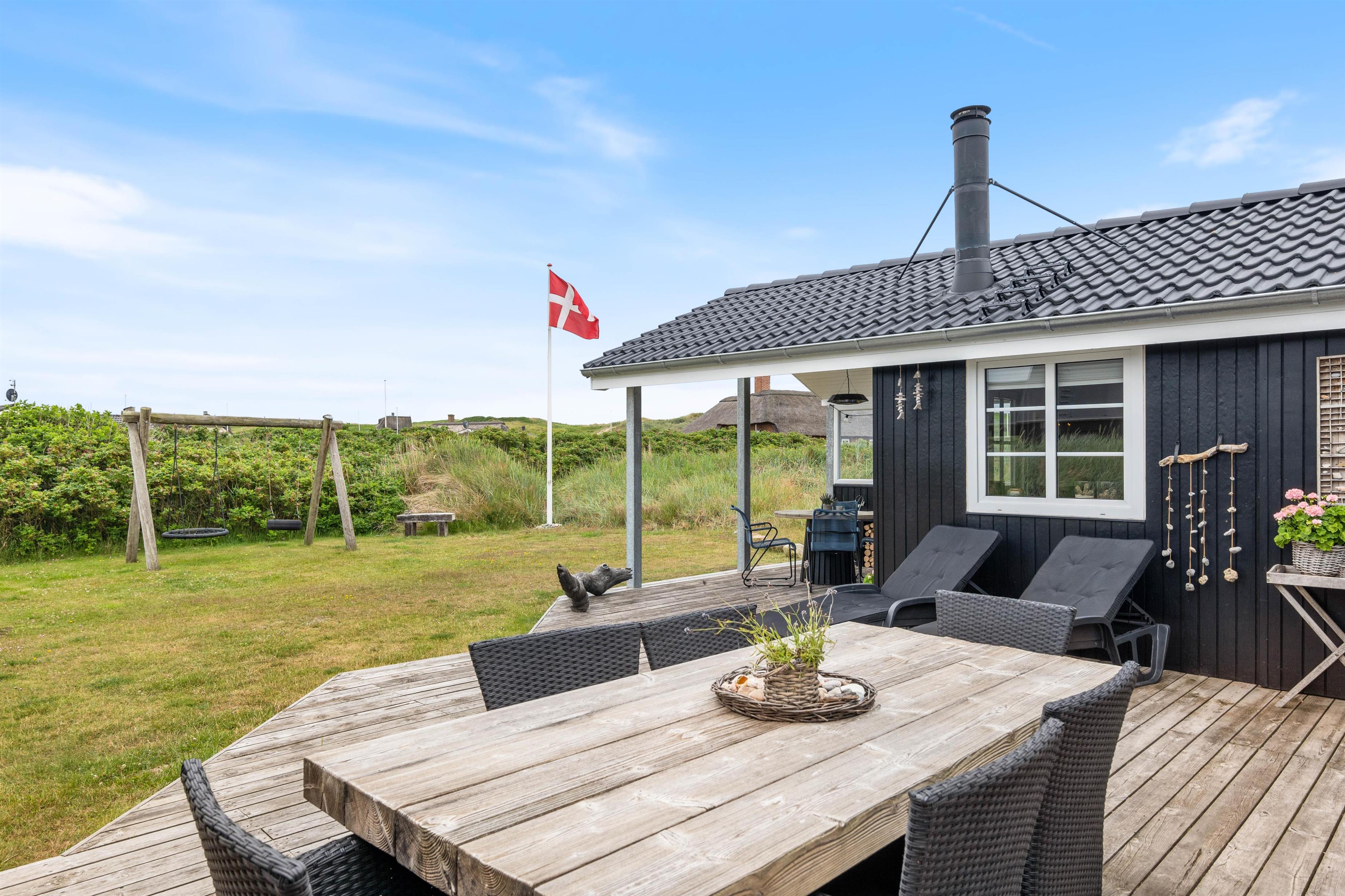 Sommerhuset ligger desuden på en god plænegrund med masser af plads til leg og boldspil for hele familien. I kan også tænde op i grillen og tilberede et dejligt måltid. Der er også en gynge til børnene, så hele familien kan få glæde af opholdet. Hvis du kommer i elbil, er der et ladestik, så du kan oplade bilen nemt og bekvemt. Dog skal I selv medbringe adapter hertil. Beliggenheden er også ideel, da der kun er 900 meter til nærmeste indkøbsmulighed.