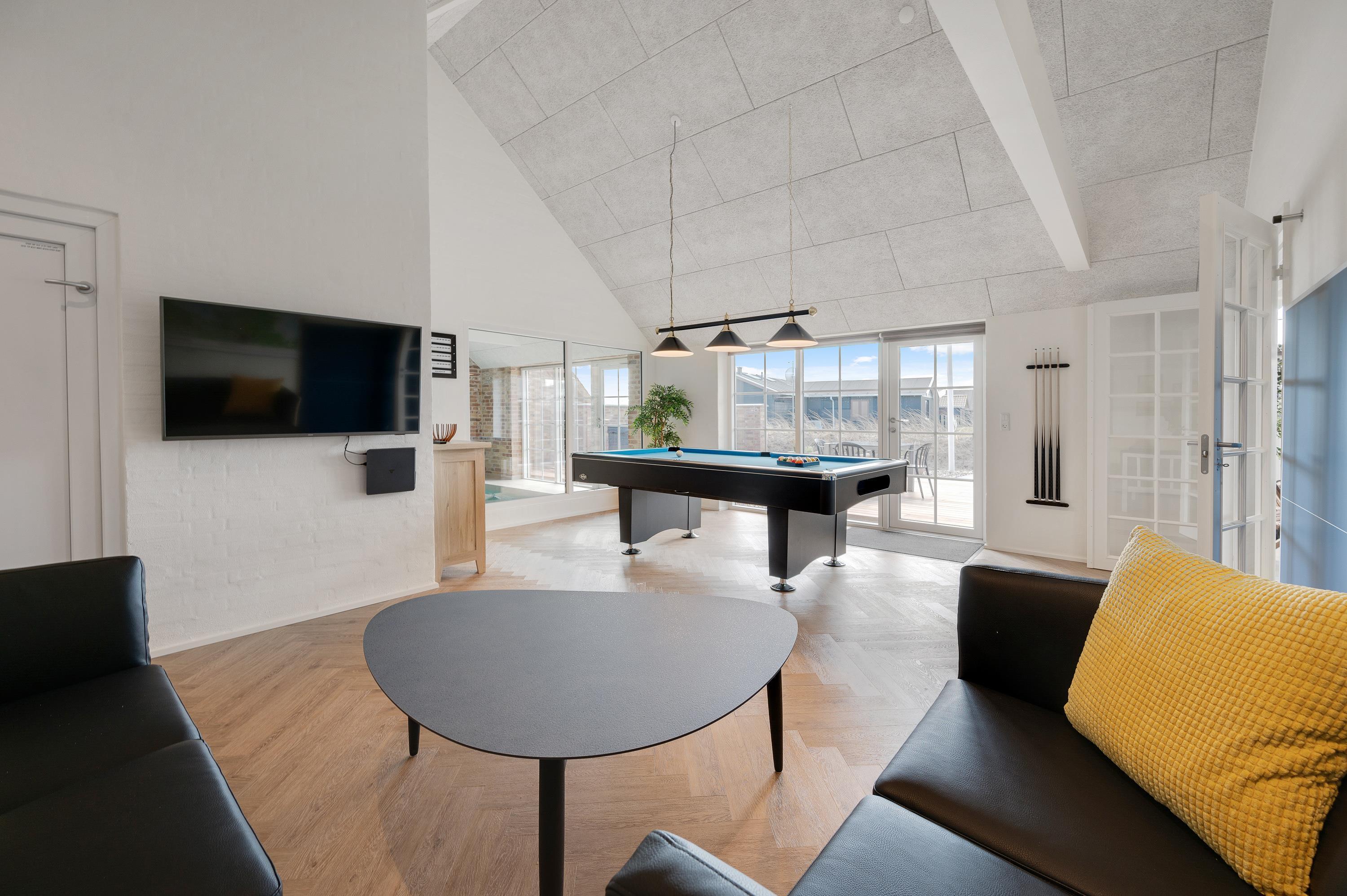 Mens nogle af jer ser en film i opholdsstuen, kan I andre dyste om, hvem der skal være feriens mester i billard eller bordtennis i aktivitetsrummet. Fra aktivitetsrummet er der adgang til poolrummet, som vil være højdepunktet for vandhundene iblandt jer. Hvis I vil være aktive under ferien, kan I også tænde for poolens modstrømsanlæg.