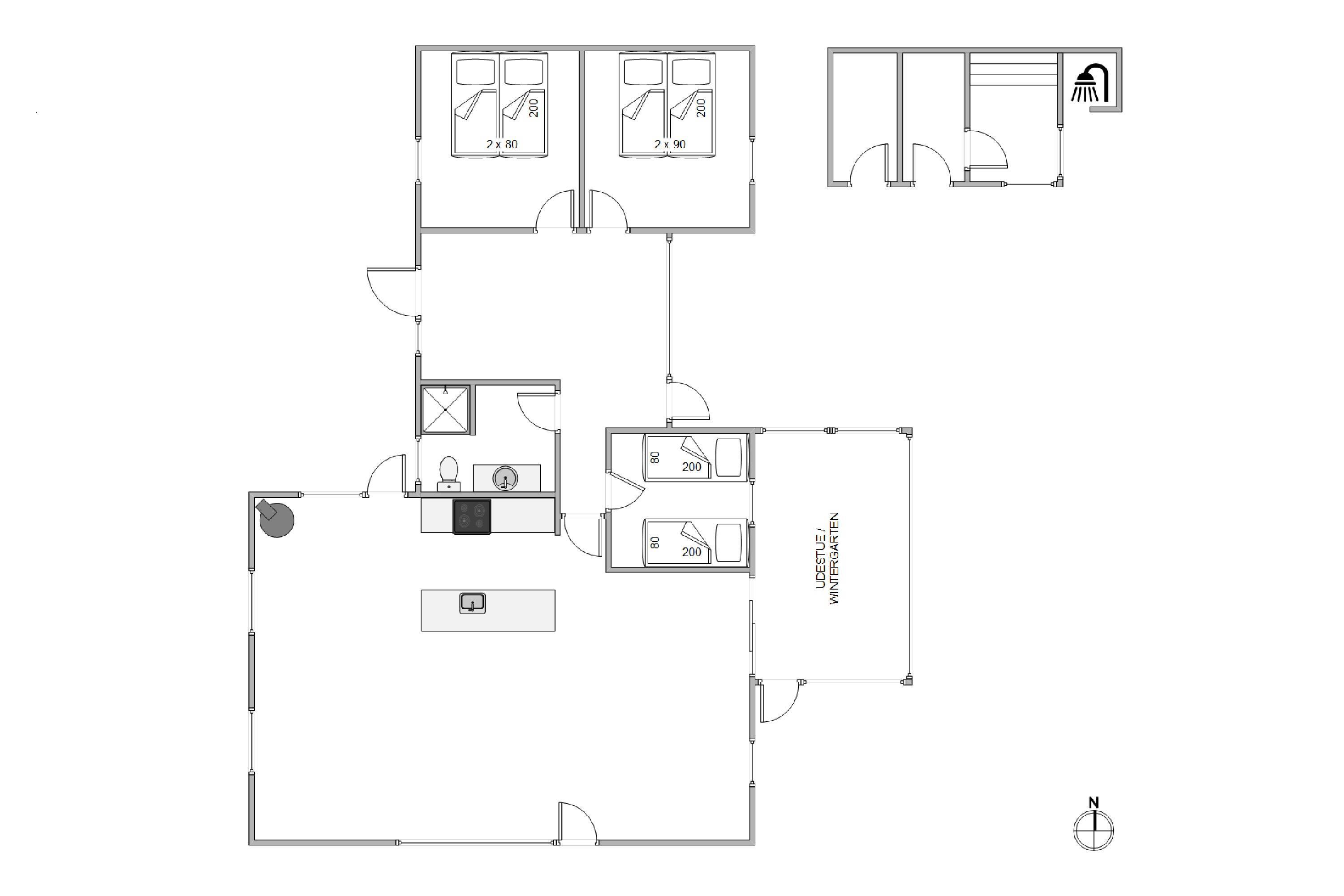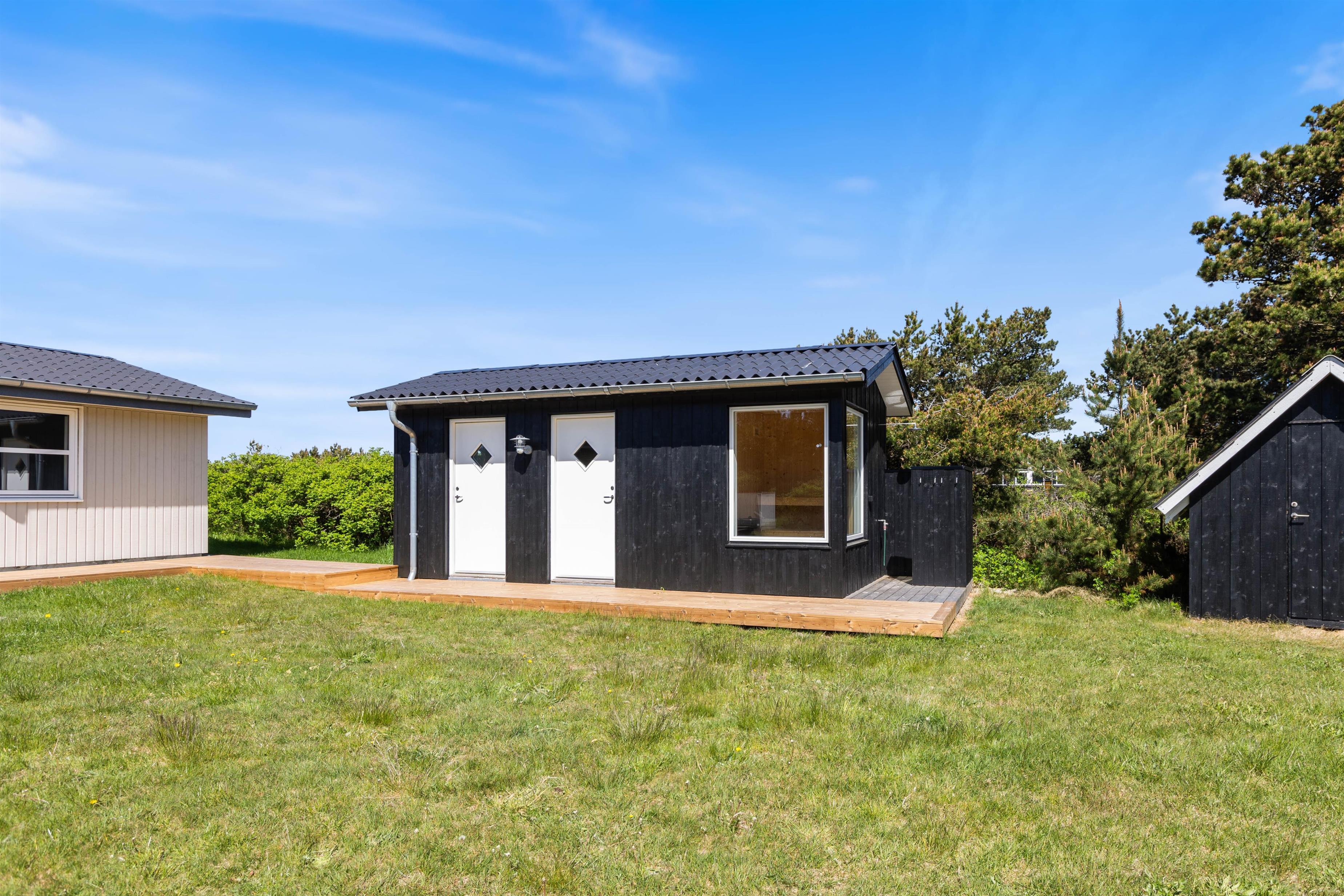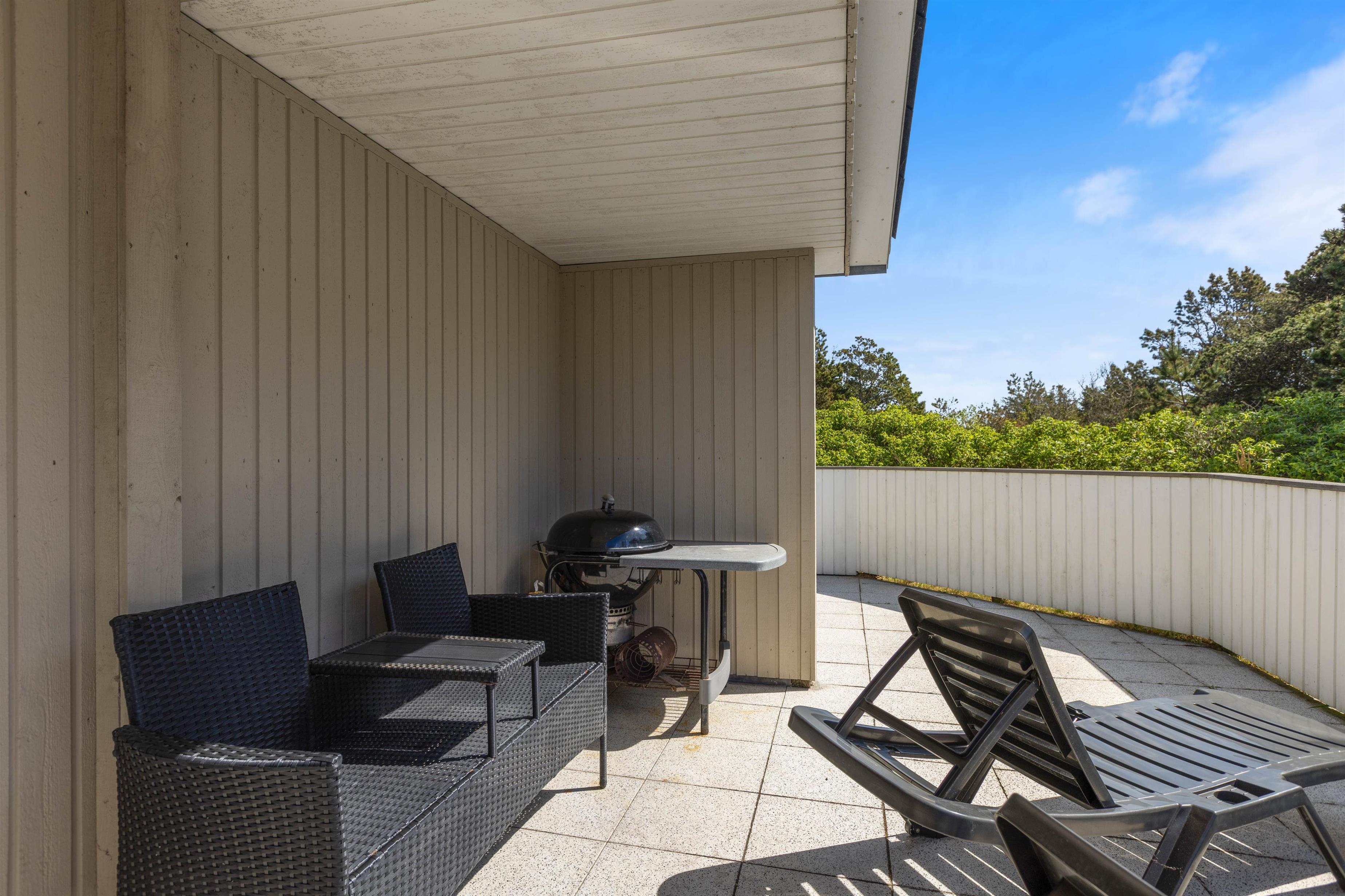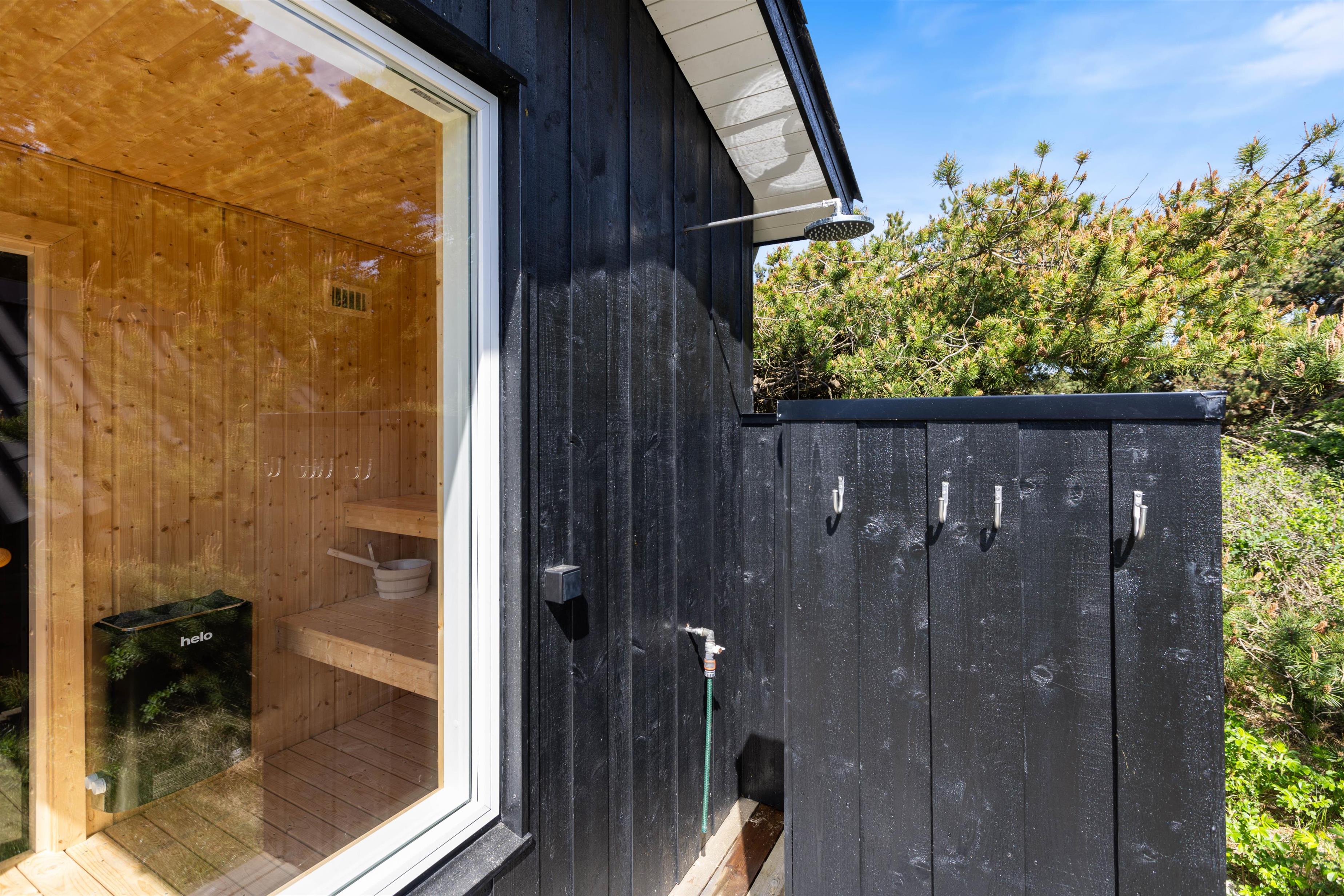 Har i været en tur på stranden, har I mulighed for at skylle sandet af kroppen igen, ved feriehusets udebruser. OBS: Udebruseren er kun tilgængelig fra april-november. Herefter er det oplagt at sætte jer ind i udesaunaen, og rigtig, mærke varmen.