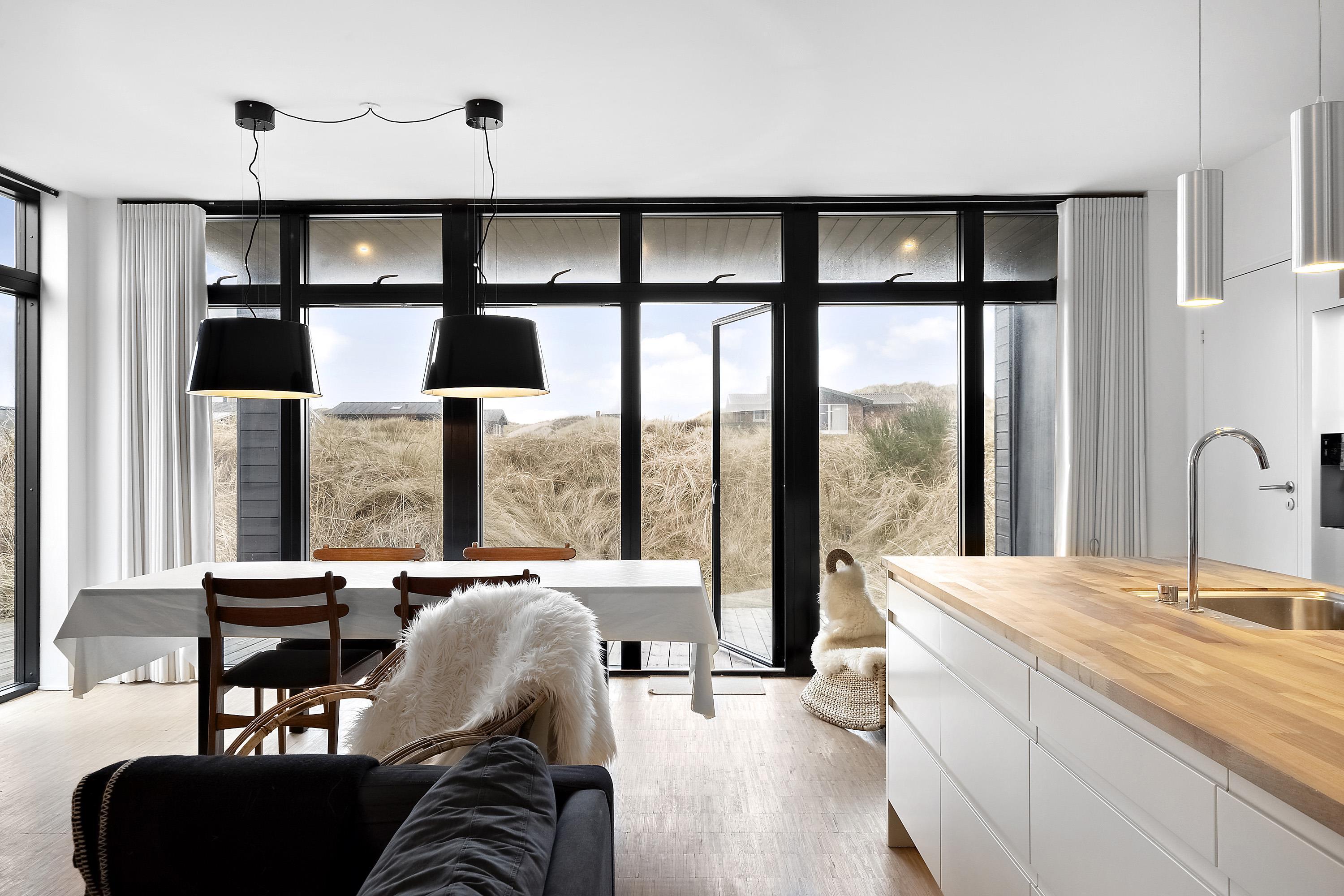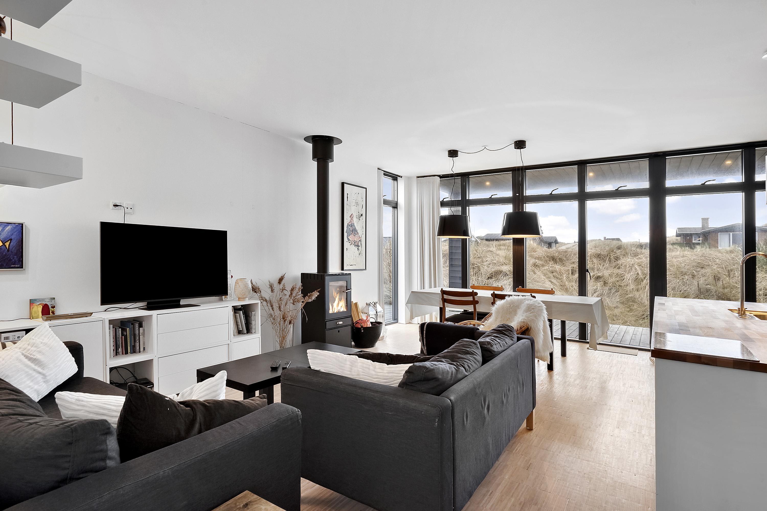Når I træder ind i ferielejligheden, starter jeres ferie, og tiden til afslapning kan begynde. Den hyggelige atmosfære suppleres af moderne elementer, og den smagfulde indretning er en fryd for øjet. I det åbne opholds- og spiserum kan alle finde deres komfortable hjørne og ydermere er hele feriehuset udstyret med gulvvarme.