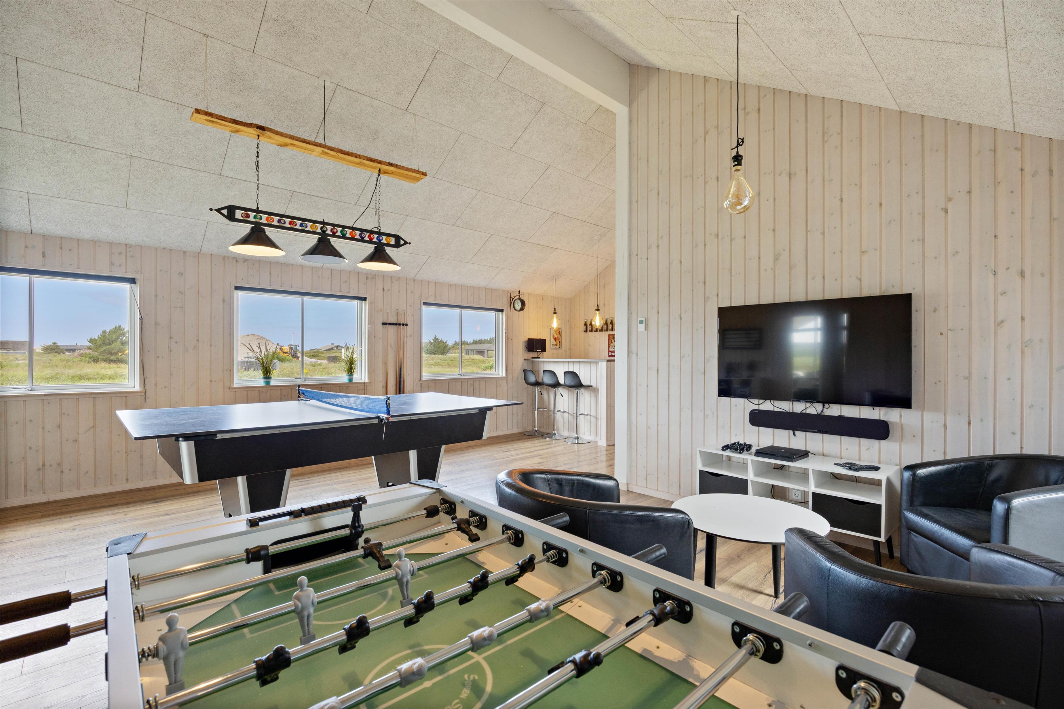 En af de mest bemærkelsesværdige faciliteter i dette sommerhus i Søndervig er uden tvivl den fantastiske poolafdeling, hvor I finder en 18 m² stor pool. Om I er en stor familie eller en gruppe venner, kan I nyde svømmeture året rundt. Sommerhuset tilbyder også en indendørs sauna og et spabad, hvorfra de voksne kan holde øje med børnenes leg og samtidig nyde lidt ekstra velvære og tanke fornyet energi.