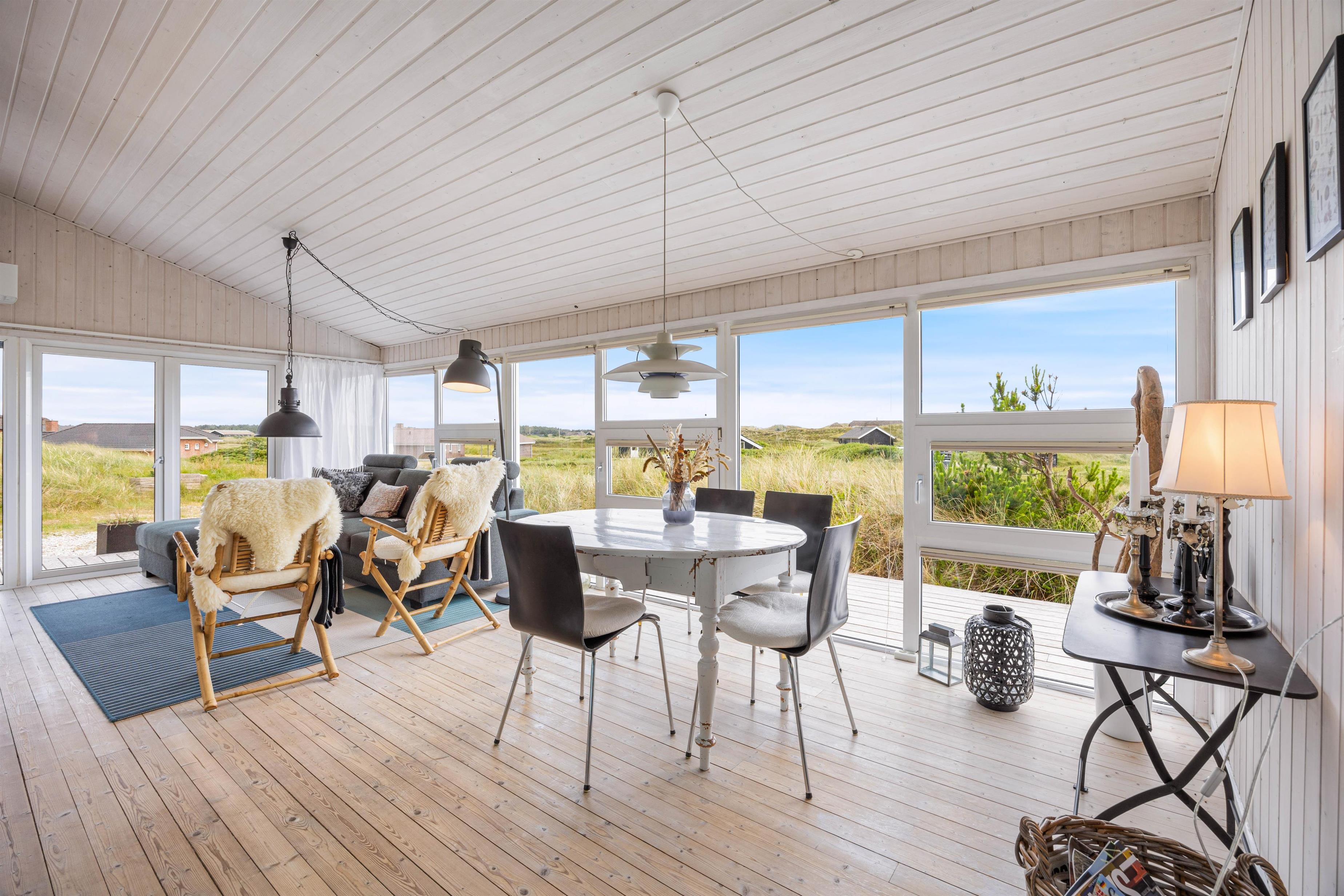Husets beliggenhed er helt fantastisk. I bor midt i det smukke klitlandskab, og terrassen er helt ugeneret omgivet af en høj klitbanke, som fungerer som naturlig afskærmning. Der hører også en ekstra lille terrasse med til huset, som ligger på klittoppen og giver jer en skøn udsigt over området.