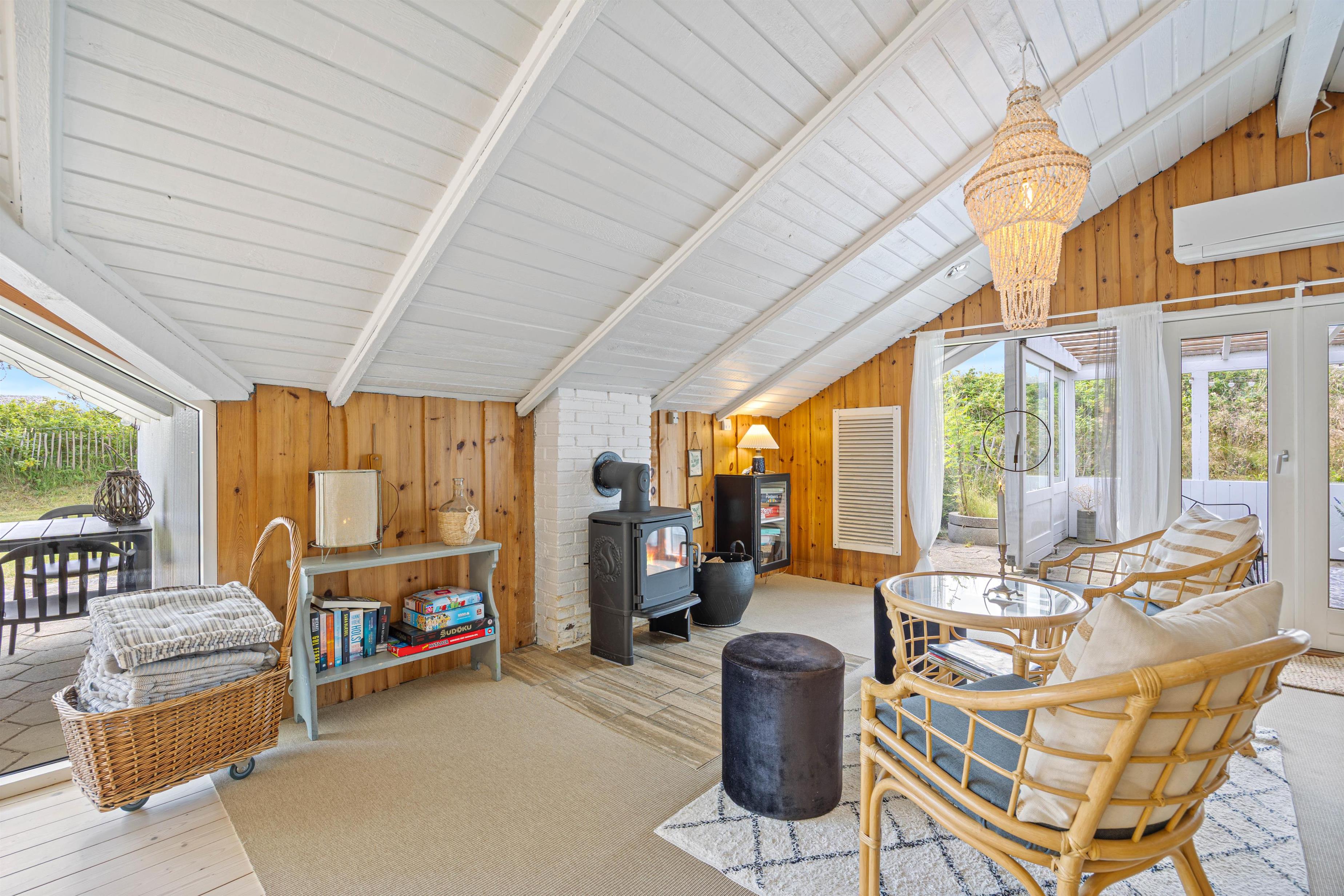 Feriehuset på Hvidbjergvej 27 emmer af ægte sommerhusstemning. Sommerhuset er i 2021 blevet renoveret med malede vægge og lofter og nyt gulv. Sommerhuset har en skøn, lys og rummelig stue, hvor I har rig mulighed for at sidde og nyde det skønne lysindfald fra det store vinduesparti. Stuen råder ydermere over en brændeovn, hvor I efter en gåtur på de lidt koldere dage igen kan få varmen, imens i lytter til træets knitren.