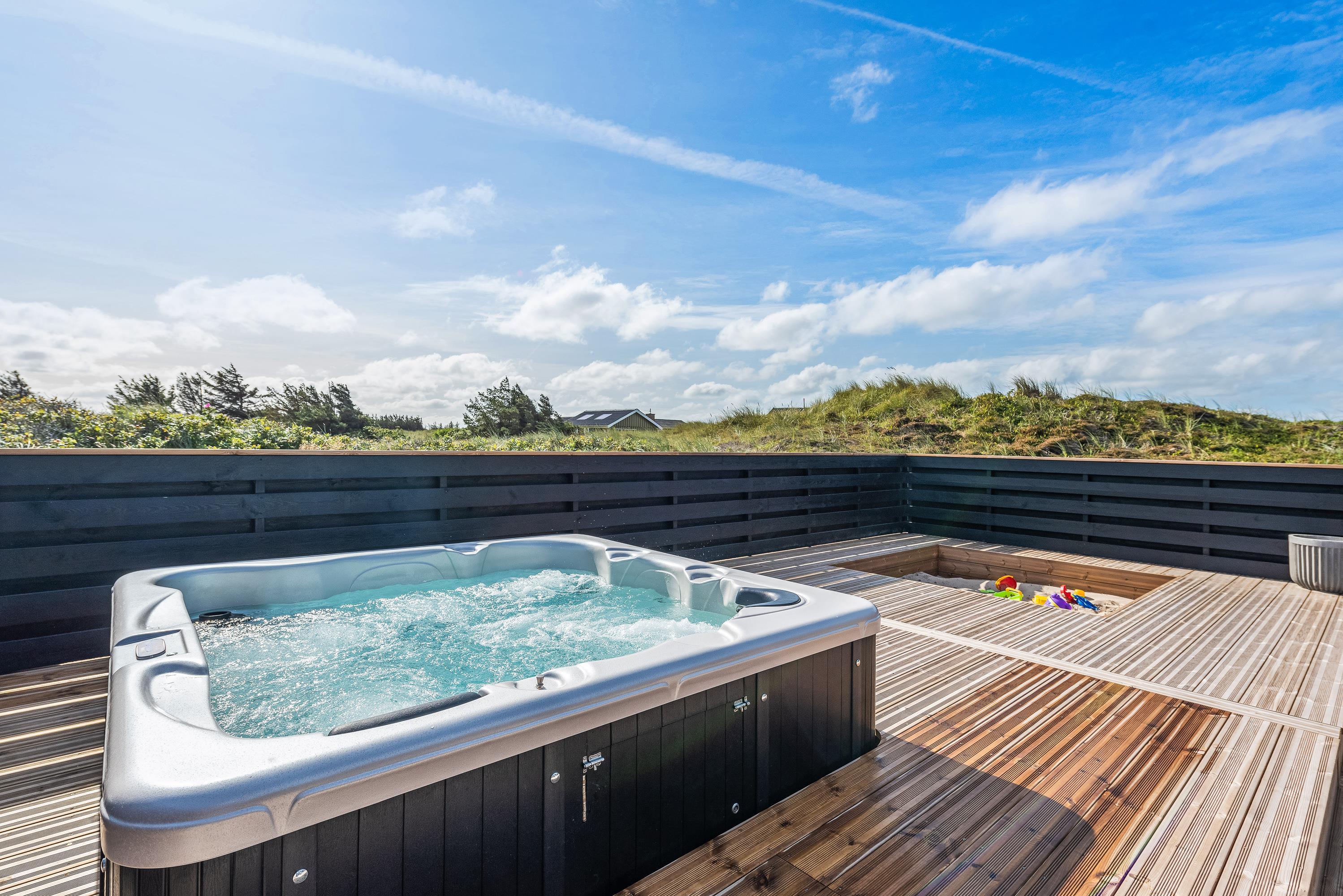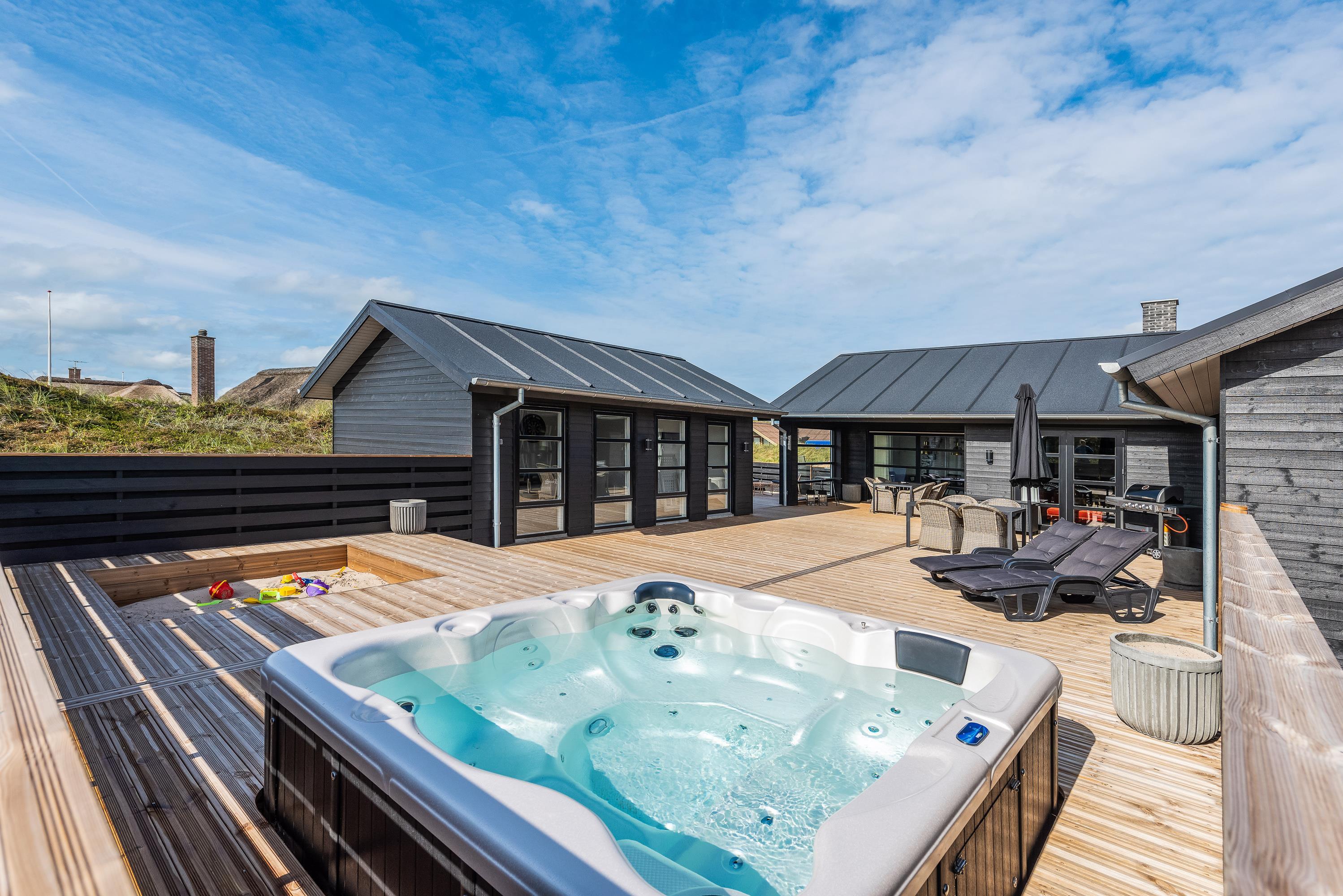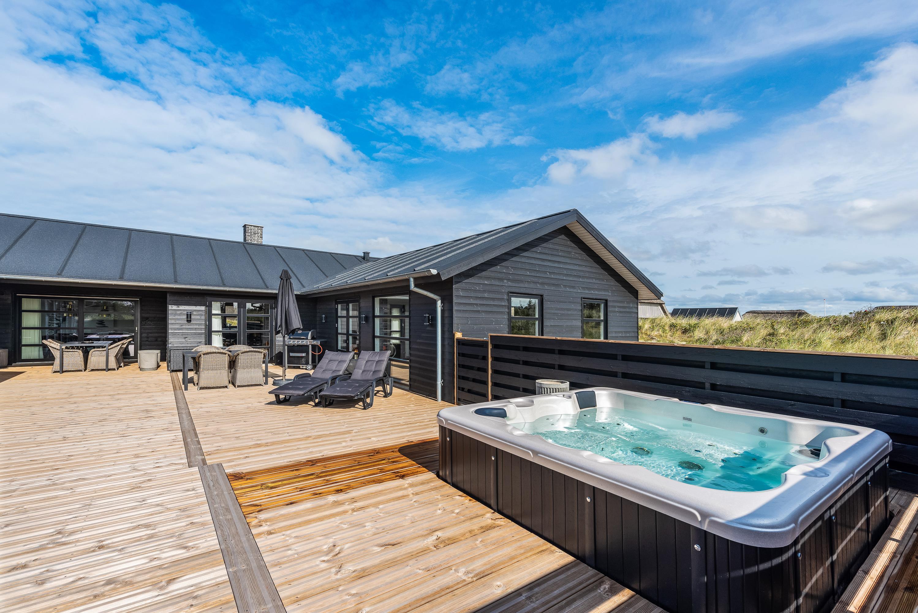 Indbydende sommerhus på Nordsøvej 388 med swimmingpool, aktivitetsrum, udendørs spabad og sauna