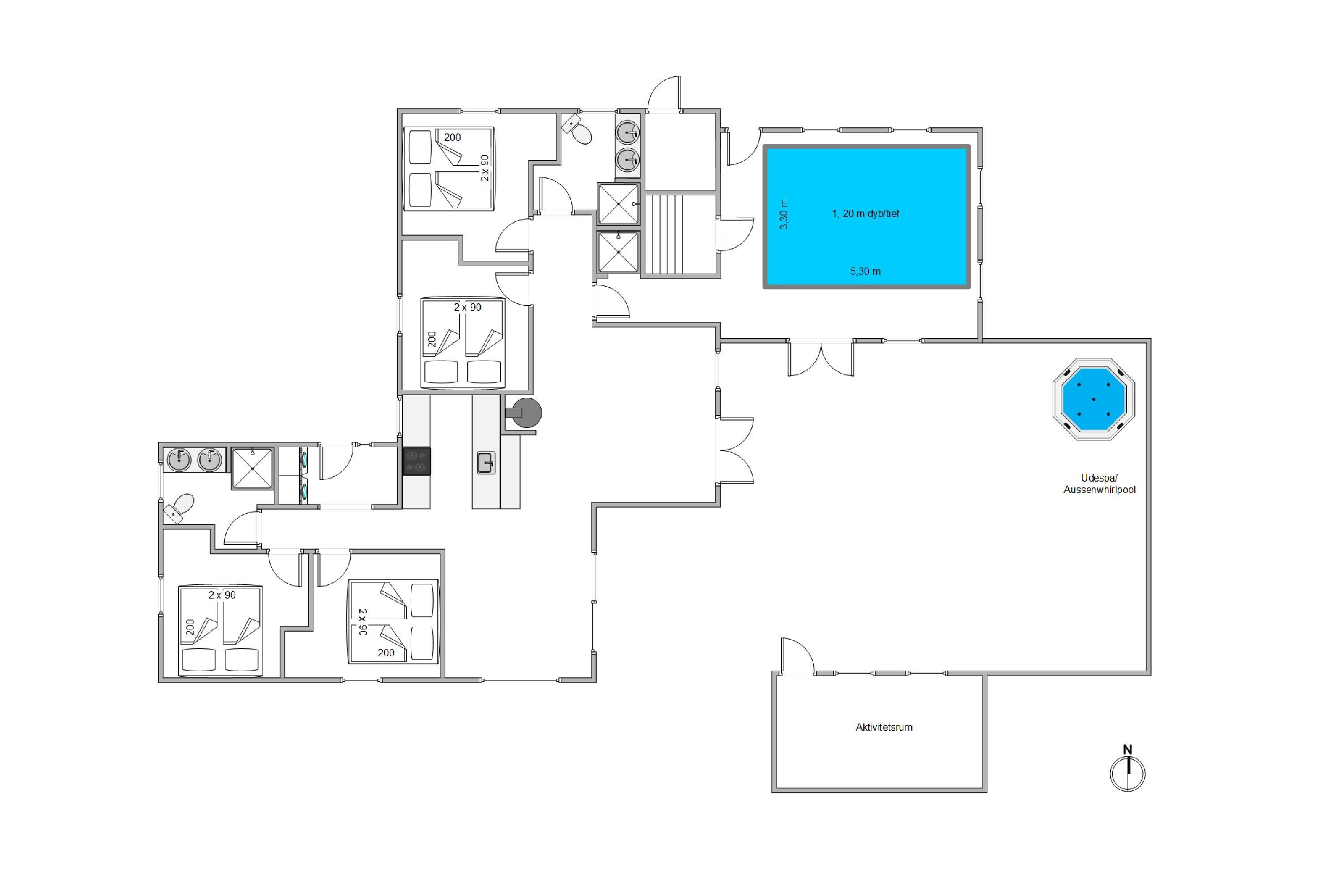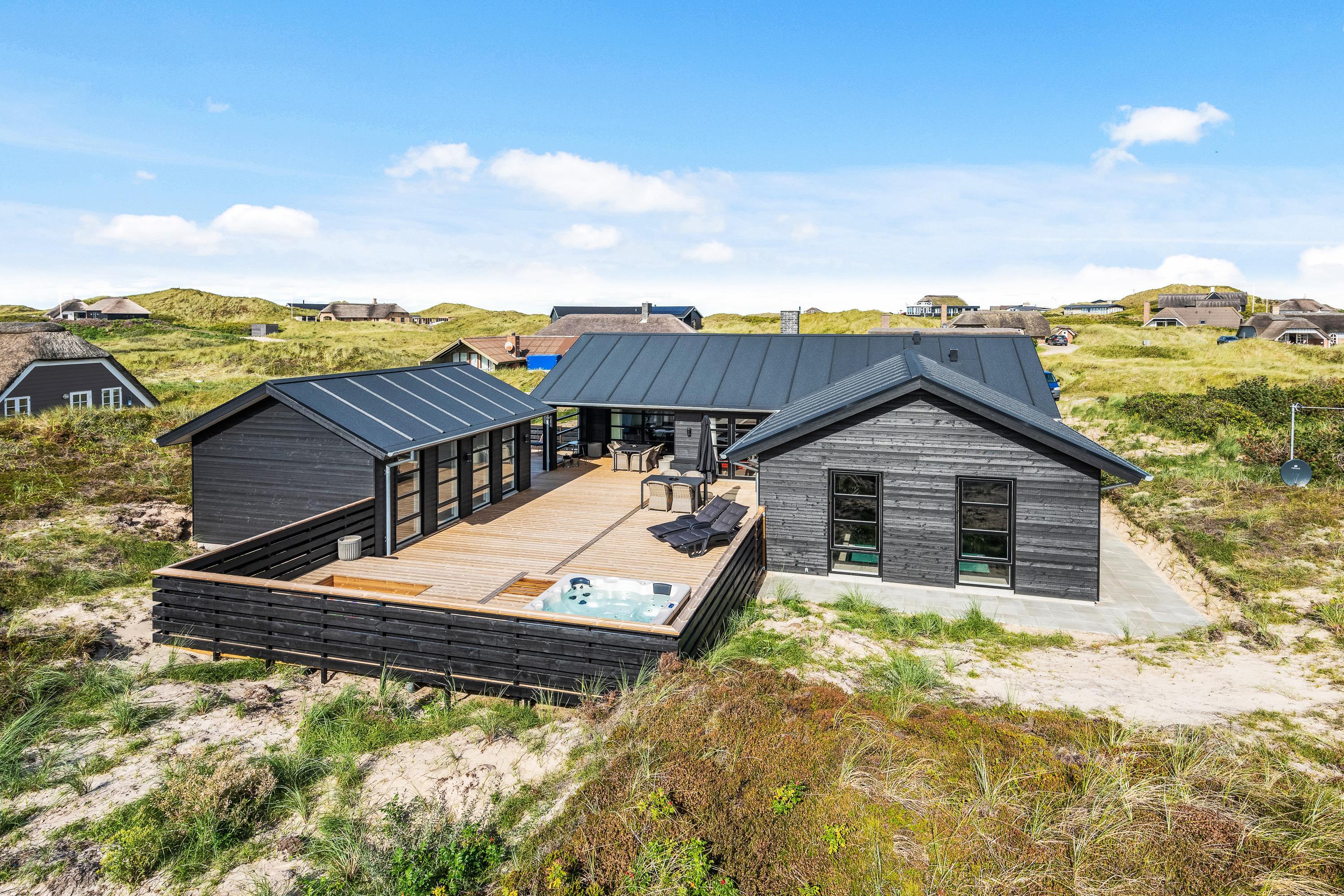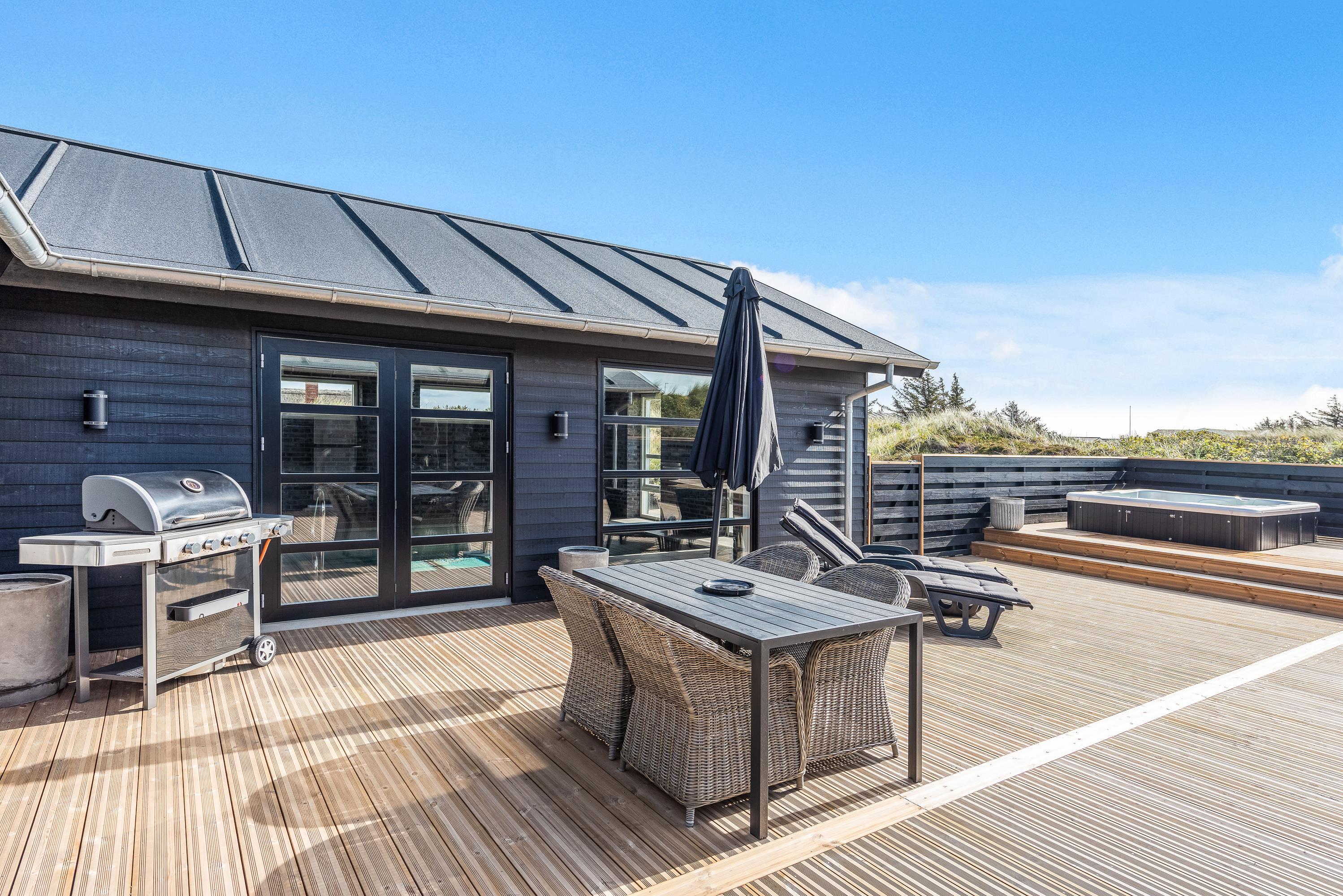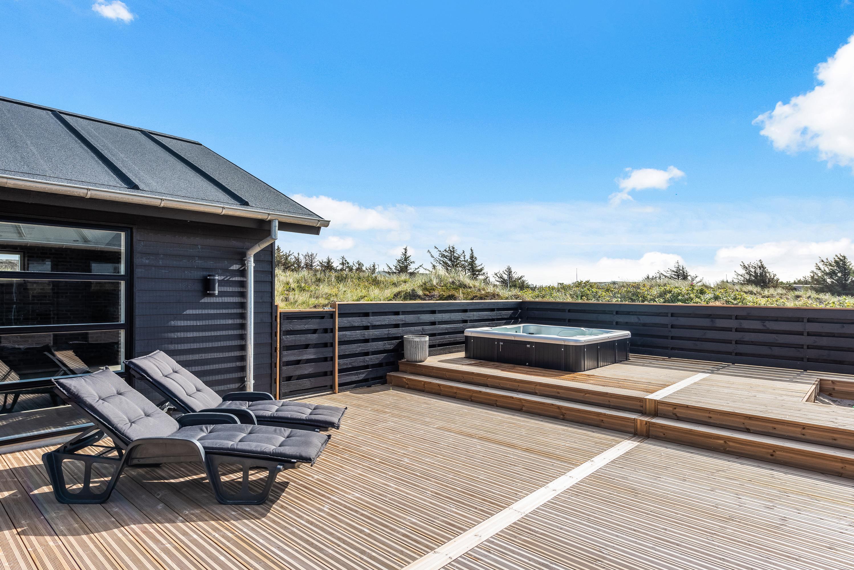 Indbydende sommerhus på Nordsøvej 388 med swimmingpool, aktivitetsrum, udendørs spabad og sauna