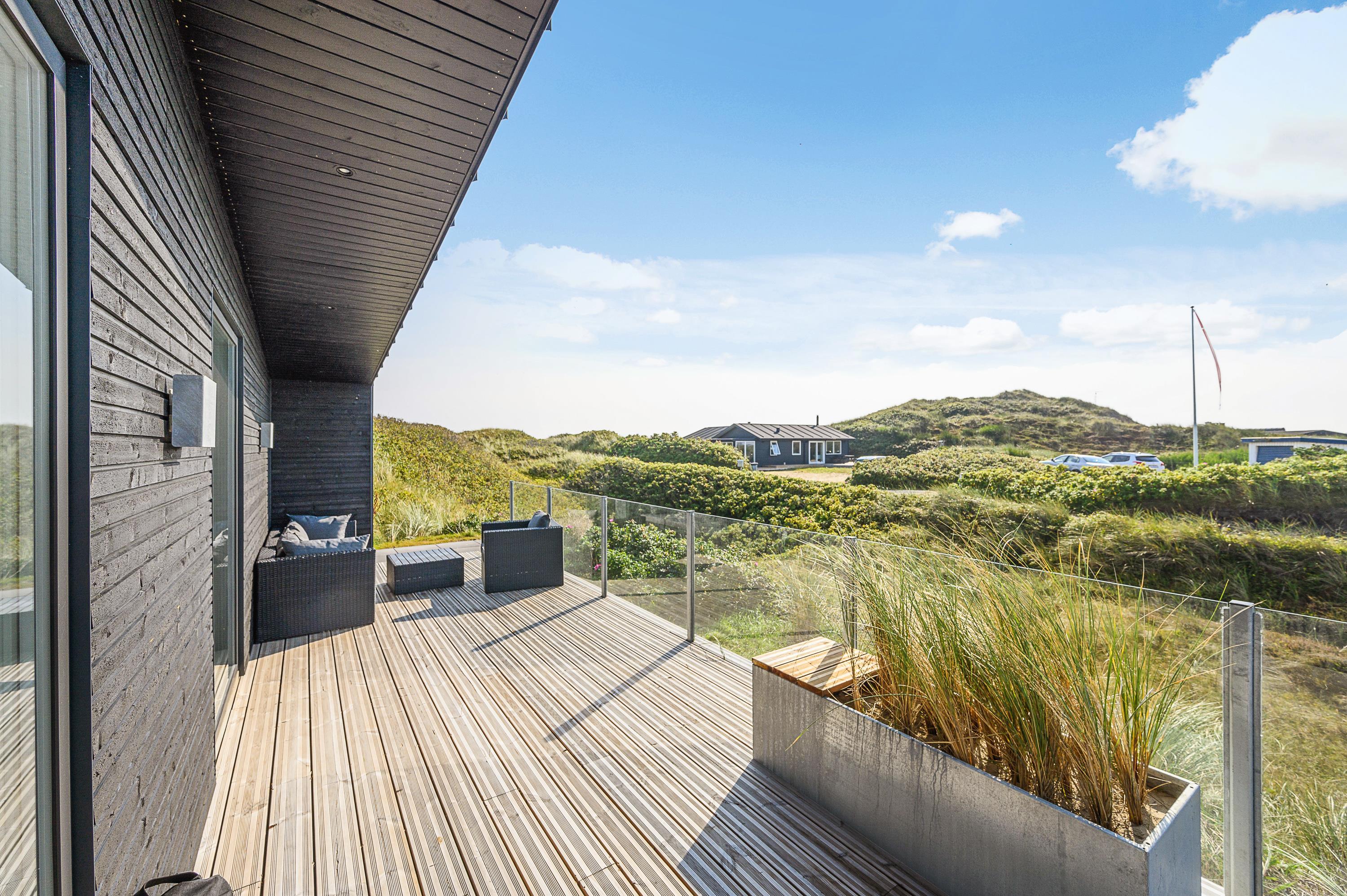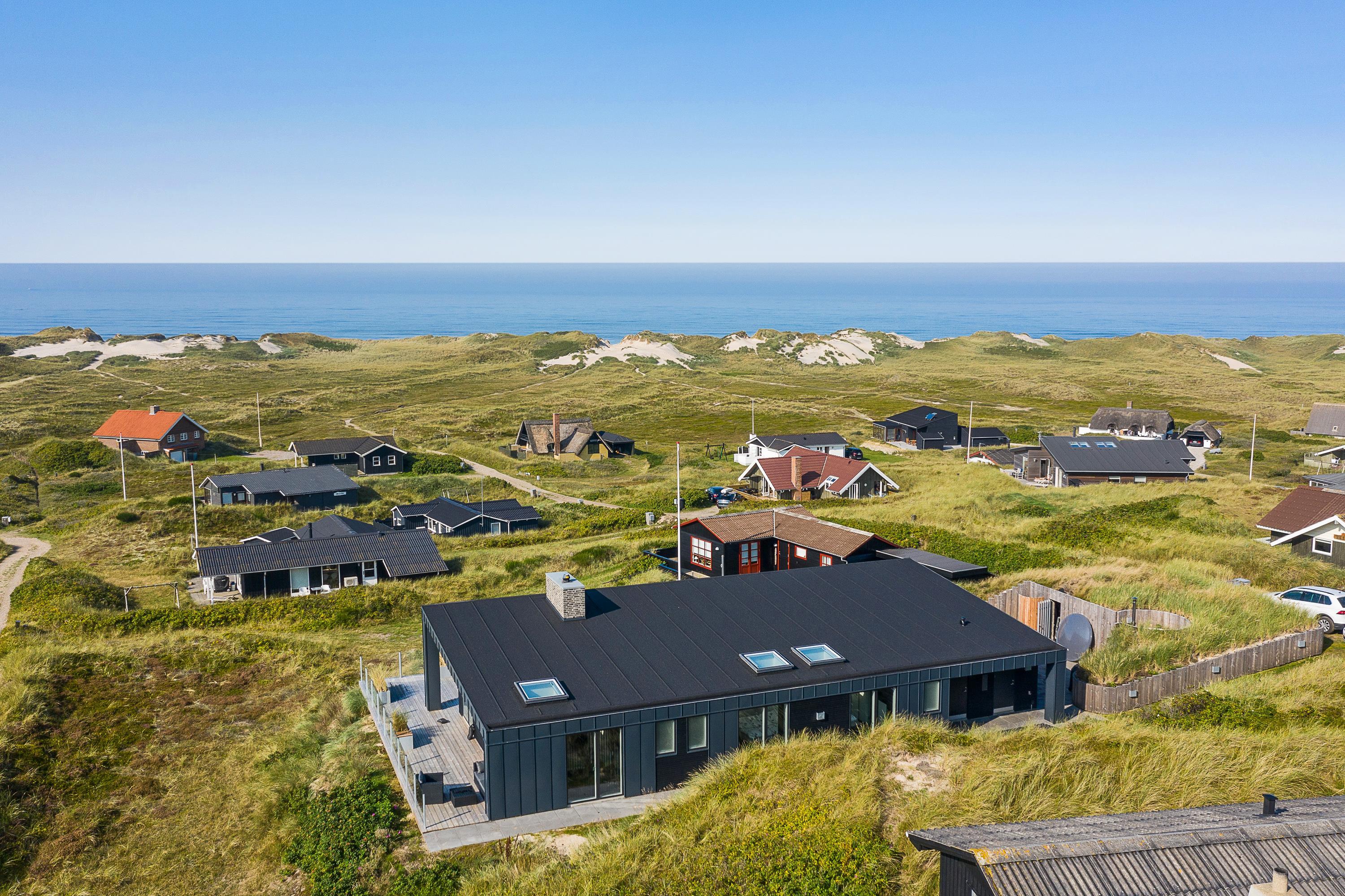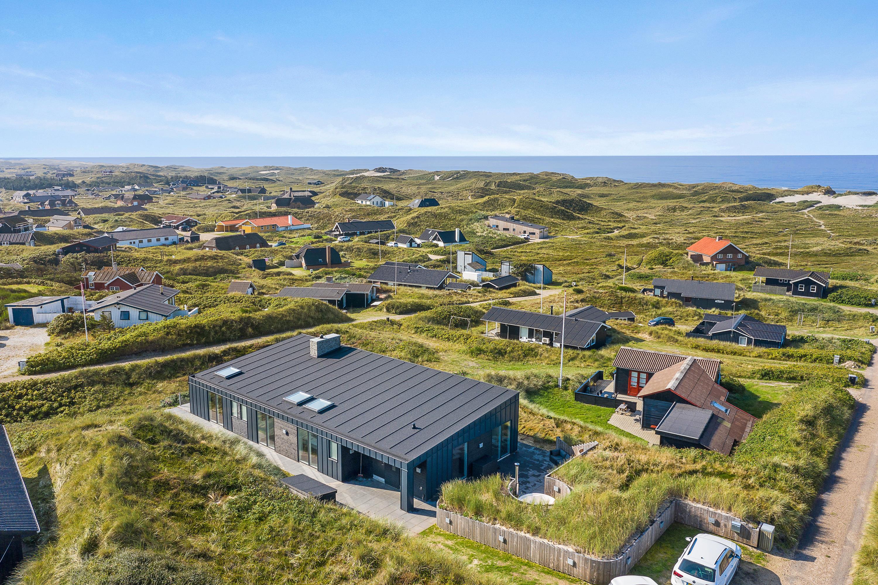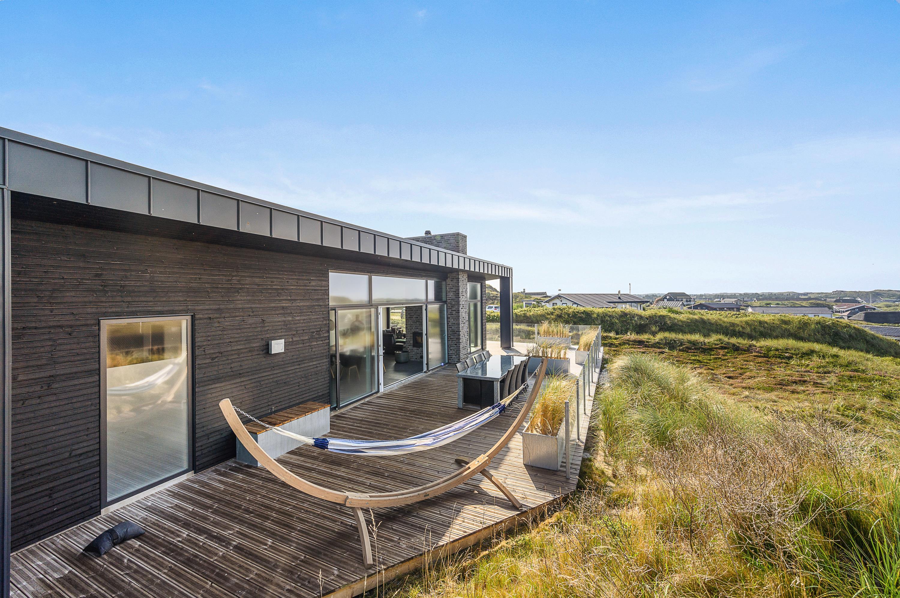 Dette fantastiske og unikke sommerhus i Søndervig sætter rammerne for en vesterhavsferie ud over det sædvanlige. Den moderne indretning i lækre kvalitetsmaterialer byder på alt, hvad feriehjertet begærer – blandt andet vildmarksbad, sauna og billardbord. Den unikke beliggenhed på en klittop med unik udsigt til Vesterhavet og klitlandskabet fuldender den enestående ferieoplevelse.