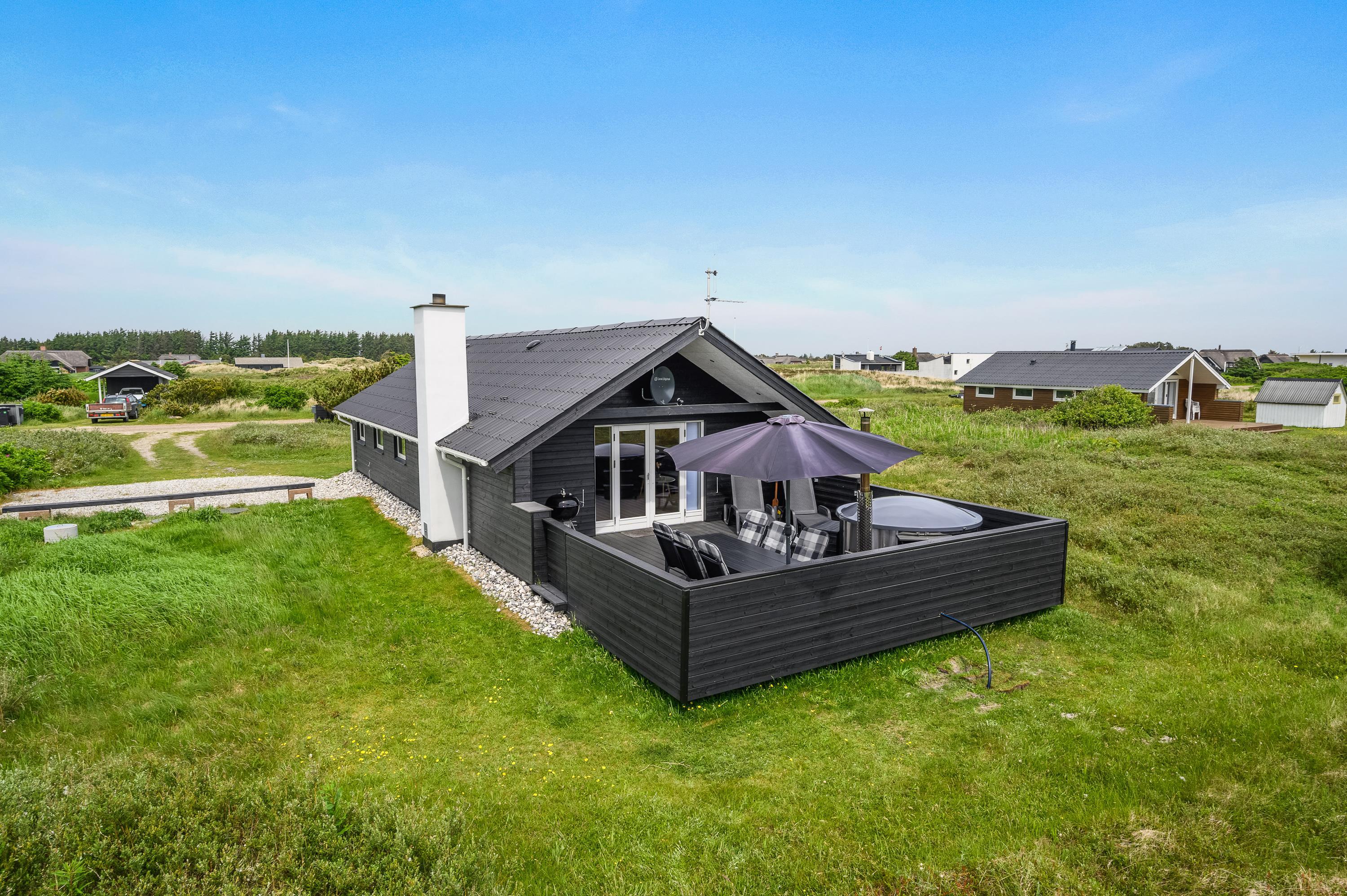 På en naturskøn plet kun 600 meter fra Søndervigs smukke sandstrand finder I dette flotte sommerhus. Her kan I holde ferie med op til 6 personer. Sommerhuset fremstår velholdt og indbydende efter renoveringen i 2021, og på terrassen gemmer sig et ekstra feriehighlight – nemlig et lækkert vildmarksbad!
