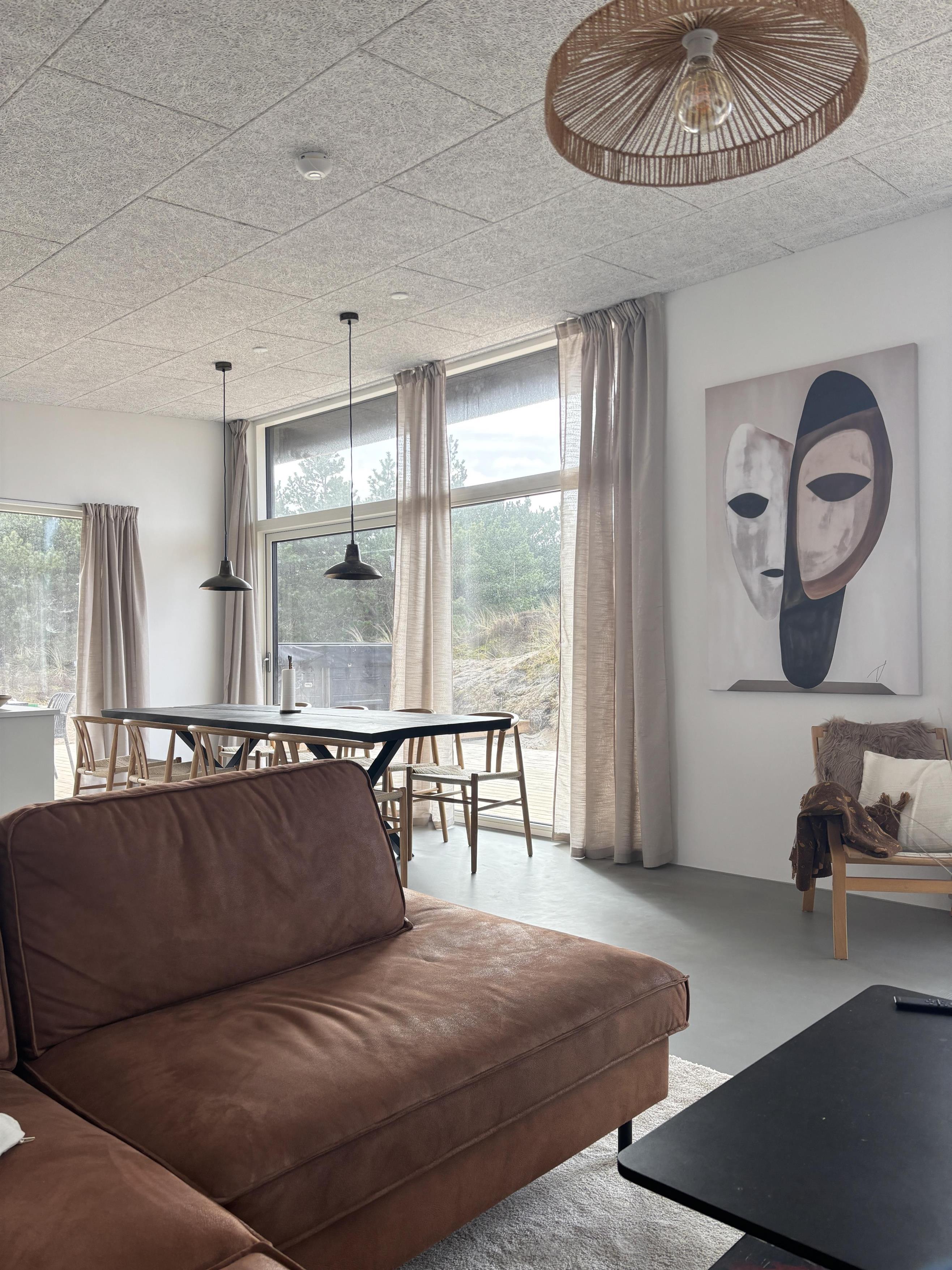 Sommerhuset strækker sig over 125 kvadratmeter og ligger godt placeret på en 2603 kvadratmeter stor natur- og klitgrund, hvor der er god plads til afslapning, leg og nydelse. Sommerhusets hjerte er det åbne køkken-alrum, der byder jer varmt velkommen med masser af dagslys og en lækker indretning. Her kan I planlægge dagen, tilbringe lange aftener eller bare slappe af sammen – uden at nogen bliver afskåret fra fællesskabet.