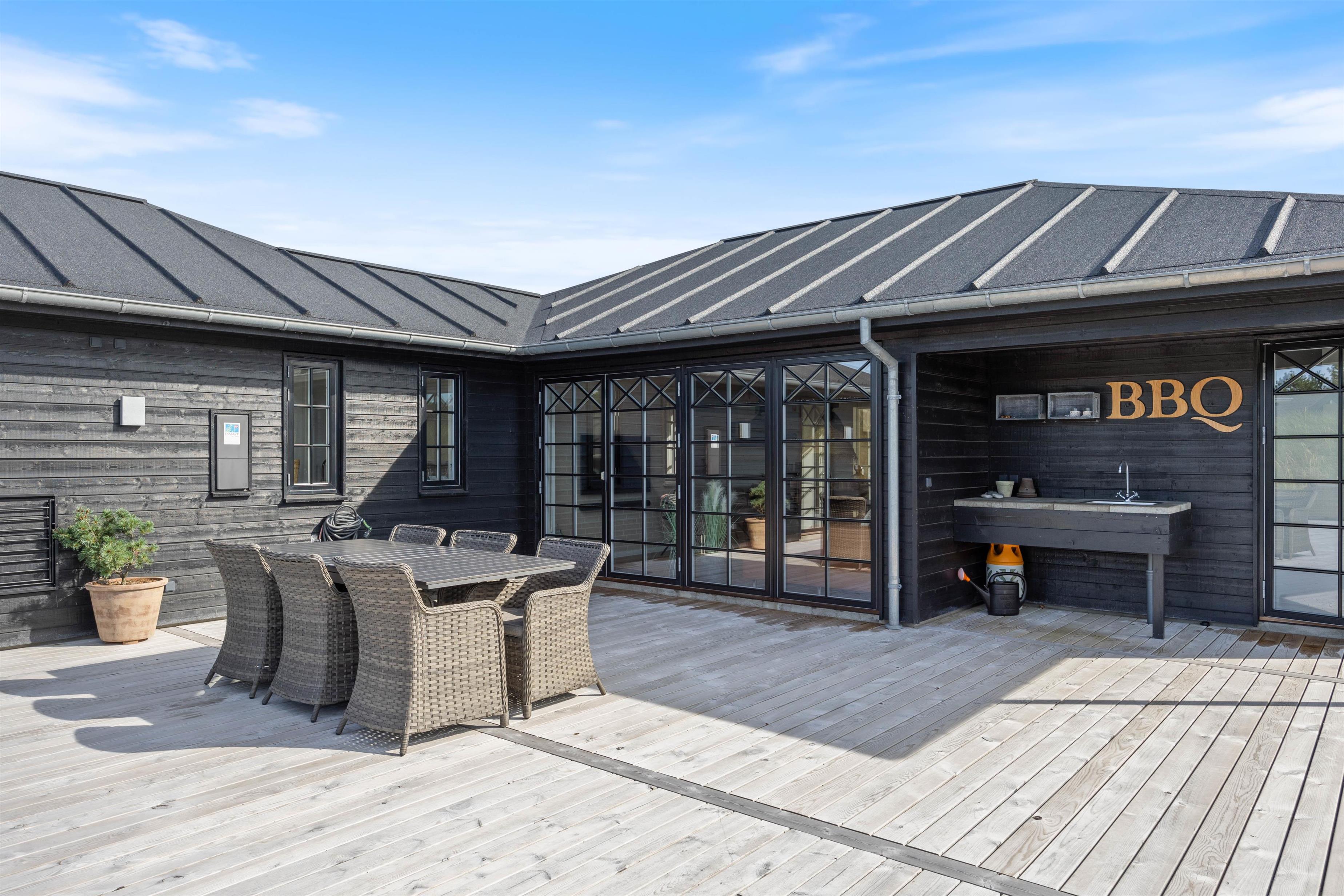 På terrassen står også havemøbler og liggestole klar til jer, så I kan sætte jer godt til rette på en lækkert spot i solen. Med både udekøkken og gasgrill har I også mulighed for at lave gode måltider på terrassen, som I kan nyde med kolde drikkevarer til.