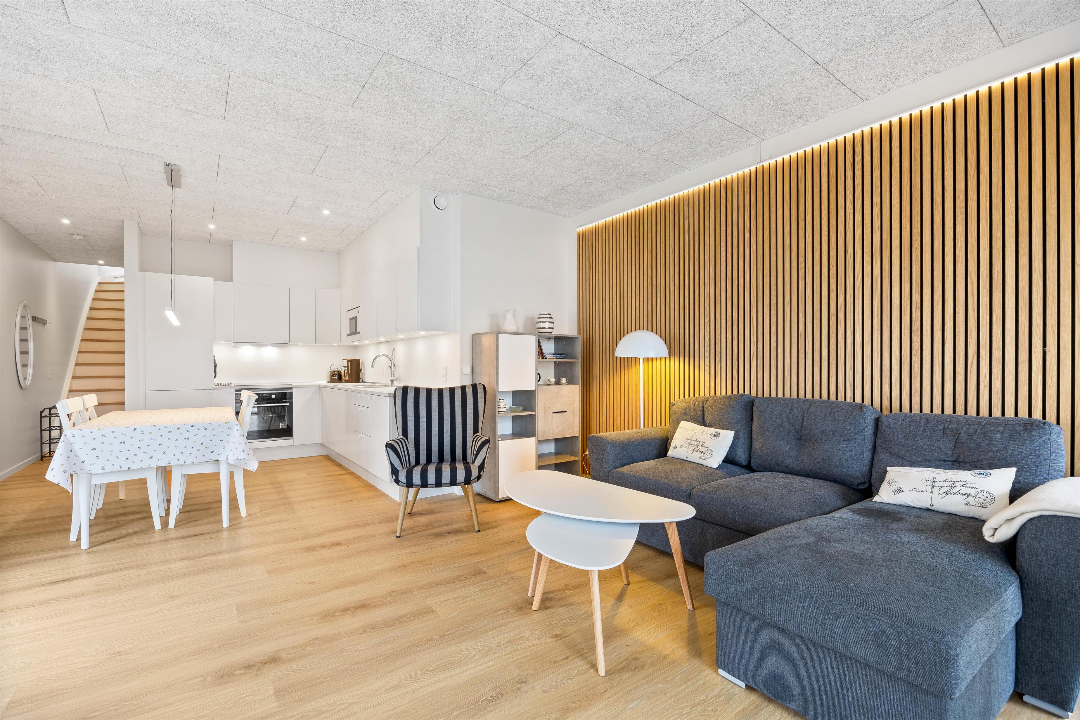 Når I træder ind i denne flotte ferielejlighed, der er opført i 2024, begynder jeres feriefølelse at blomstre. Ferielejligheden rummer en smagfuld indretning i to etager og har alt, hvad I har brug for til en afslappende ferie.