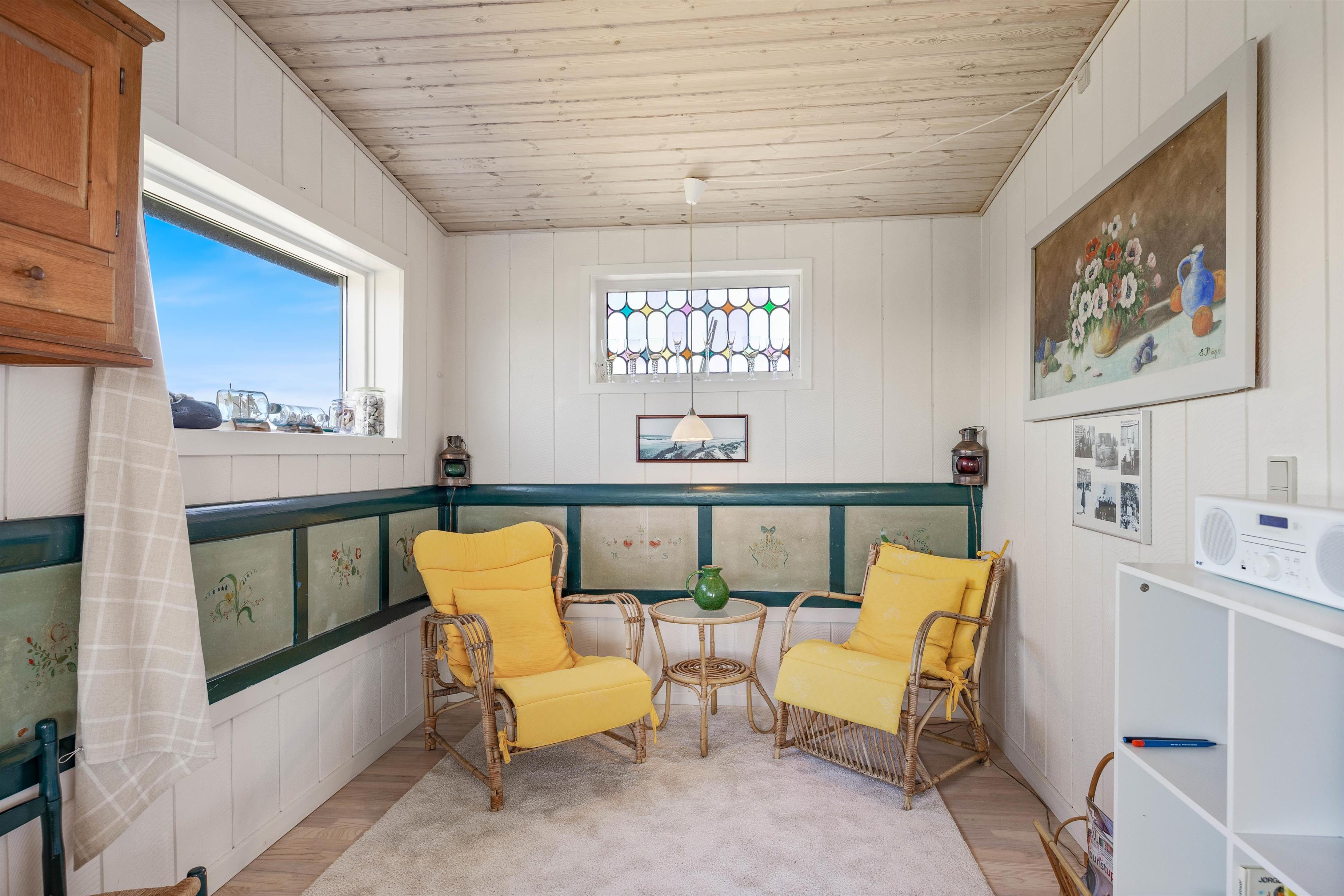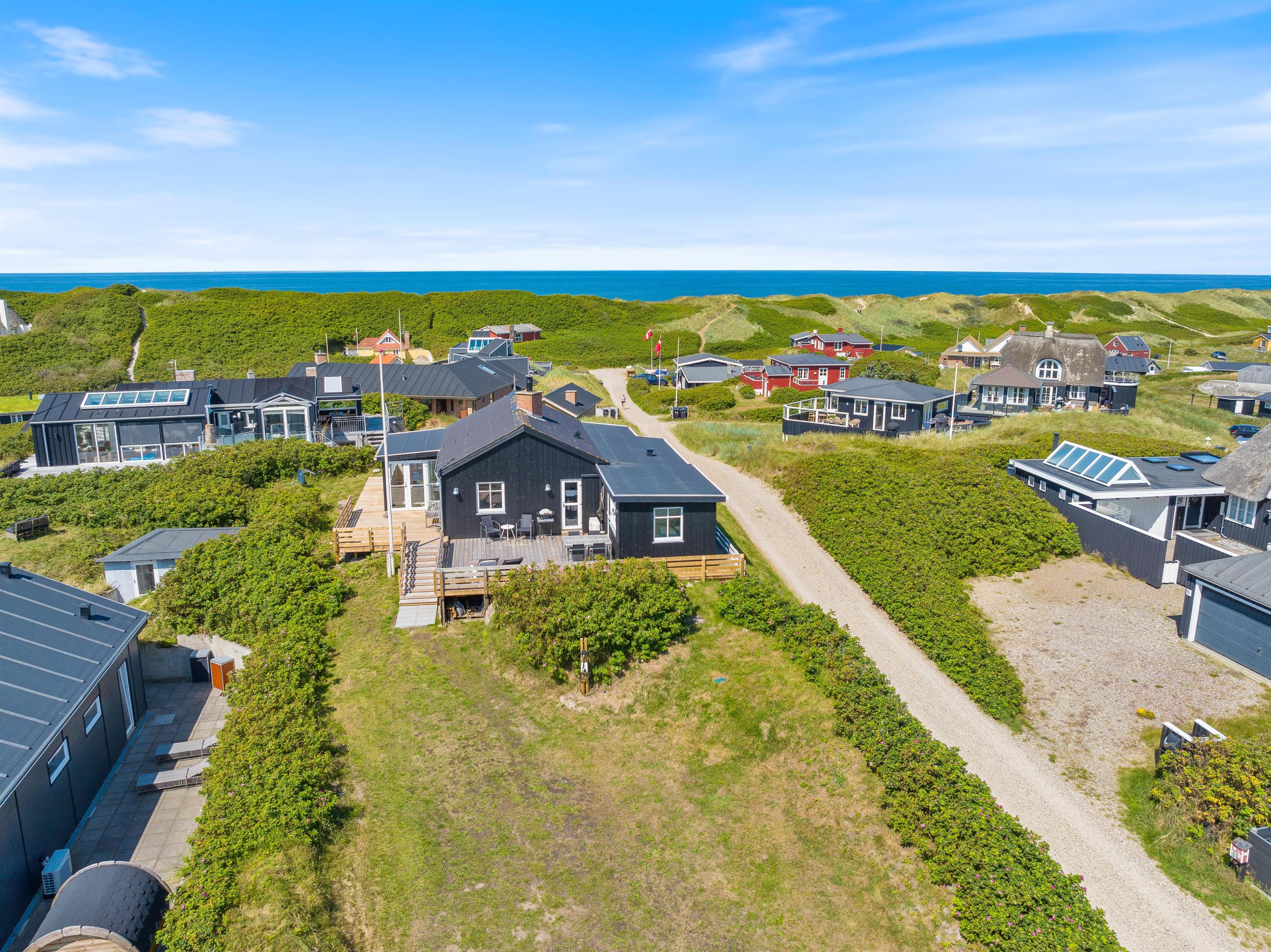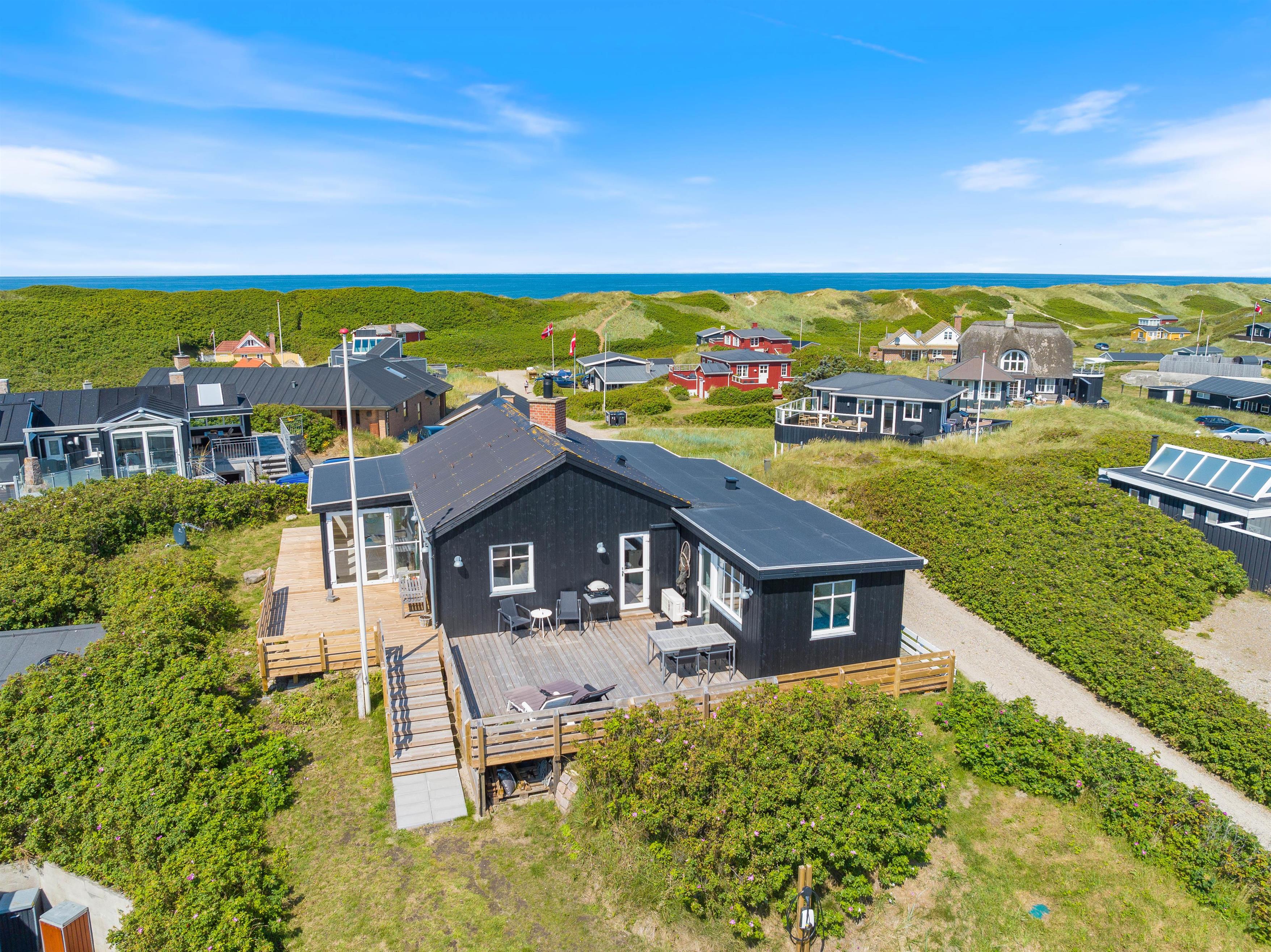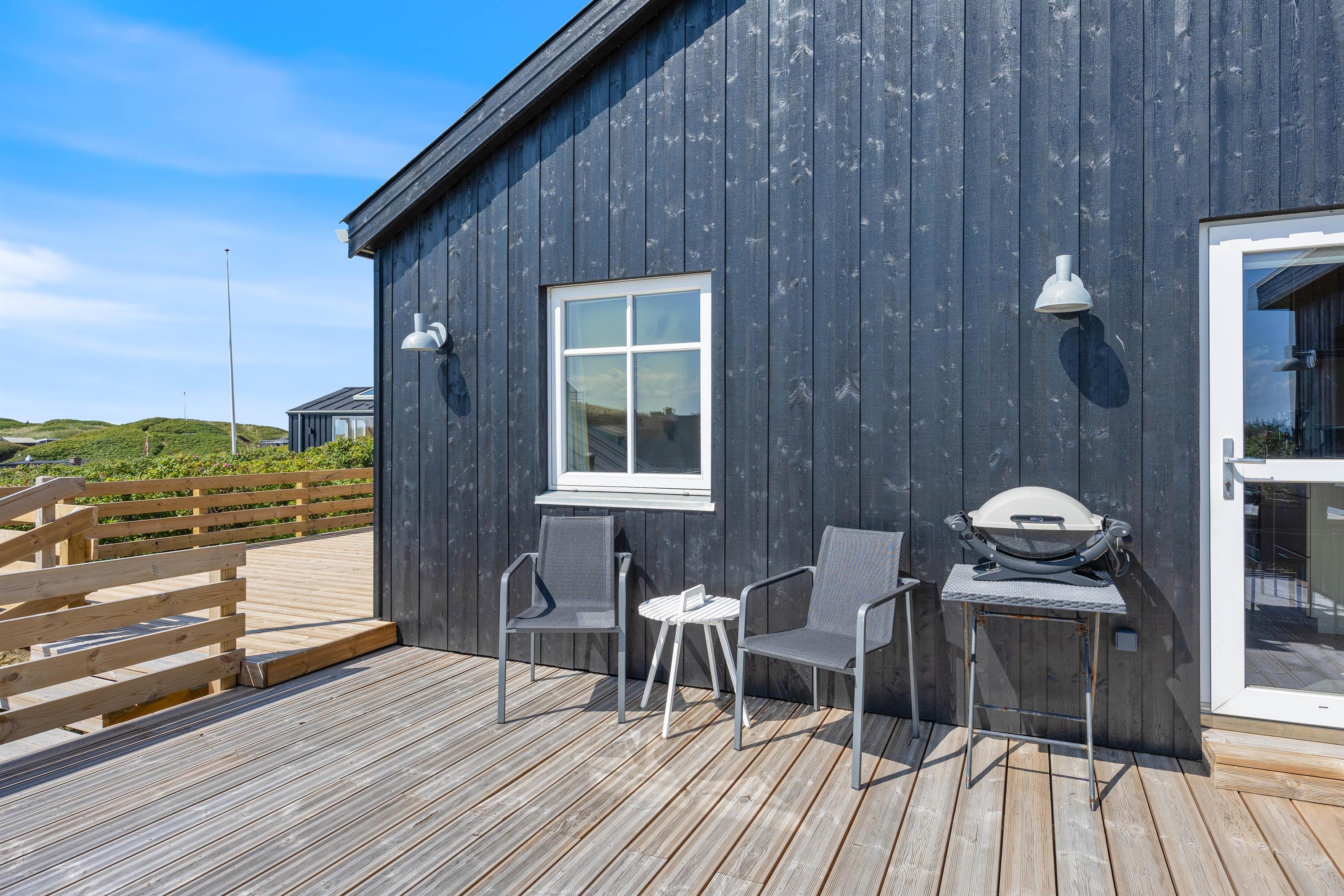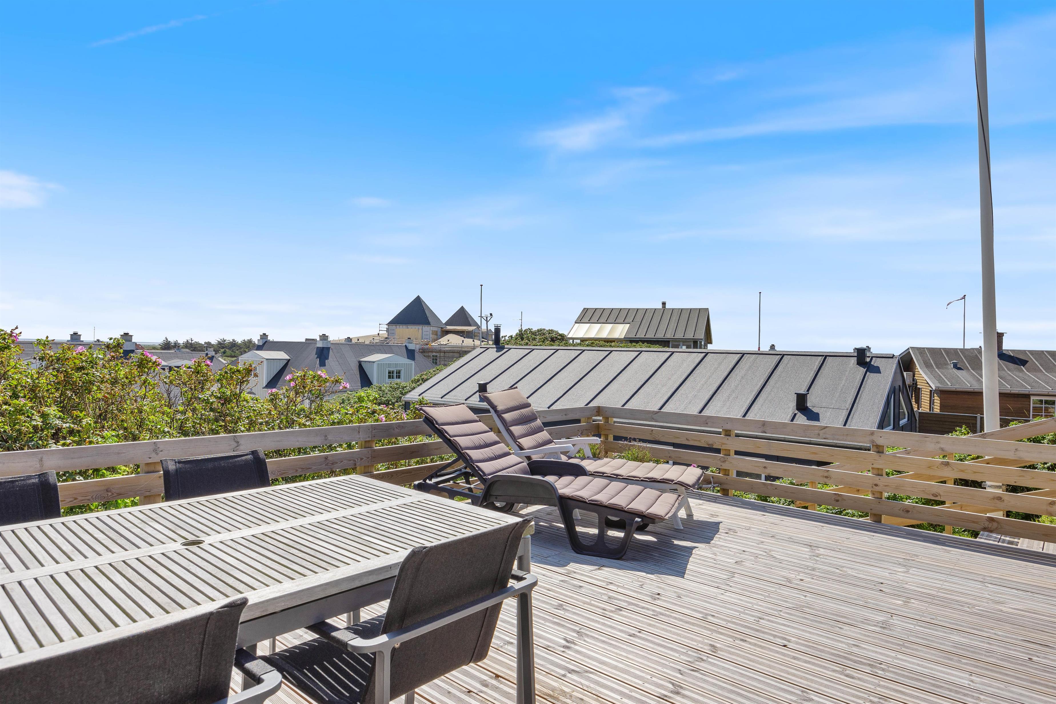 Rundt om huset går en stor, dejlig træterrasse med et hav af små hyggekroge og mere end nok siddepladser til alle feriegæster. Her kan I for alvor tanke ny energi og nyde den friske havluft og den fantastiske udsigt ud over Søndervig, og når vejret viser sig fra sin bedste side, kan I hive liggestolene frem og nyde solens stråler på bedste vis.