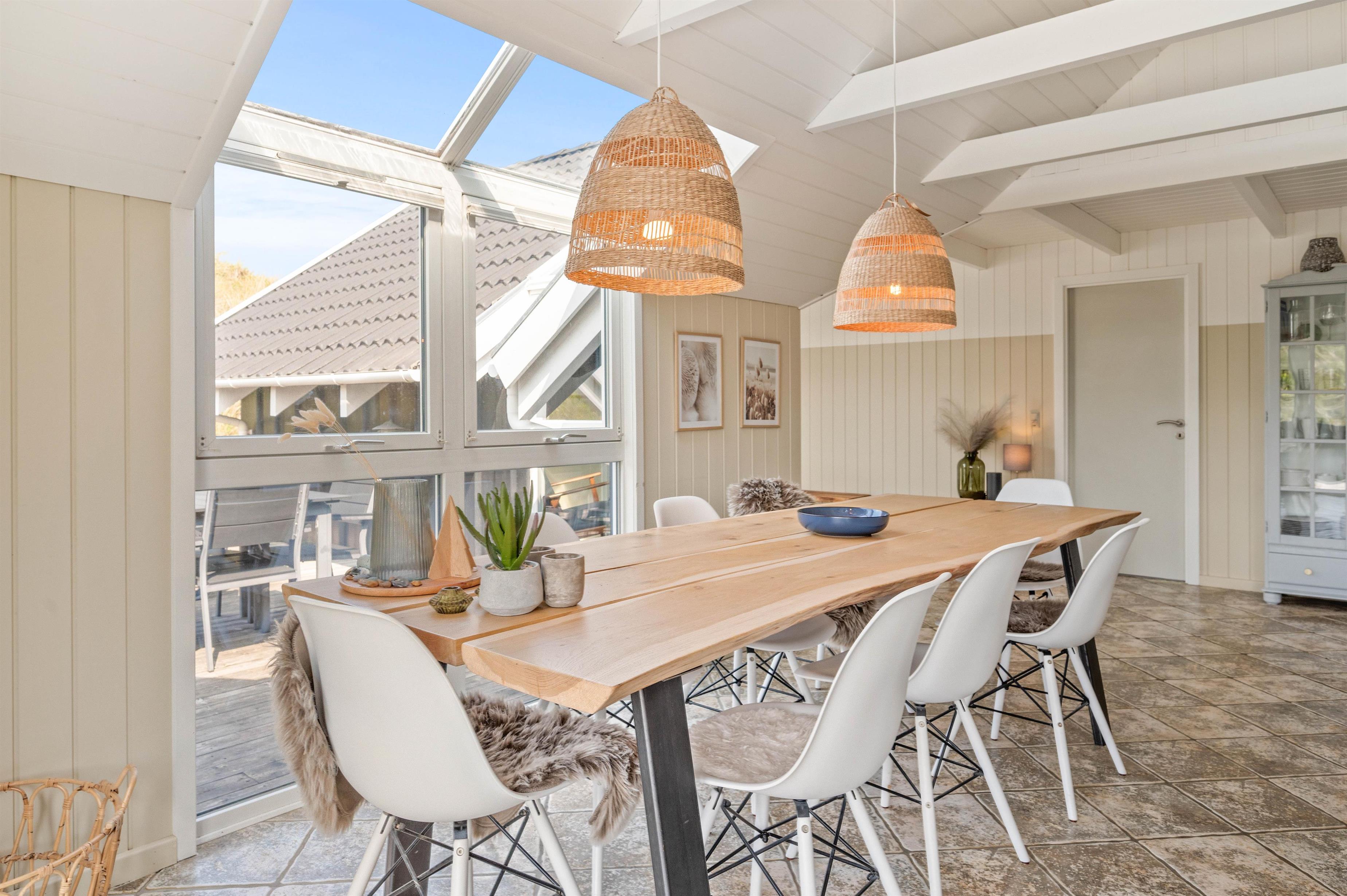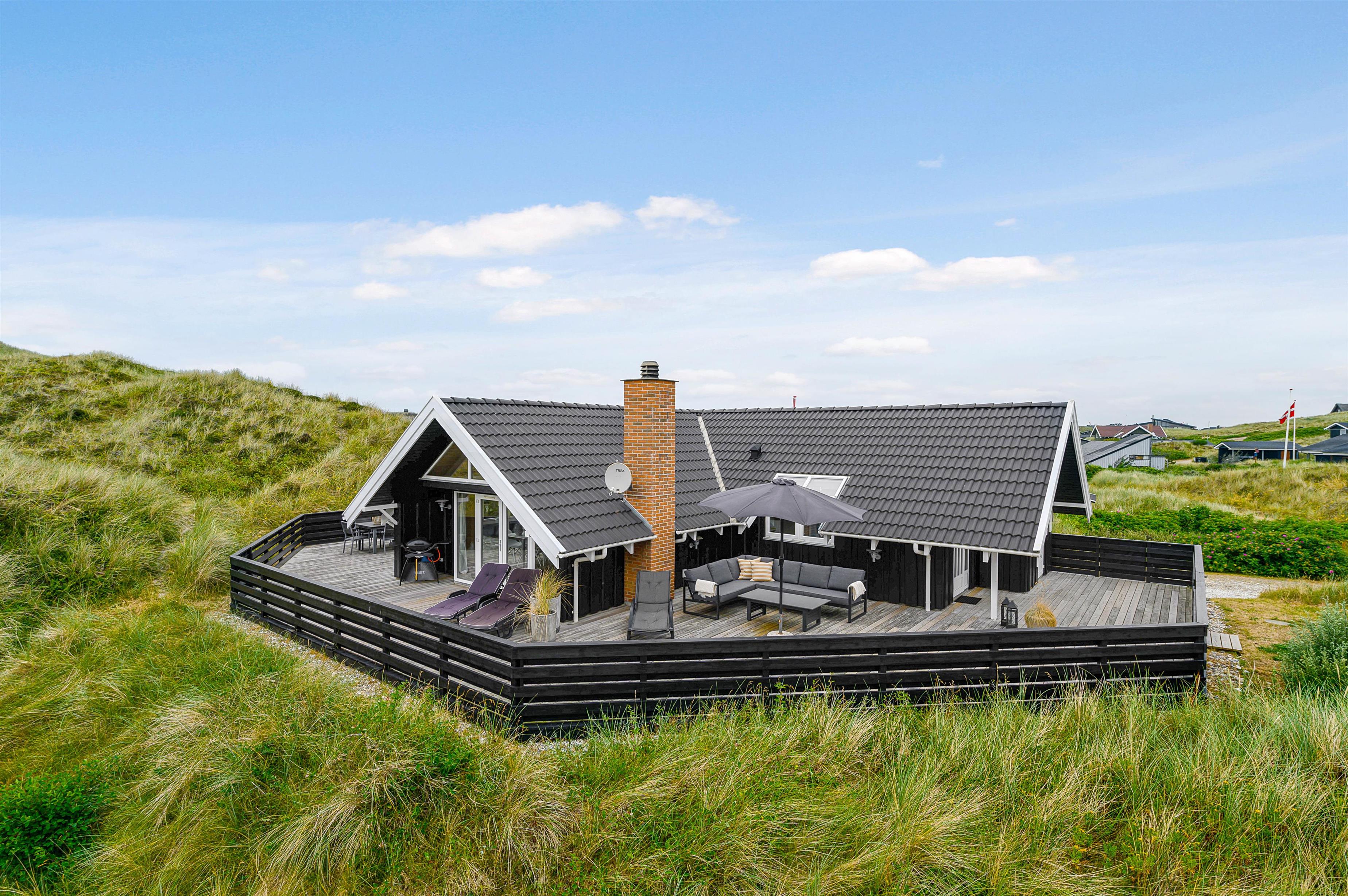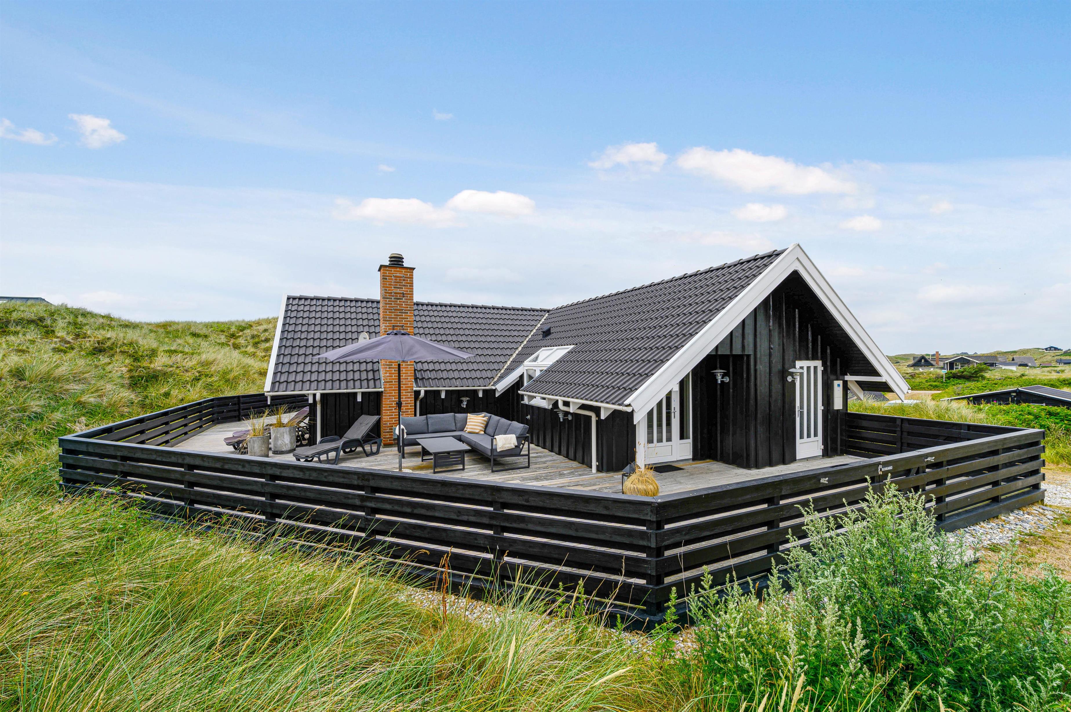 Terrassen er intet mindre end fantastisk. Den strækker sig omkring huset fra øst og mere end husets længde mod syd. Den er stor, helt lukker og delvist overdækker mod syd, så der er ofte mulighed for læ. Og området ved dette sommerhus er særdeles eftertragtet, dels fordi det ligger helt ud til det store fredede klitareal, som ligger helt op til Vesterhavet. Derudover er Søndervig centrum kun 1000 m væk, så skal der handles eller ønsker man at spise på en af byens restauranter, kan man klare dette uden at medbringe bil.