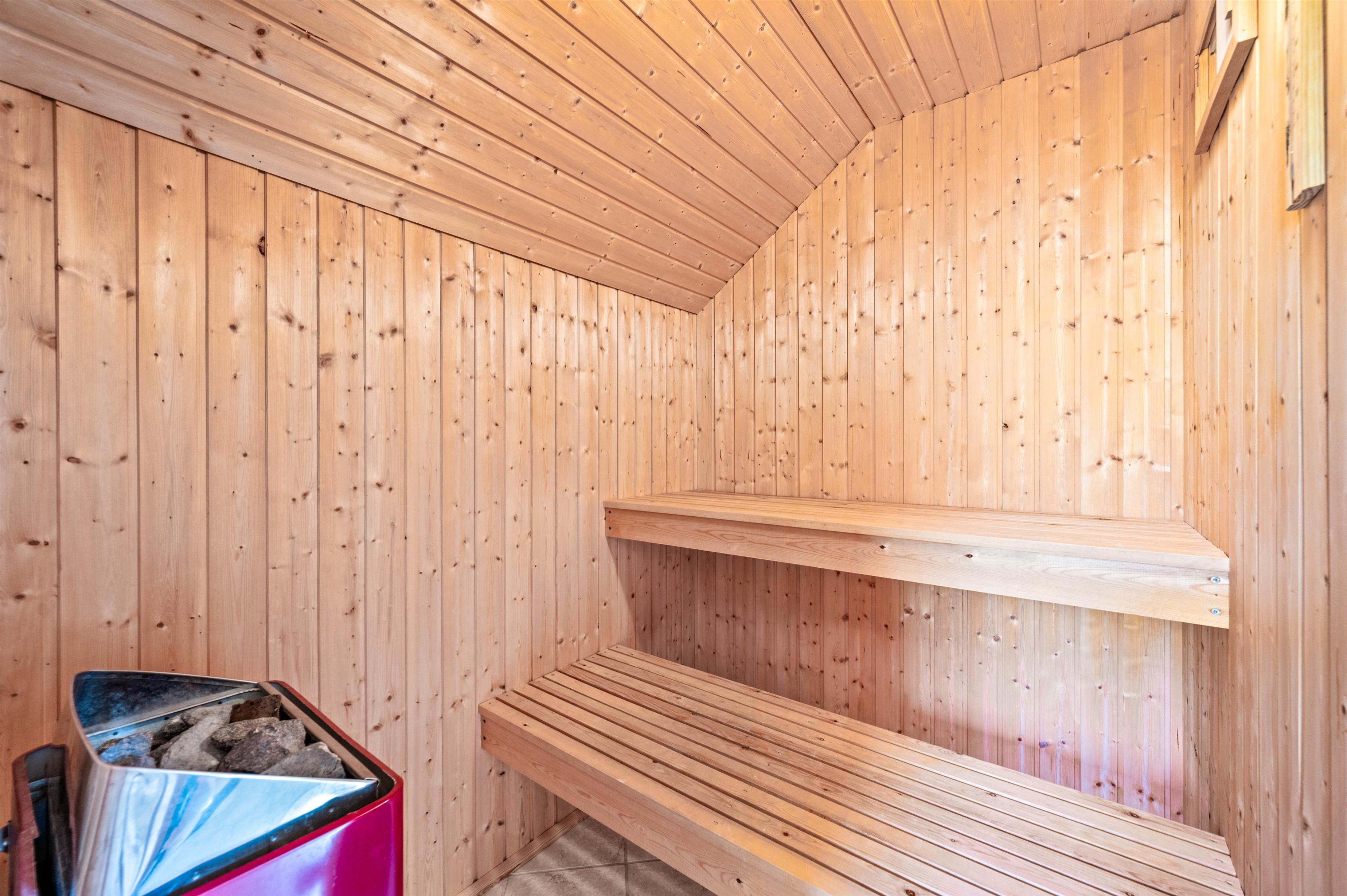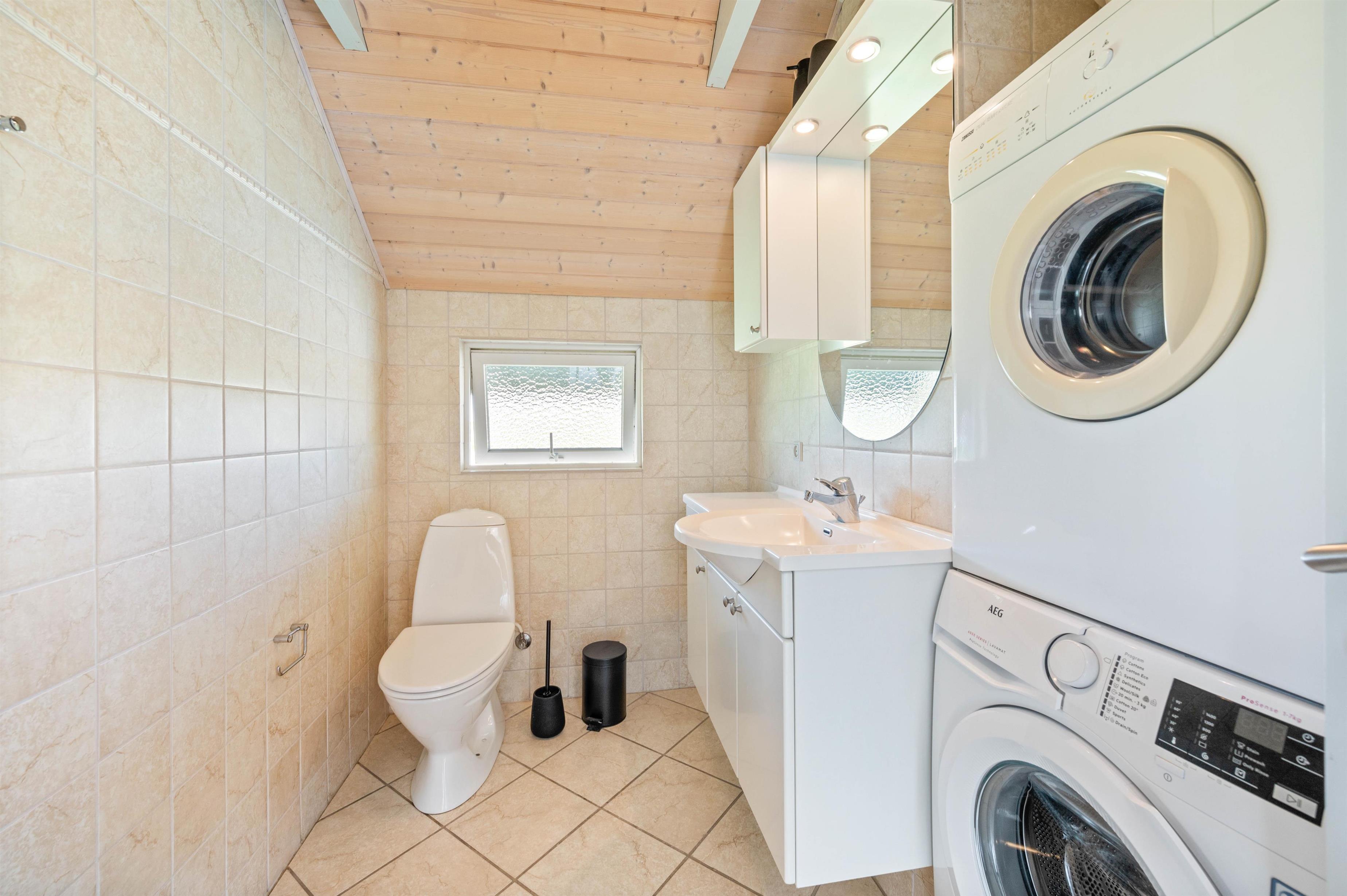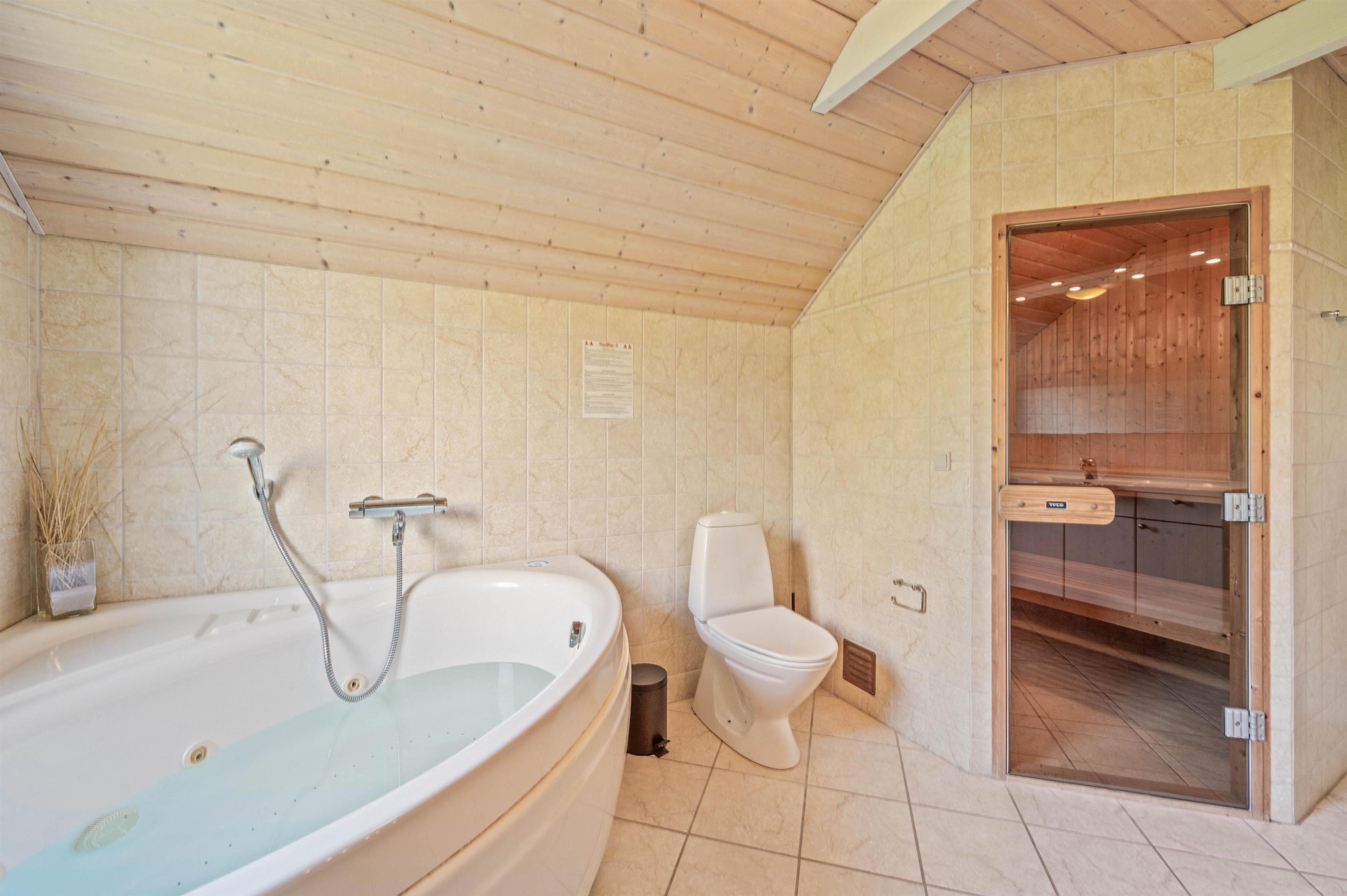 Dette sommerhus på Hvidbjergvej 113 er bygget i 2004 og har plads til otte personer fordelt på fire soveværelser. To af værelserne har begge en dobbeltseng, de sidste to værelser har begge to enkeltsenge, og på alle værelser er der trægulve. Huset har to badeværelser med fliser, bruseniche og med gulvvarme. På det store badeværelse er der en sauna og en to personers hjørnespa. På det mindre badeværelse er der også en vaskemaskine og en tørretumbler.