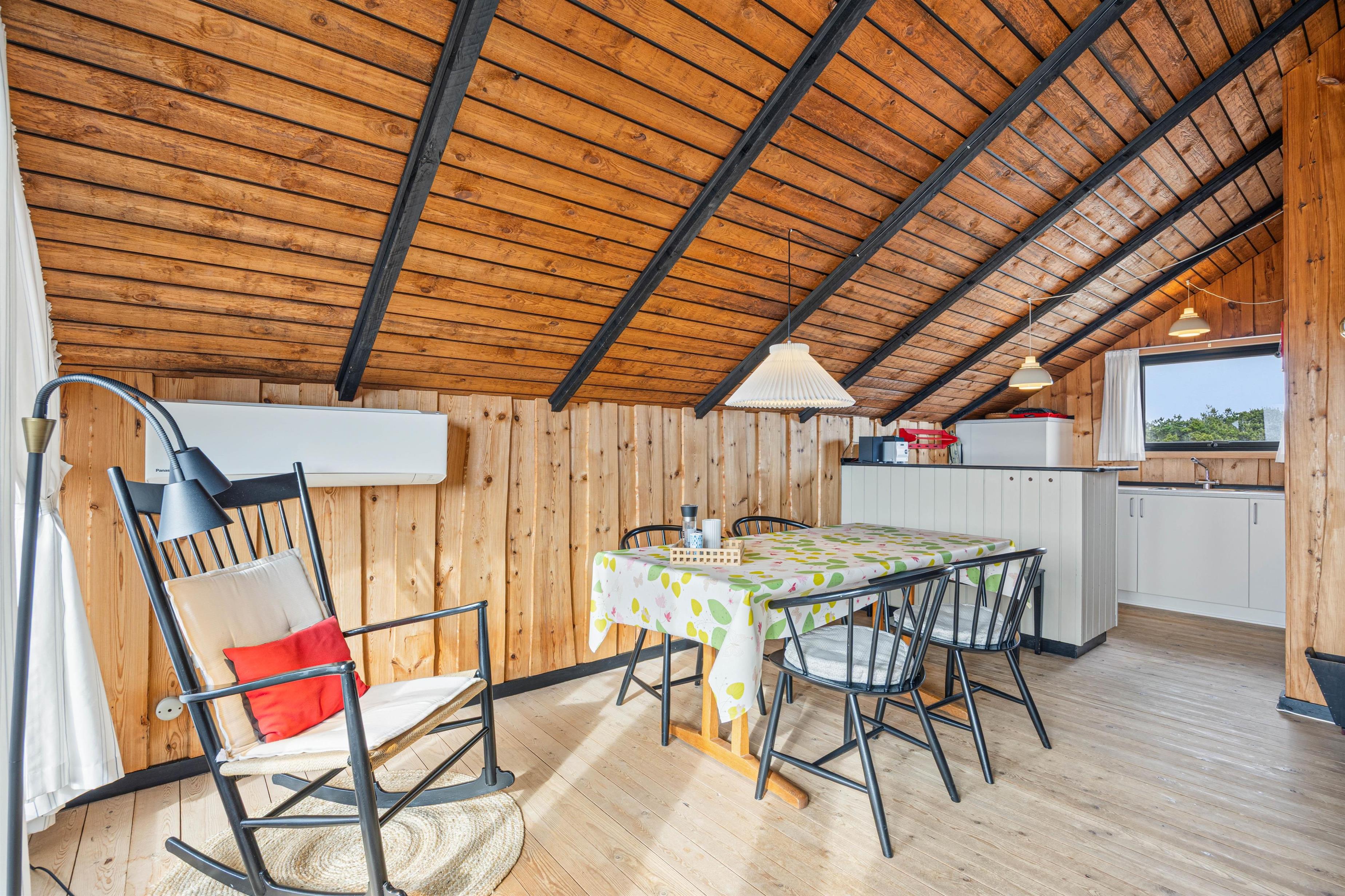 Det åbne køkkenalrum med udsigt ud over hedearealet udenfor er uden tvivl husets hjerte, men herudover råder huset over 2 gode værelser med henholdsvis dobbeltseng og køjeseng samt et mindre badeværelse med bruseniche og gulvvarme.