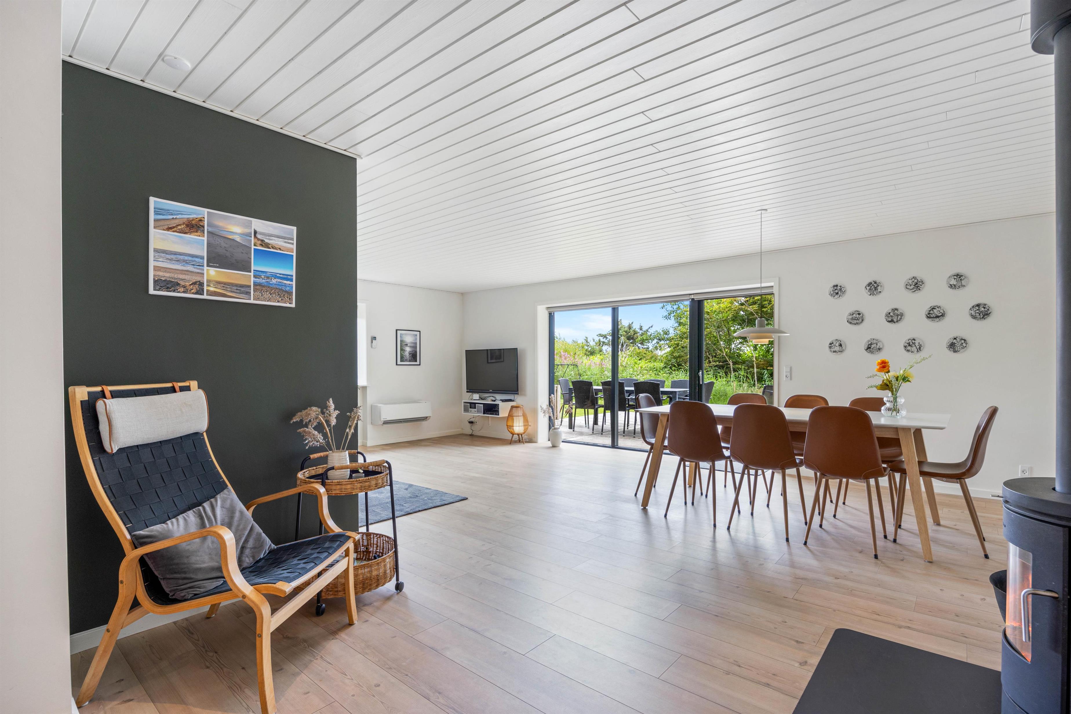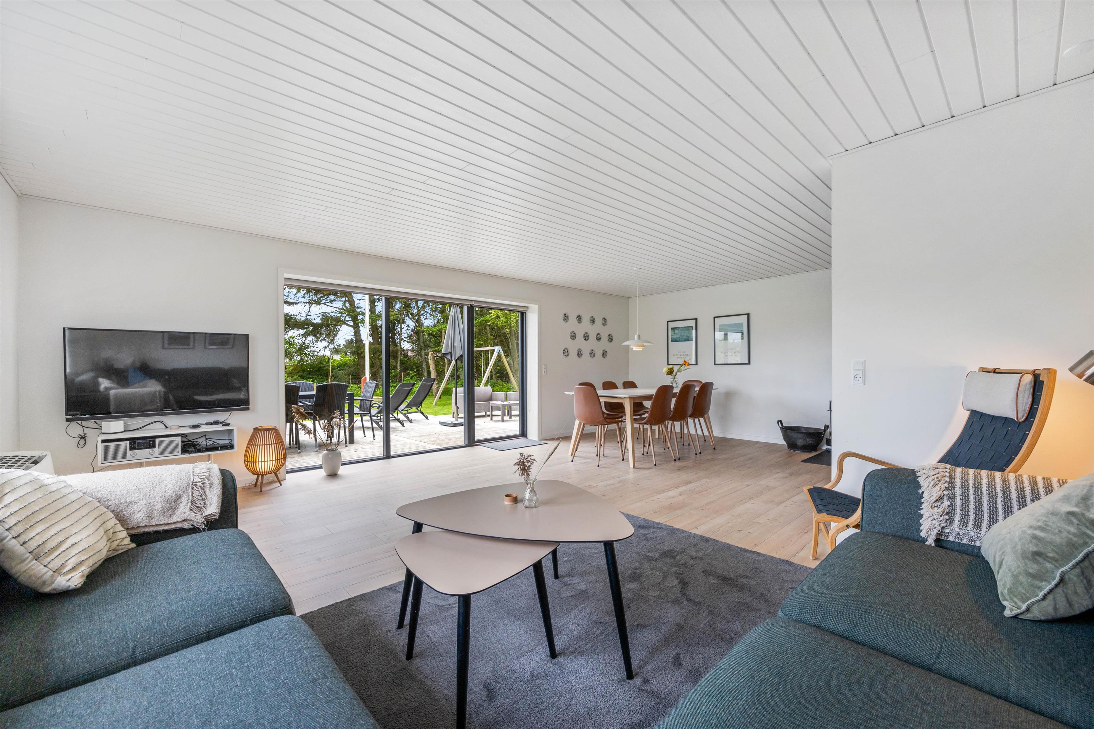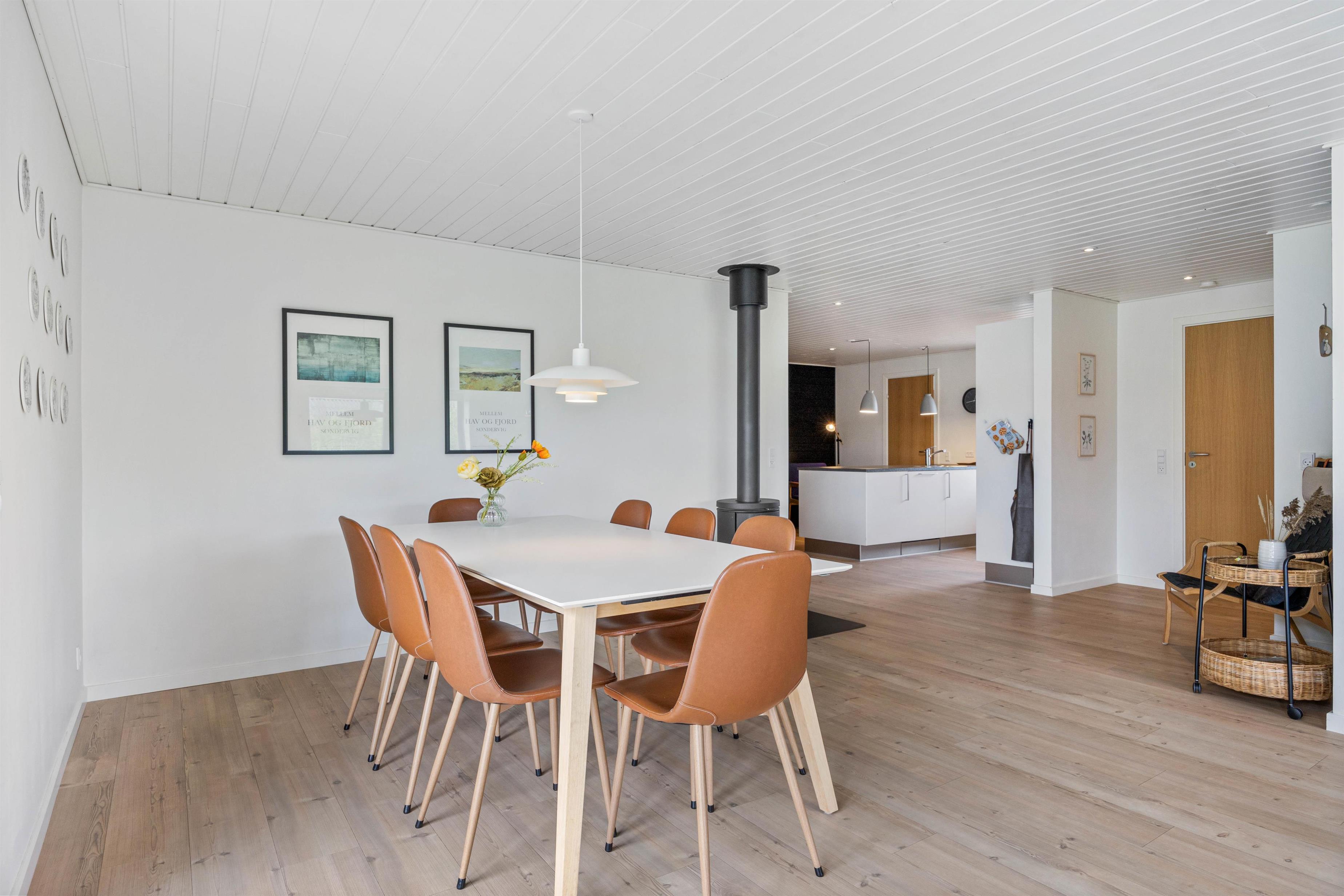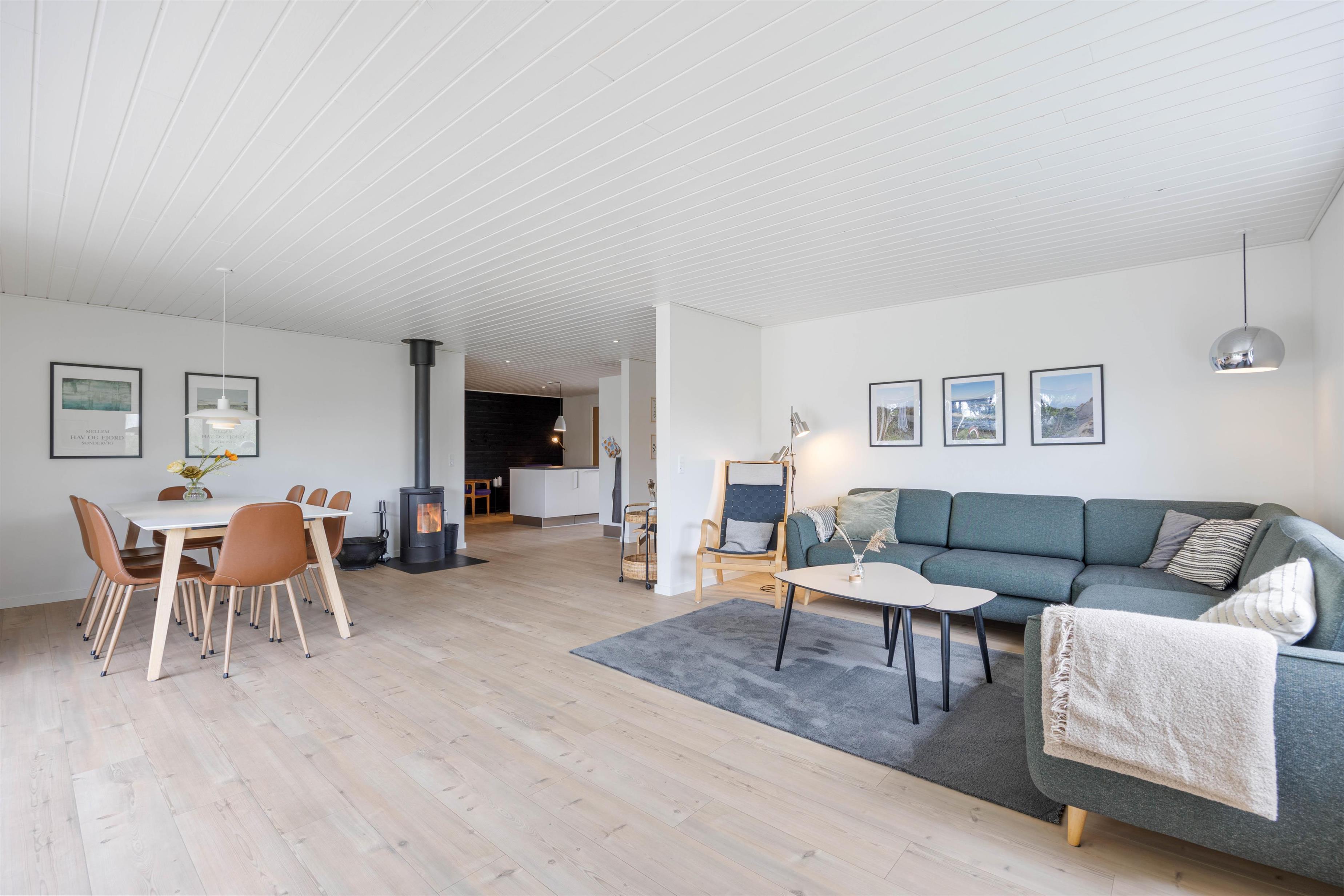 Hele opholdsrummet er stort, og med sommerhusets indretning gør det muligt at kombinere underholdning og afslapning. De aktive familiemedlemmer kan mødes til en spændende turnering ved billardbordet, mens dem, der foretrækker rendyrket afslapning, kan læne sig tilbage på sofaen med en god bog, mens ilden fra brændeovnen knitrer i baggrunden. Rundt omkring flere steder i huset er der masser af hyggekroge, hvor I kan læne jer tilbage og nyde noget afslapning.