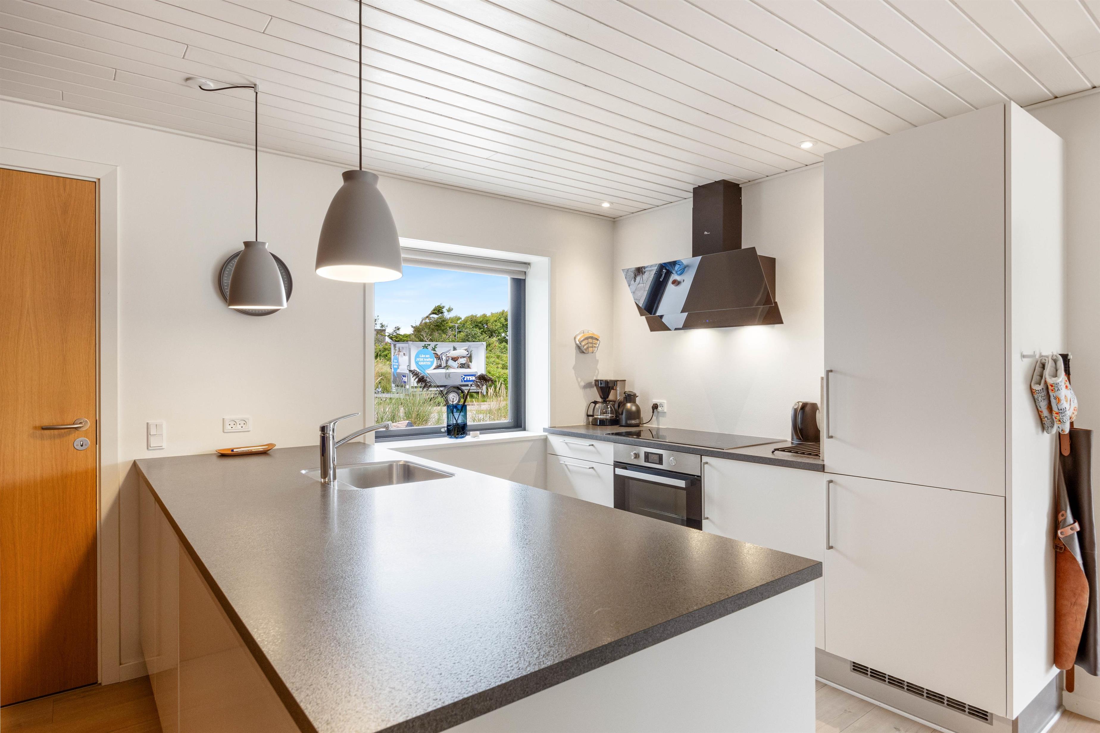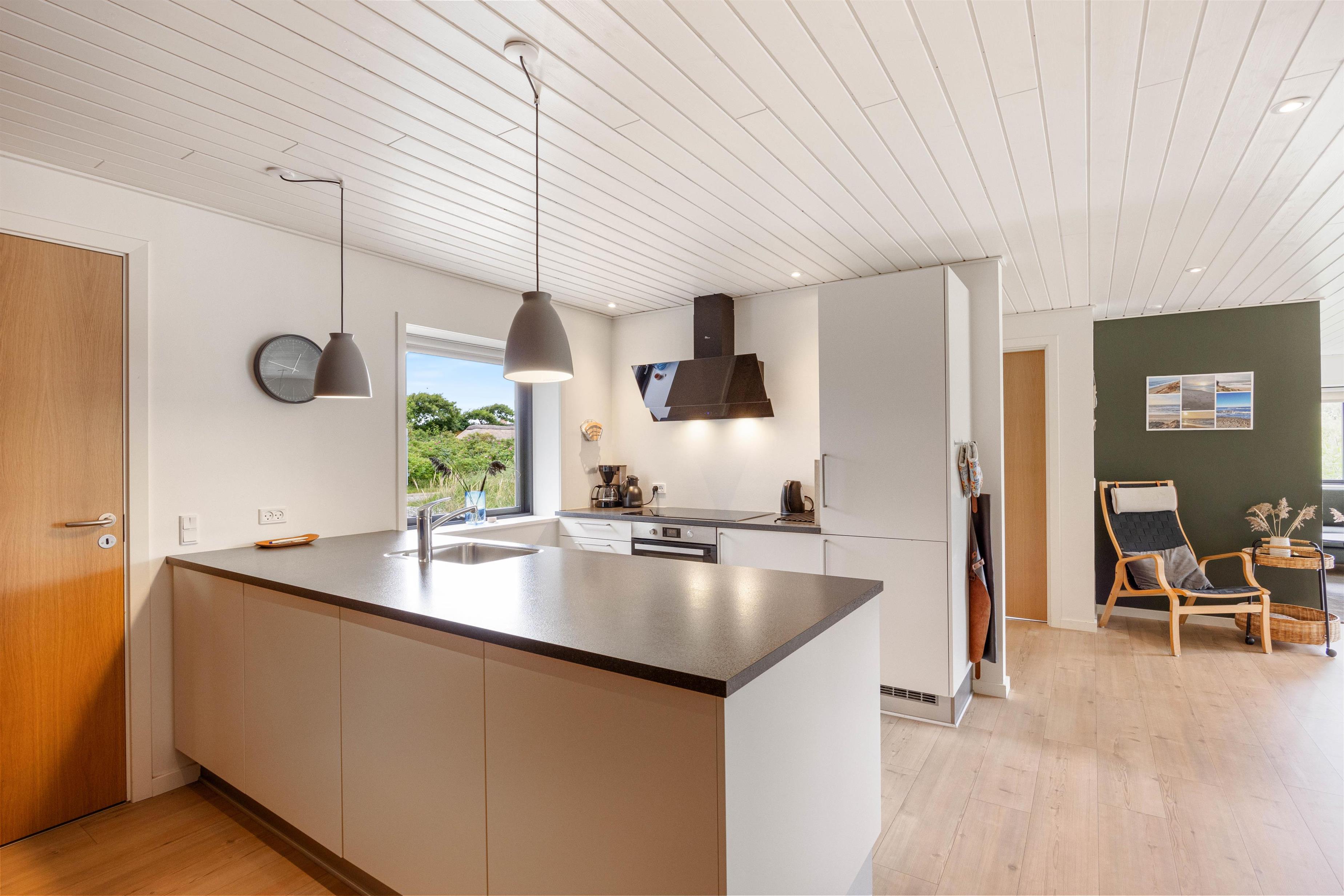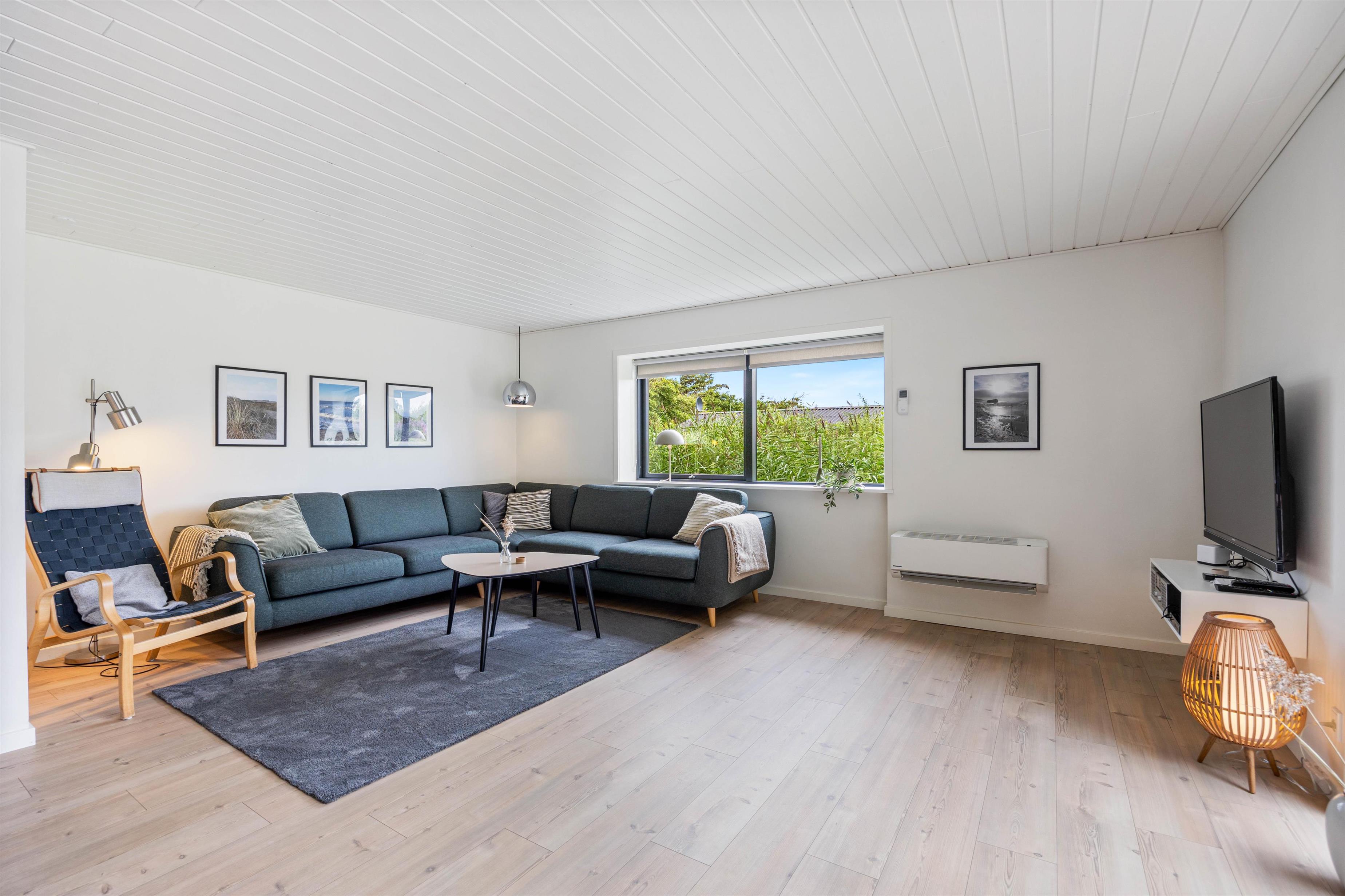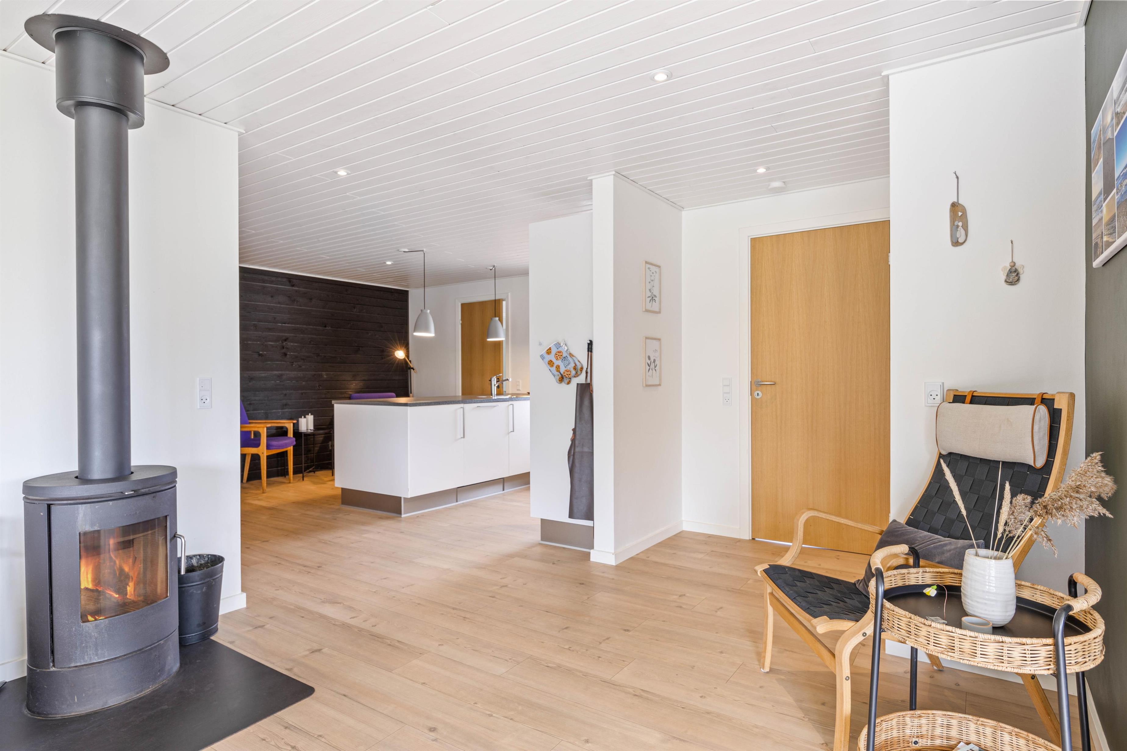 Fjernsynet er udstyret med Chromecast, så I kan streame alt det, I lyster, med hjælp fra feriehusets hurtige og stabile internetforbindelse. En energivenlig varmepumpe sikrer jer et godt rumklima hele året rundt, og alle hverdagens praktiske hjælpere er på plads i indretningen.