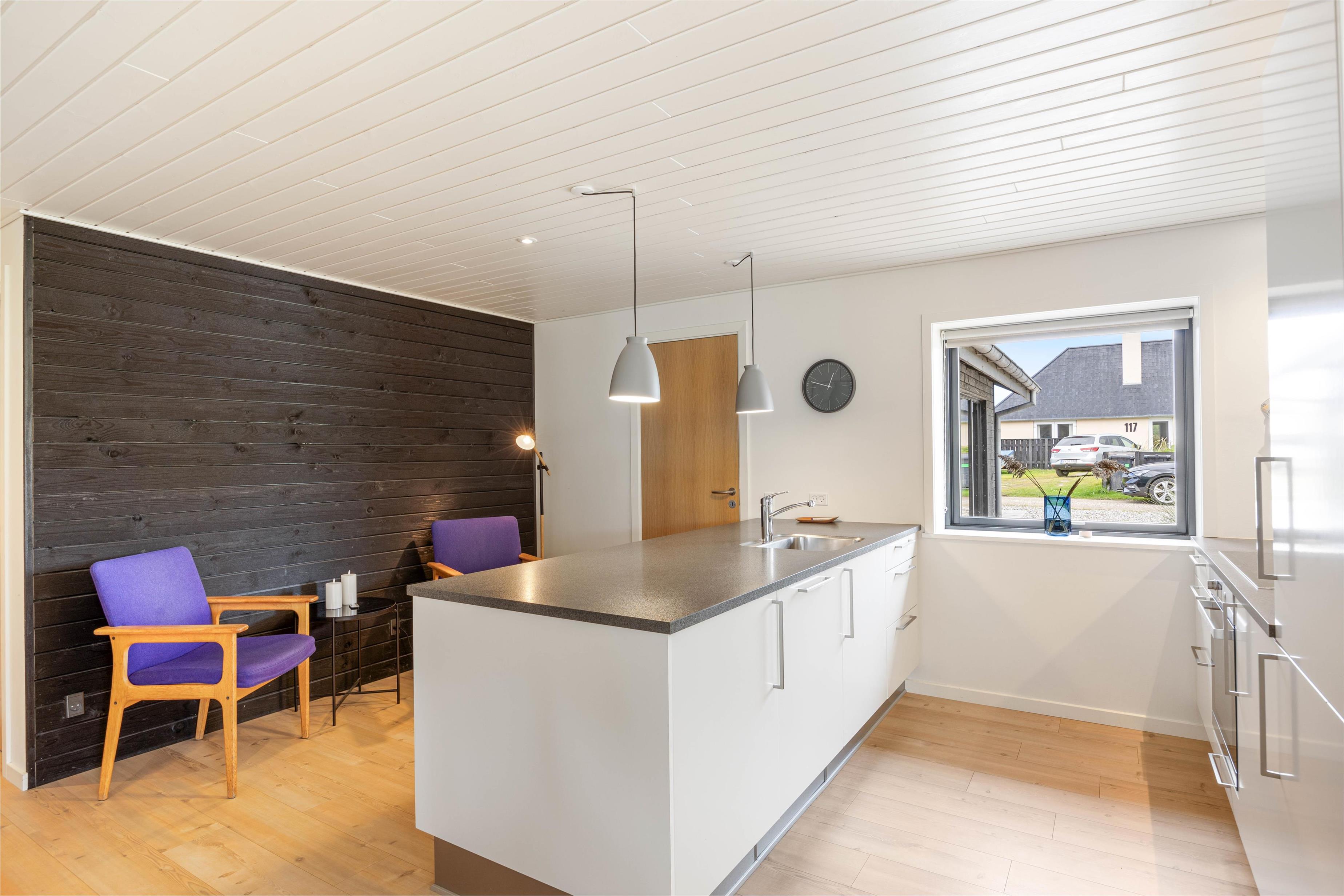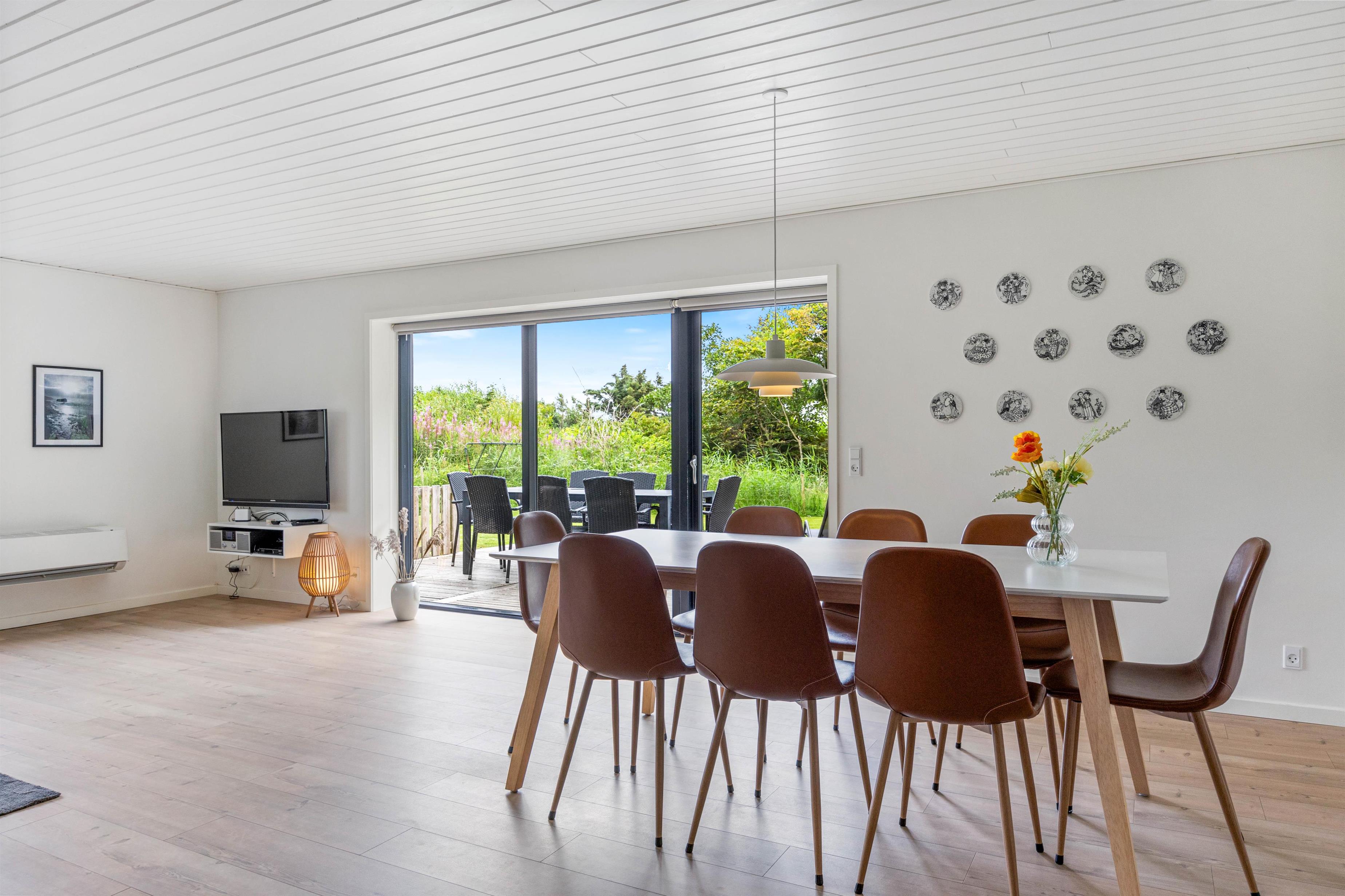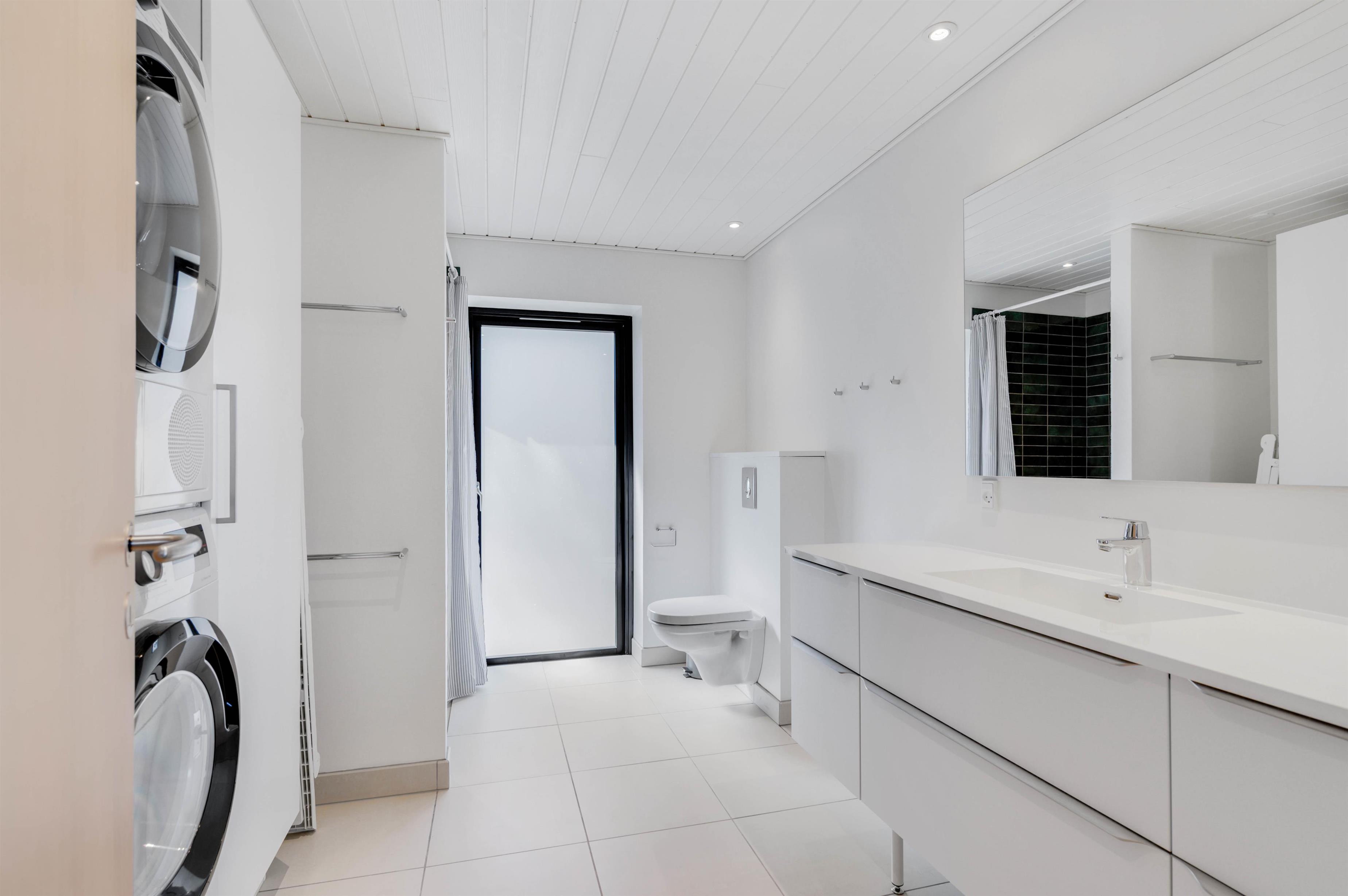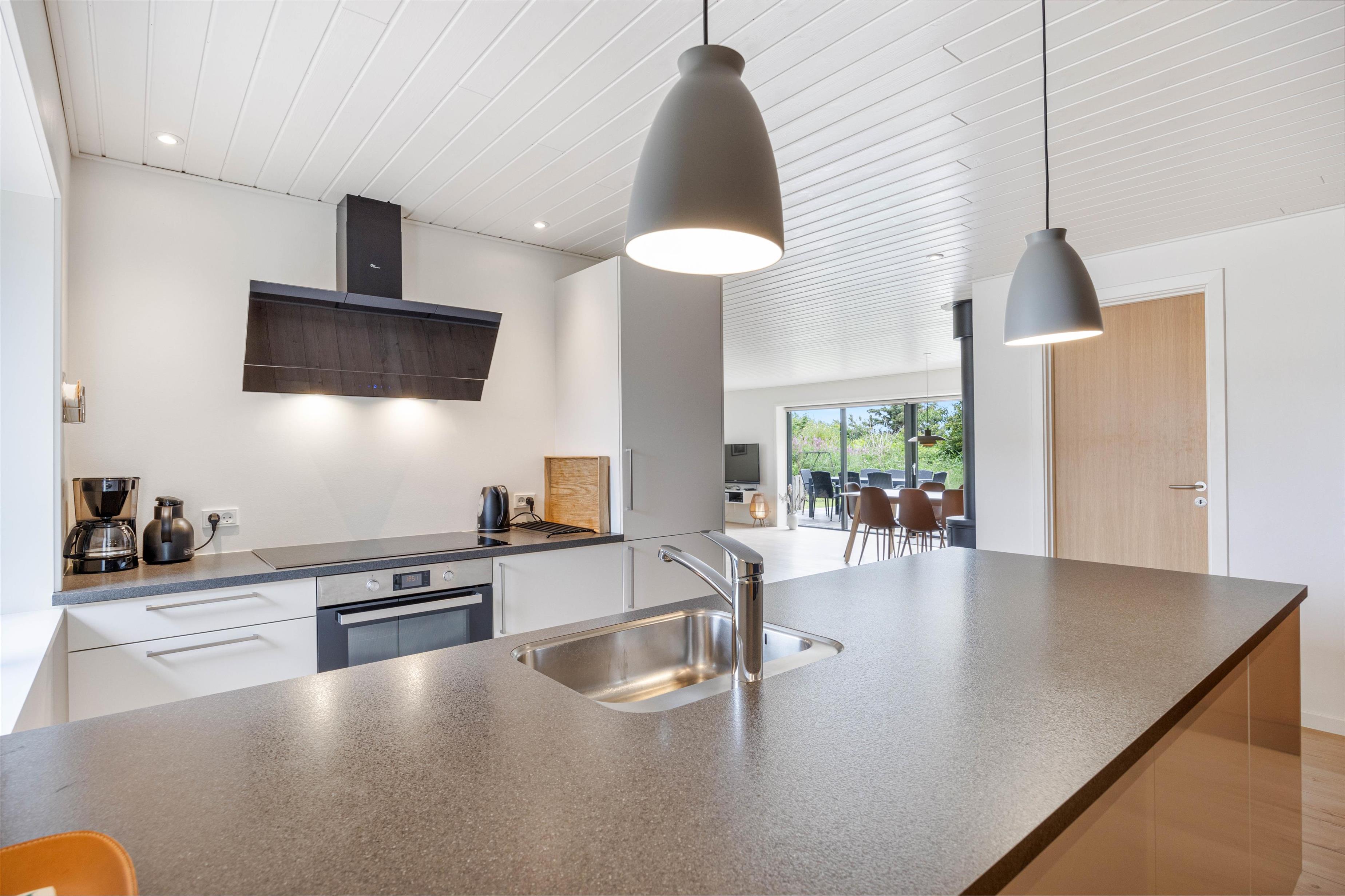 Fjernsynet er udstyret med Chromecast, så I kan streame alt det, I lyster, med hjælp fra feriehusets hurtige og stabile internetforbindelse. En energivenlig varmepumpe sikrer jer et godt rumklima hele året rundt, og alle hverdagens praktiske hjælpere er på plads i indretningen.