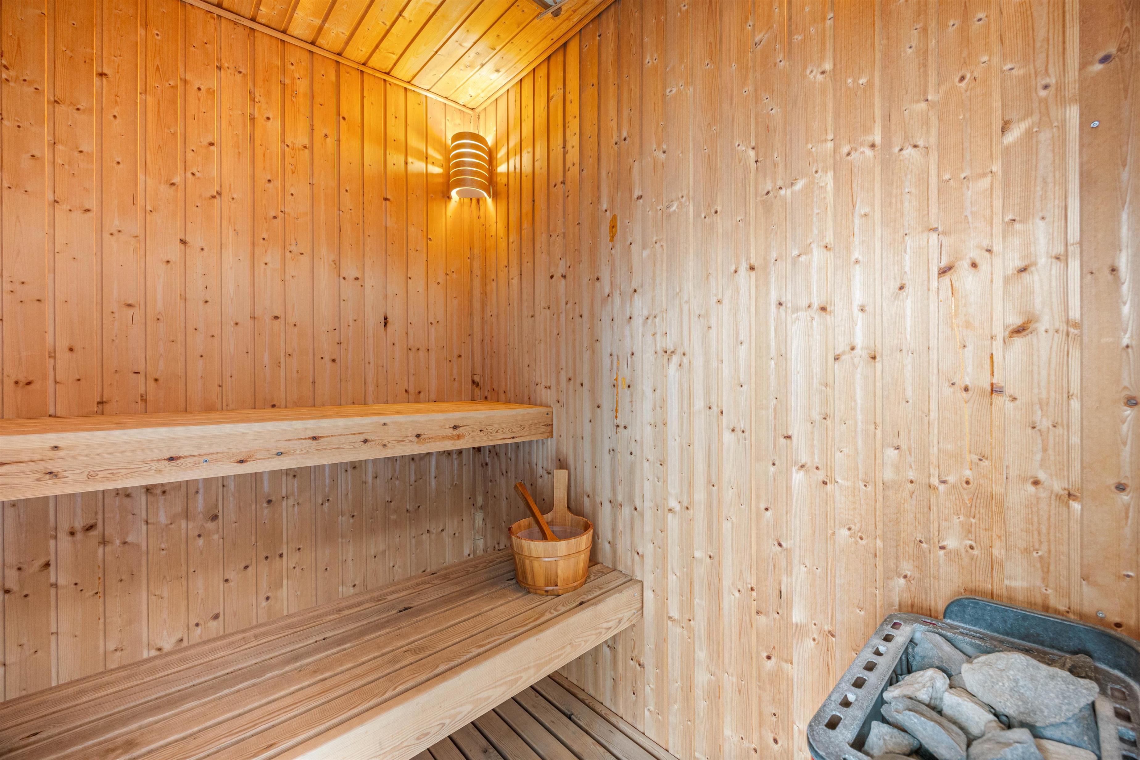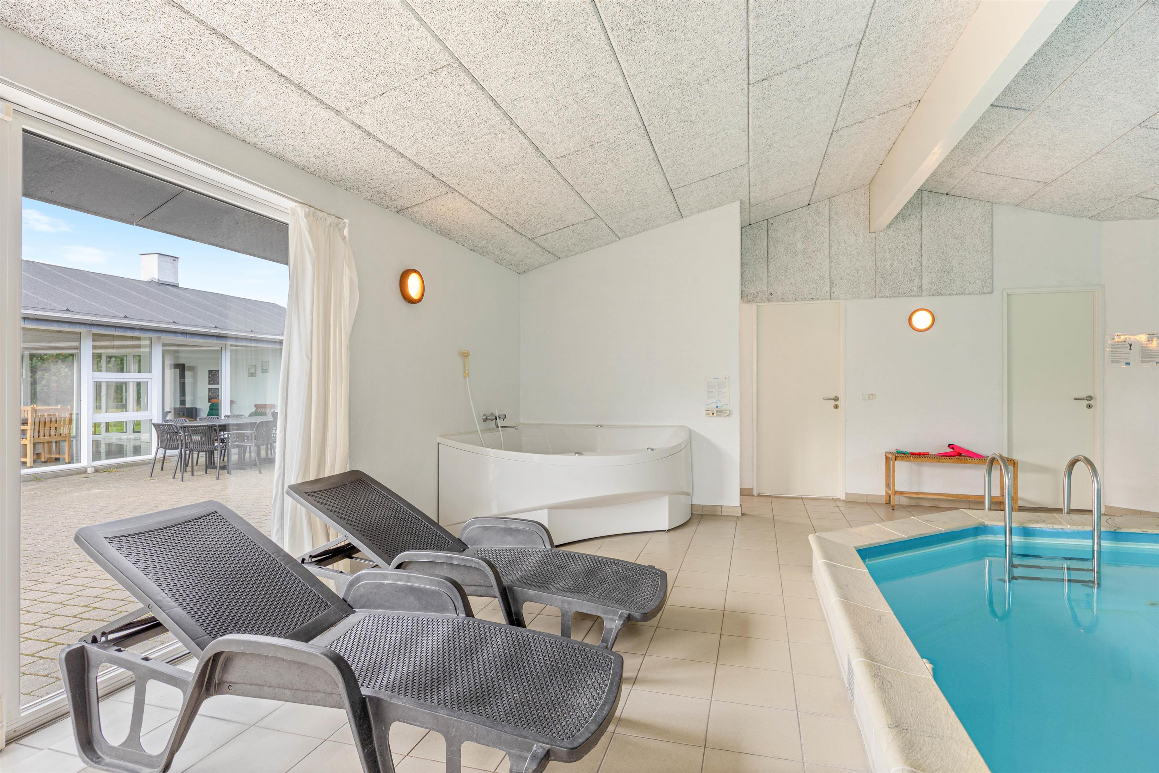 Dette dejlige sommerhus har en skøn separat tilbygning med en 24 m² stor pool og et skønt wellnesshjørne med både spabad og sauna. Her kan børn og voksne boltre sig fra morgen til aften uden at det forstyrrer hele huset. Der er tilmed også et lille møblement i hjørnet, der tillader at voksne kan sidde her og holde øje med de mindste, mens de nyder den dejlige pool og alt det sjov som den med giver.