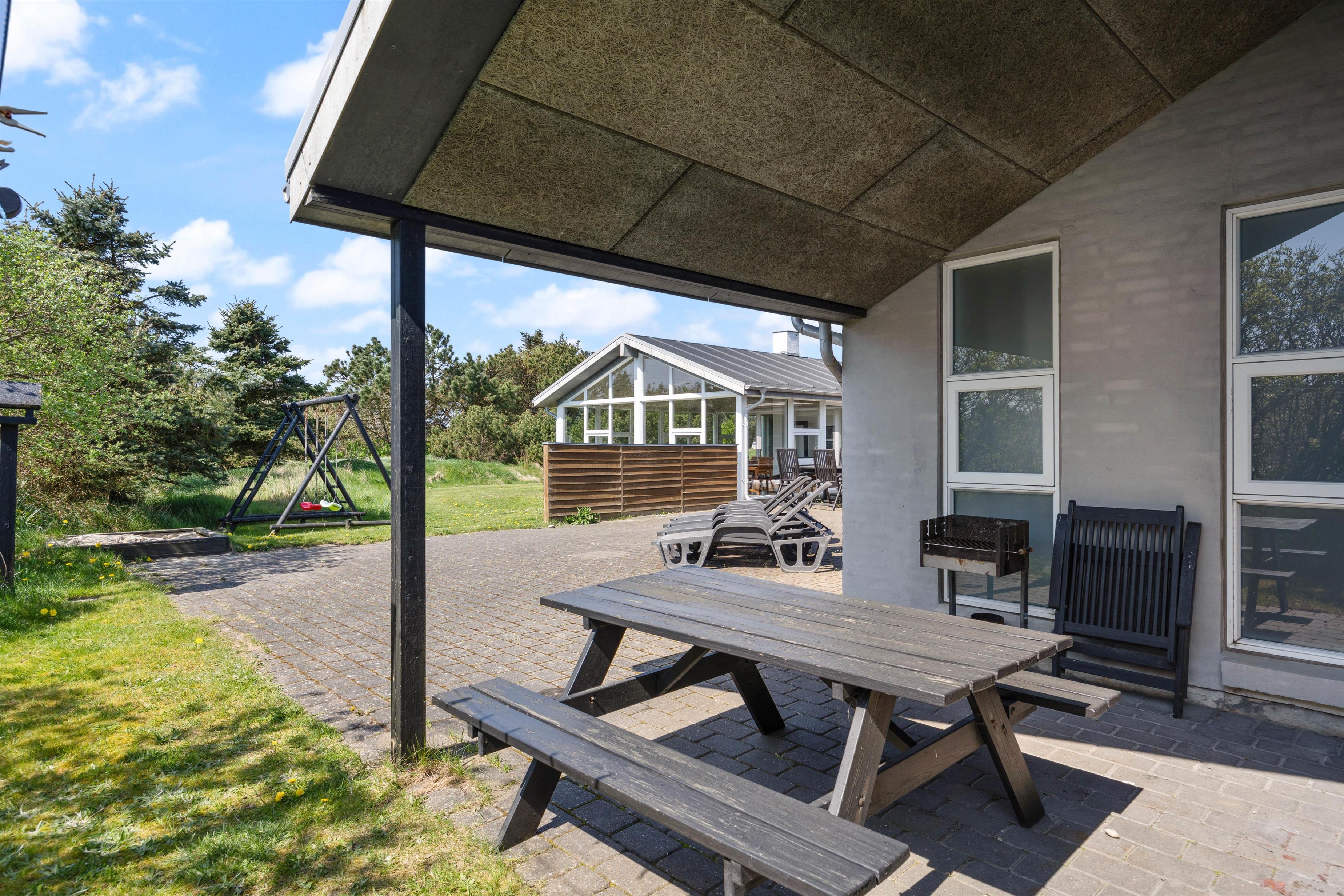 Her på Jakob Bondes Vej 69 finder I også nogle hyggelige udearealer, der indbyder til udendørs hygge. Sommerhusets skønne terrasse ligger mellem hovedhuset og tilbygningen med pool. Dette er med til at give en god afskærming for vestkystens til tider vilde vestenvind. På terrassen finder I naturligvis både havemøbler, liggestole og en grill. For de mindste gæsters fornøjelse er der opsat gynge og sandkasse.