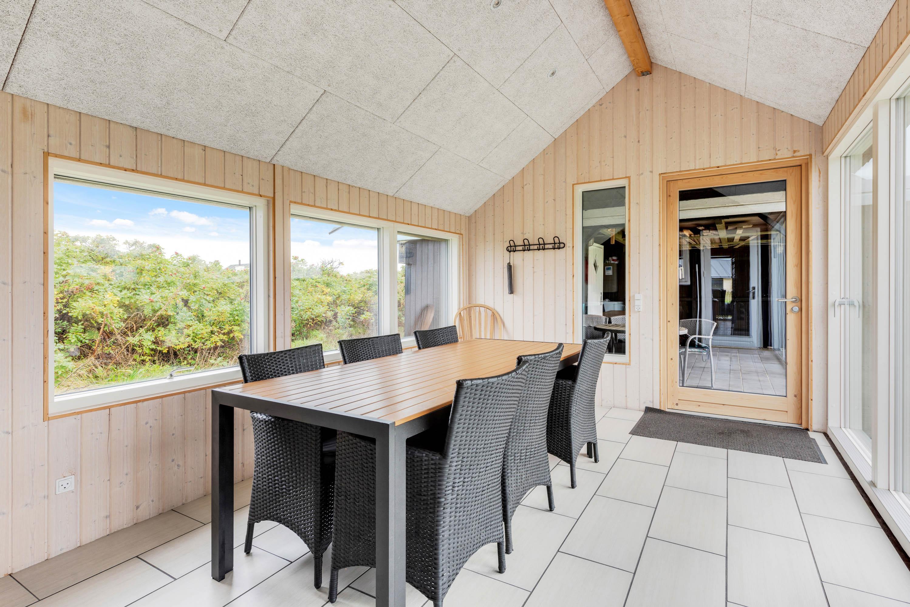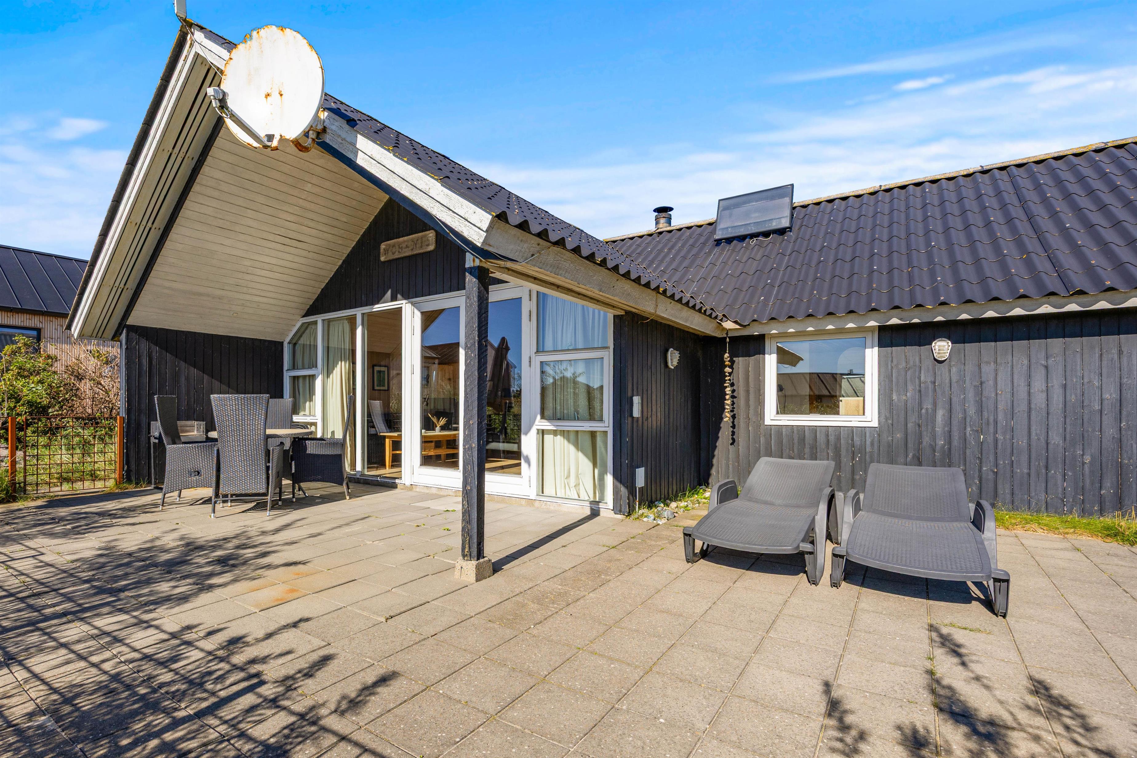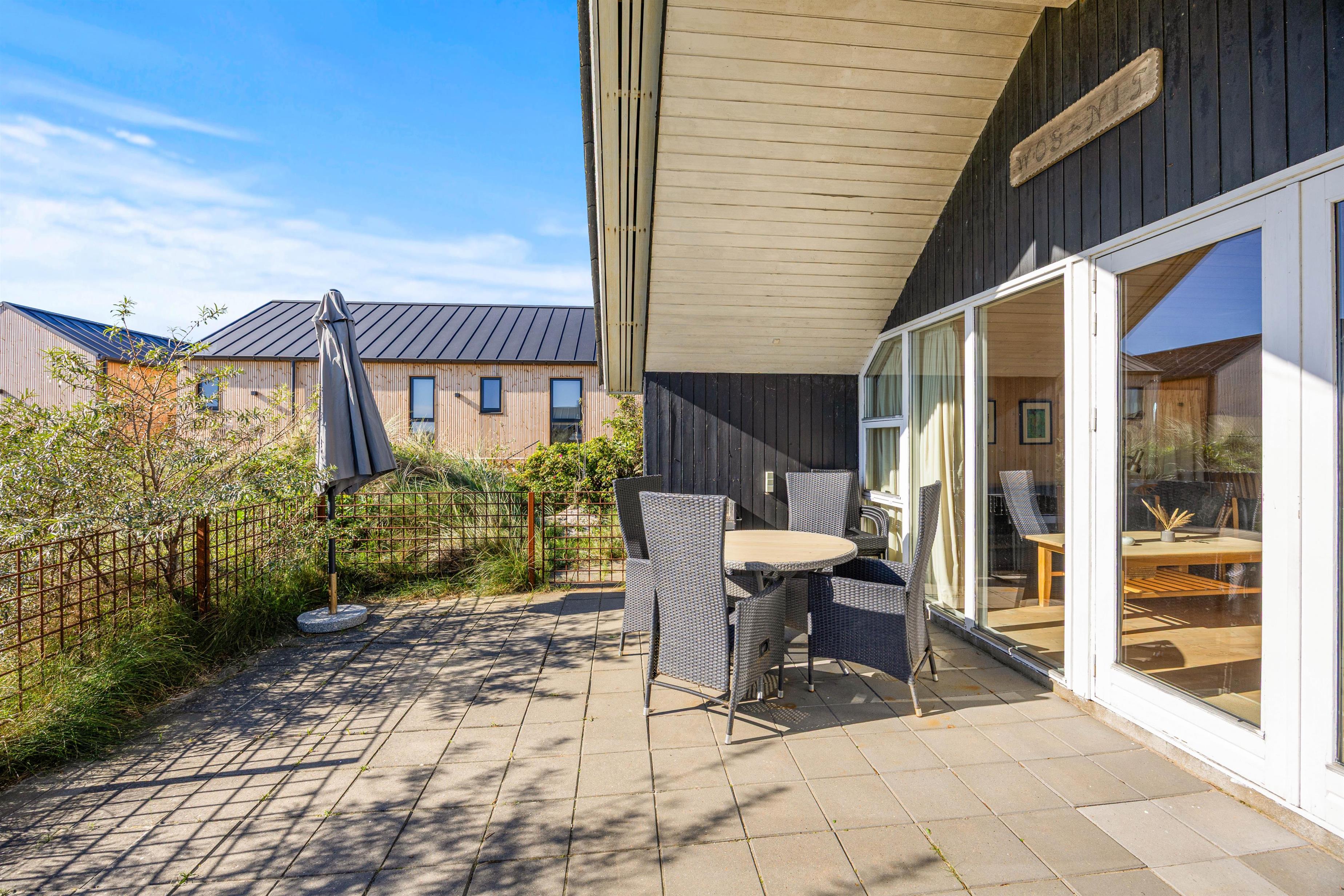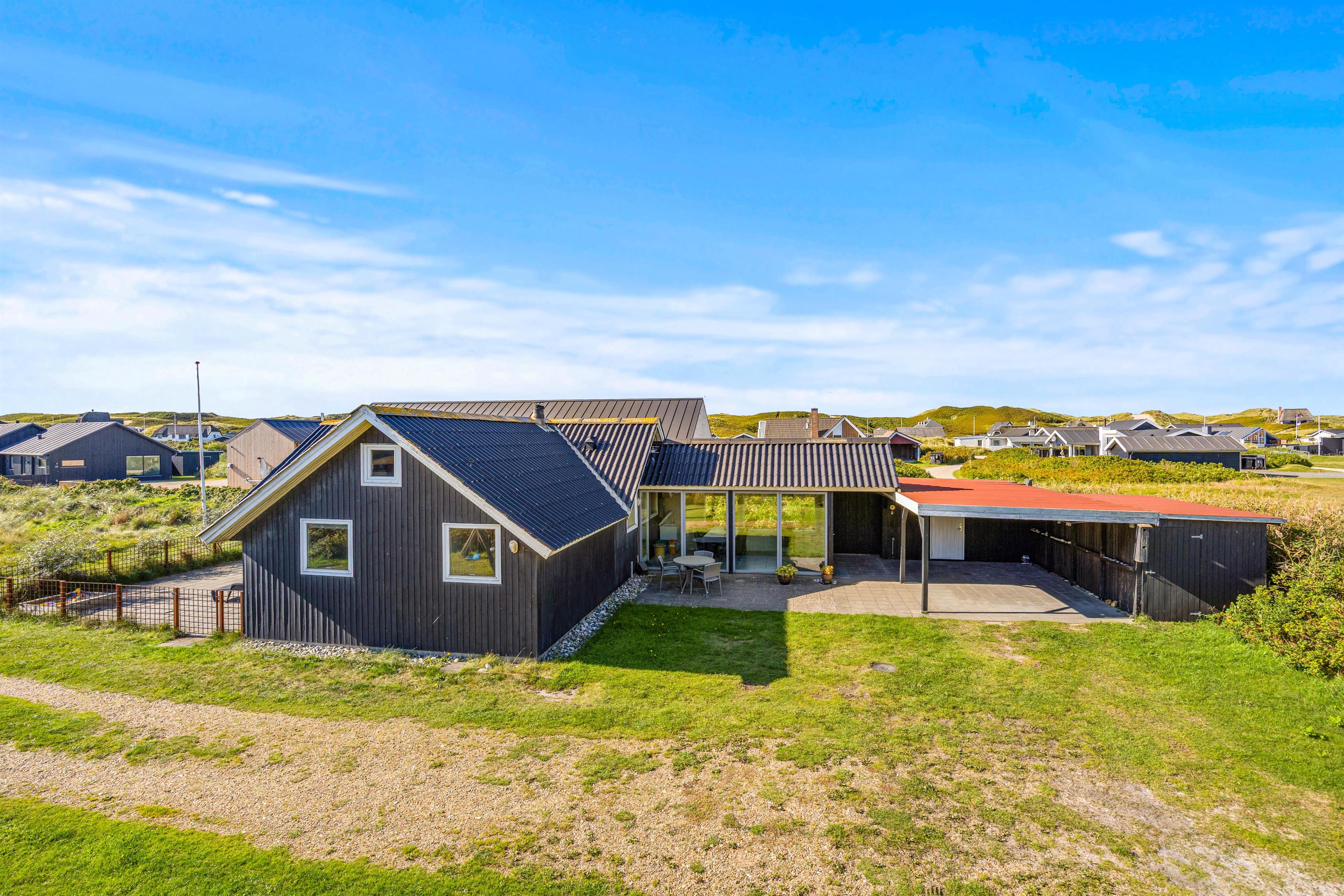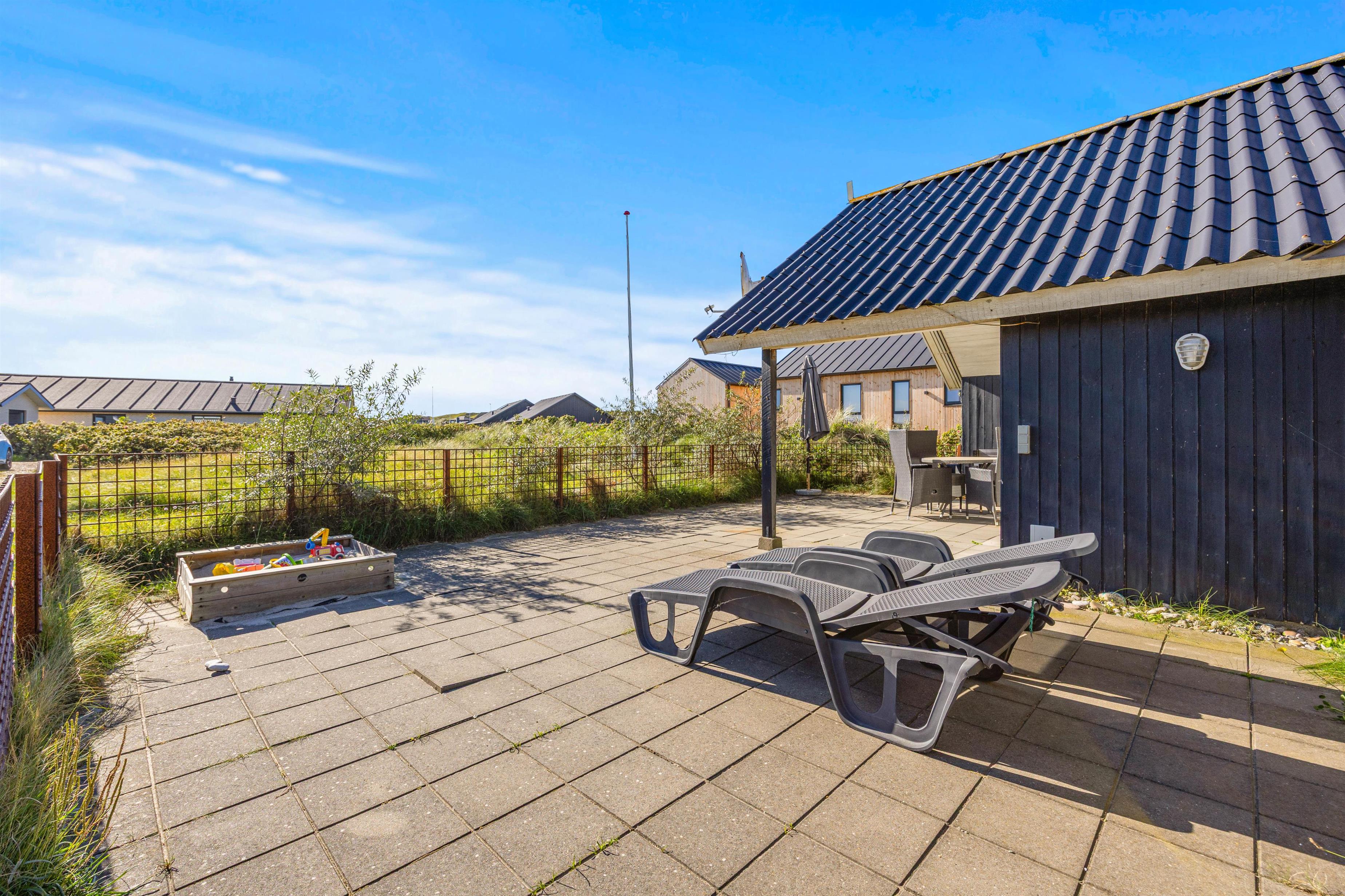 I har en rigtig god og dejlig lukket terrasse, langs den sydlige facade. Den er også delvis overdækket, og ideel til hyggelige grill aftener i sommermånederne, og med bruset fra Vesterhavet i baggrunden. Derudover er luften vidunderlig frisk året rundt, og terrassen er et skønt sted for både børn og familiens hund. Her er både gynger, trampolin og sandkasse, som helt sikkert vil være et hit for de mindste i familien. Der er desuden også carport. Vesterhavet og klitterne ligger meget tæt på huset, Søndervigs centrum er kun en kort gåtur borte.