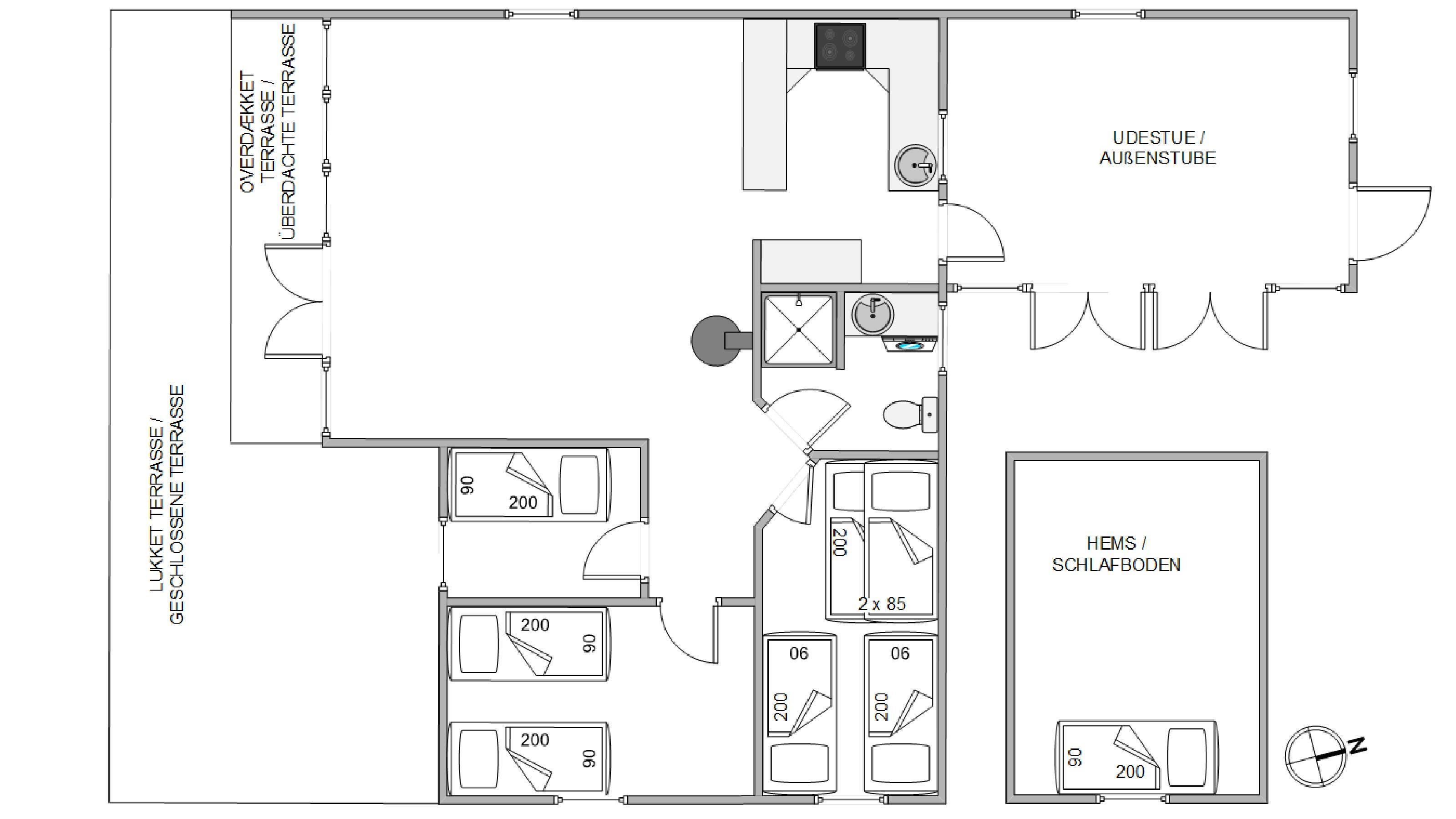 1. soverum/sengestørrelser2 x 85 x 200 + 2 x 90 x 200