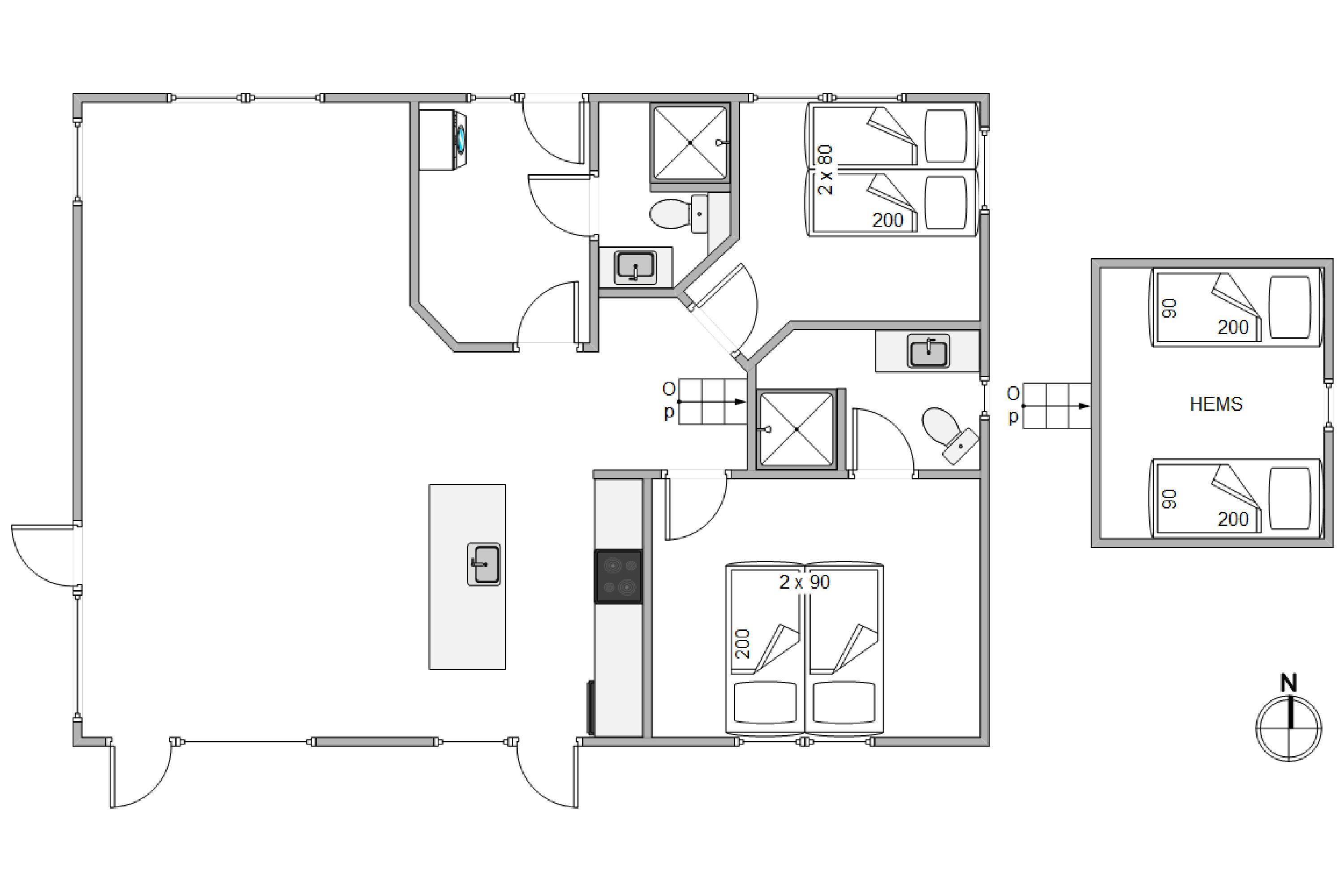 Dette moderne sommerhus byder på to rummelige soverum, begge udstyret med komfortable dobbeltsenge, der sikrer en god nattesøvn for alle. Med plads til op til seks personer, er der rigelig med plads til hele familien eller en gruppe venner. Sommerhuset omfatter også to badeværelser, så I slipper for kø om morgenen. En opvaskemaskine og vaskemaskine giver jer mere tid til at nyde ferien, mens gratis internet holder jer forbundet med verden udenfor. Hund er også velkommen her, dog er der en begrænsning på én hund, så familiens bedste ven kan også komme med.