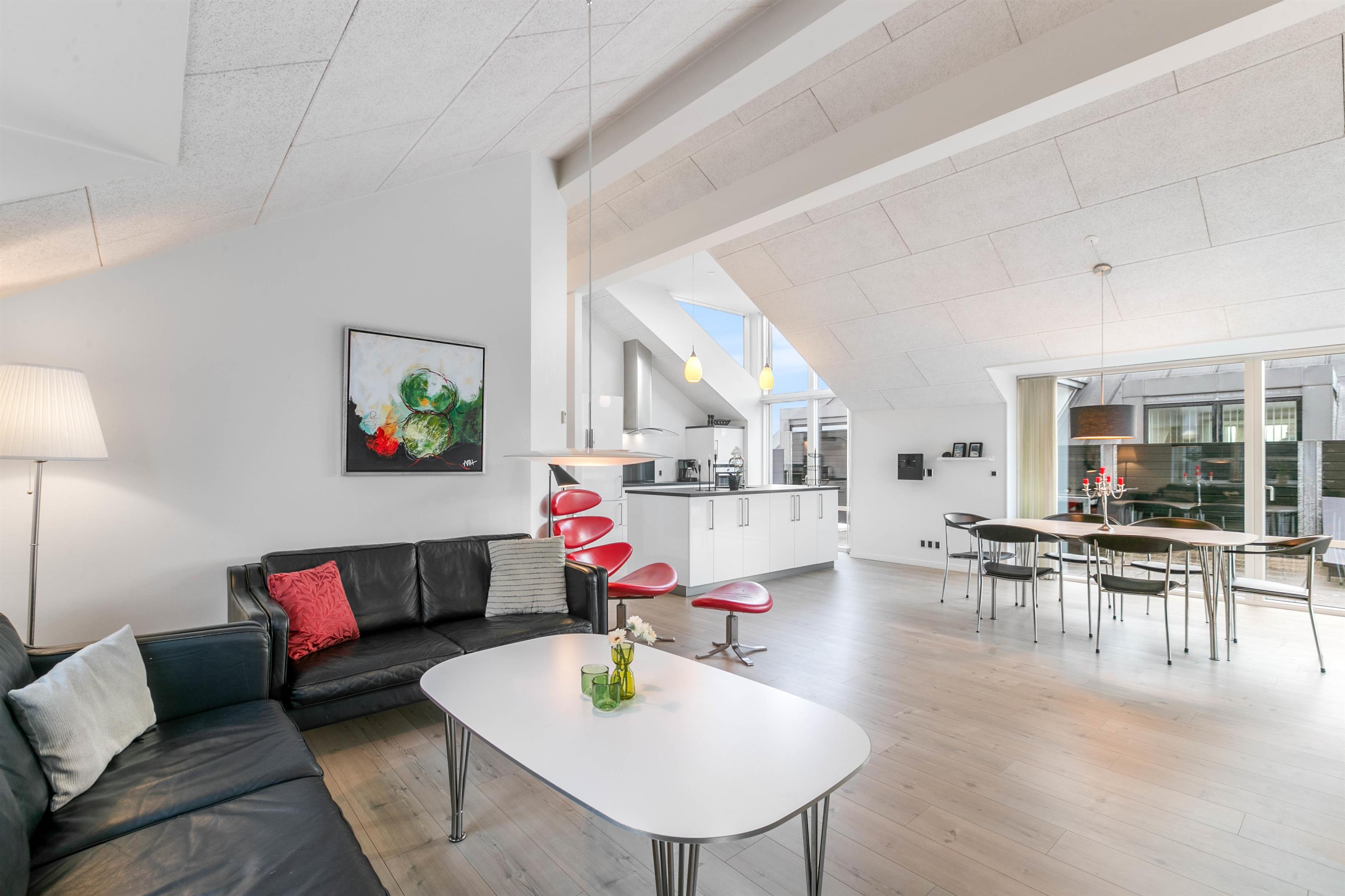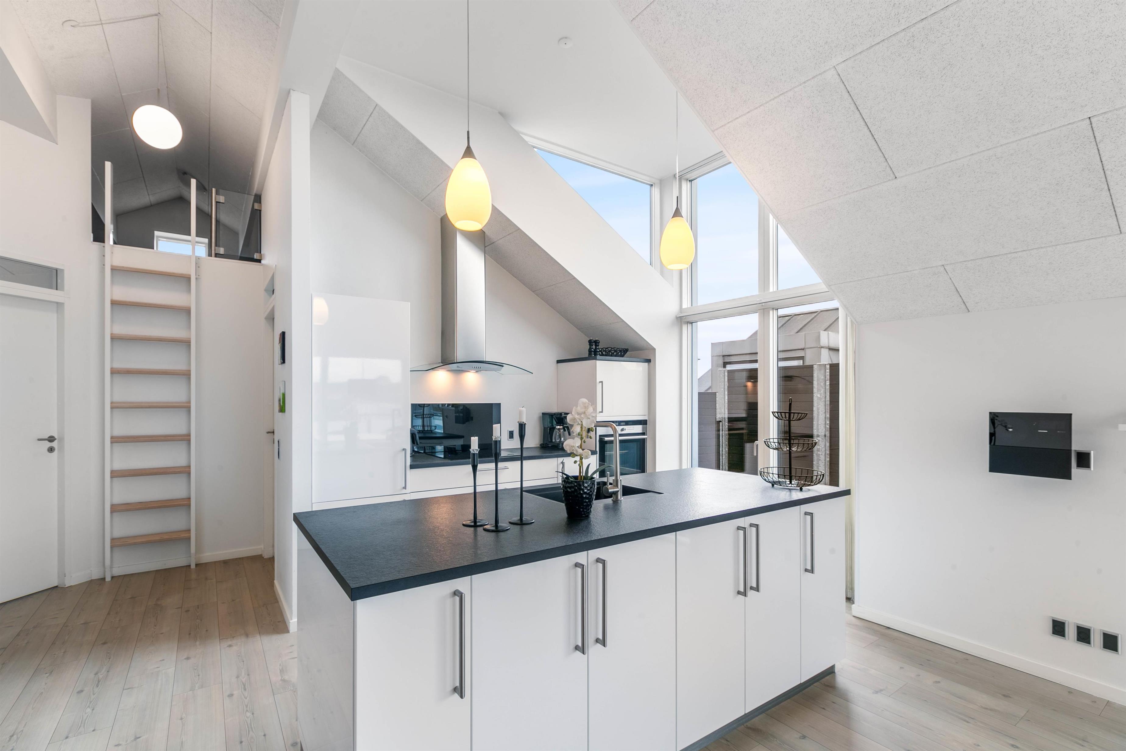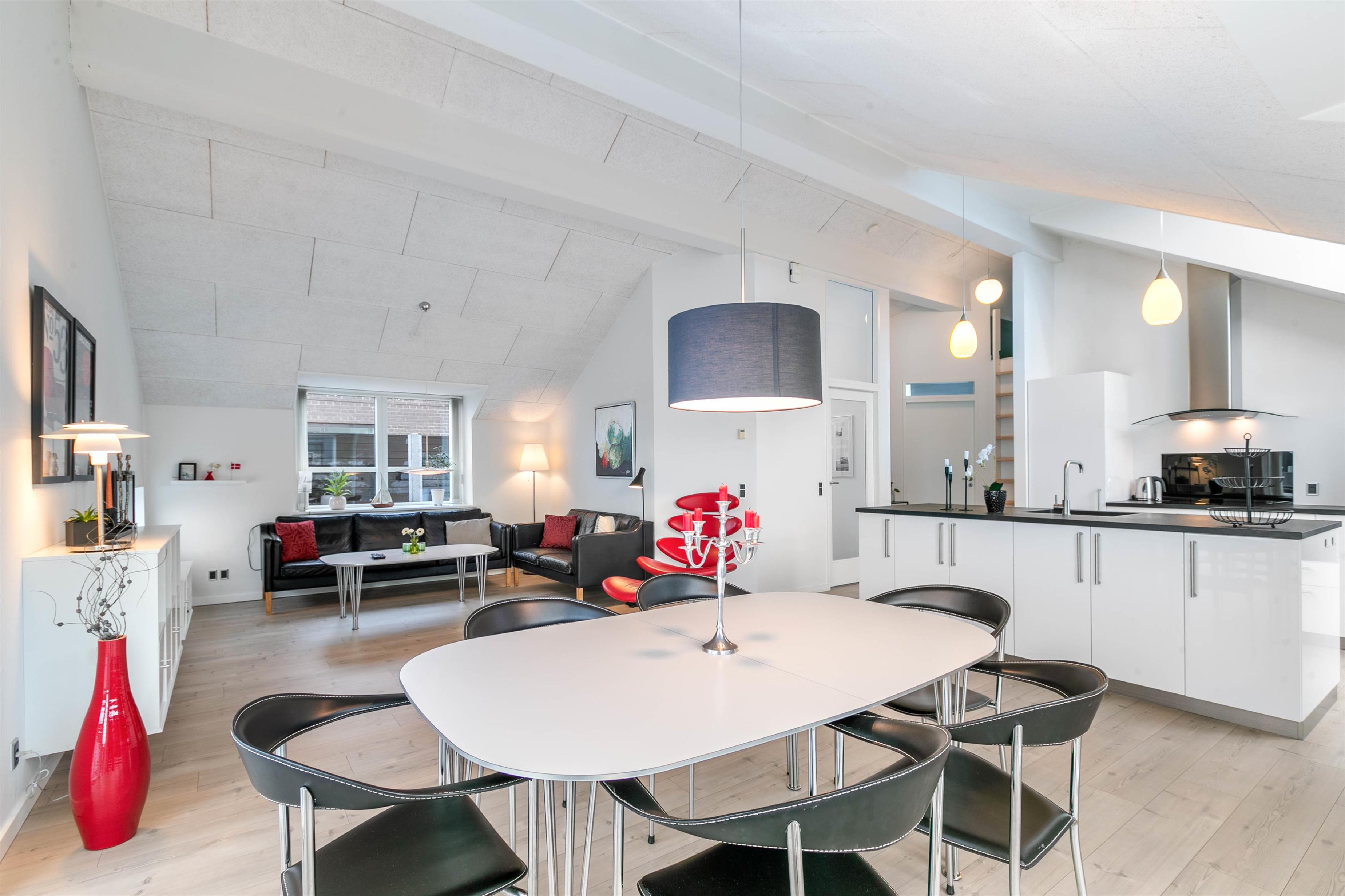 Med sine 96 km2 kan lejligheden nemt rumme 6 gæster. Det flotte og veludstyrede køkken ligger i åben forbindelse med stuen, som er moderne indrettet med gode møbler og højt til loftet. Den lette, stringente indretning og det flotte lysindfald giver en dejlig atmosfære i rummet. Perfekt til hyggelige middage med god vin eller afslapning i sofaen. Fra stuen er der adgang til en dejlig hems, med en god udsigt over alrummet. Hemsen er perfekt som en hule til børnene eller som ekstra soveplads. Bemærk venligst, at ud af de seks sovepladser som huset kan tilbyde, er to af disse på husets hems.