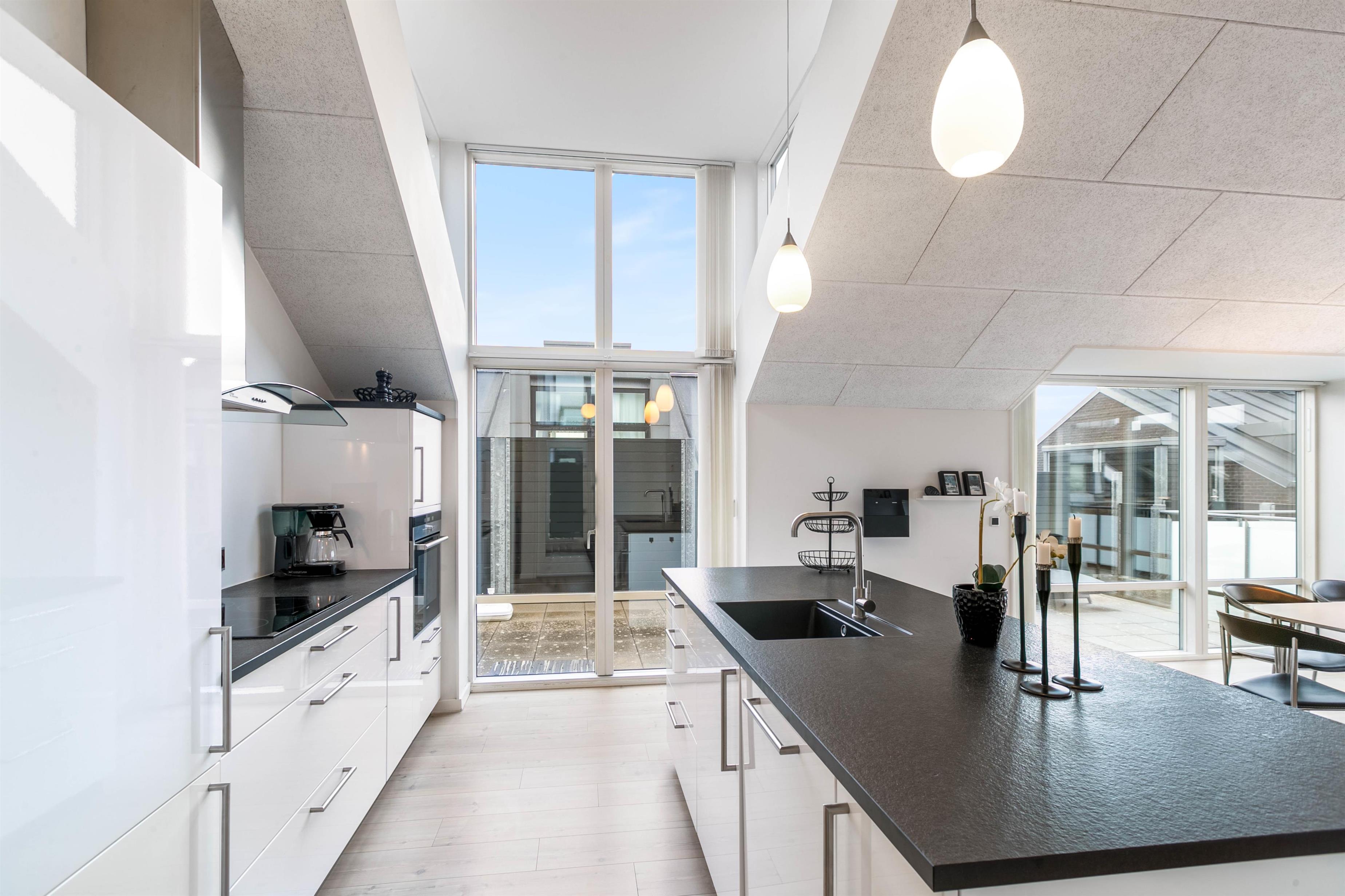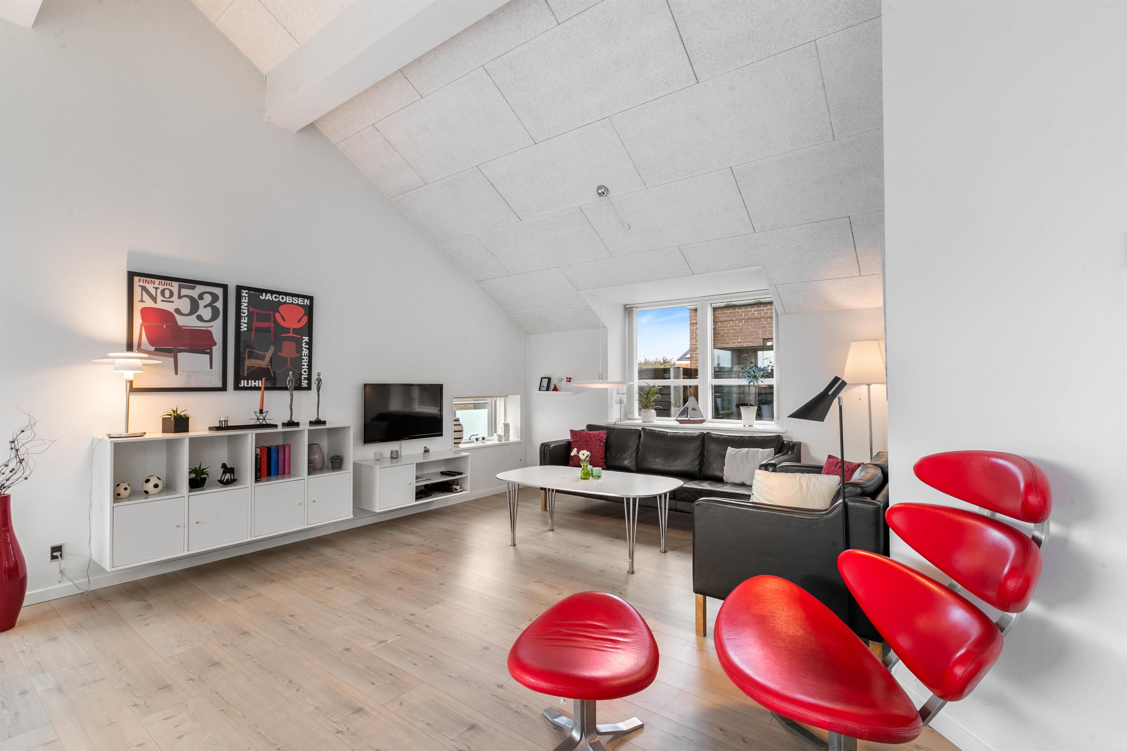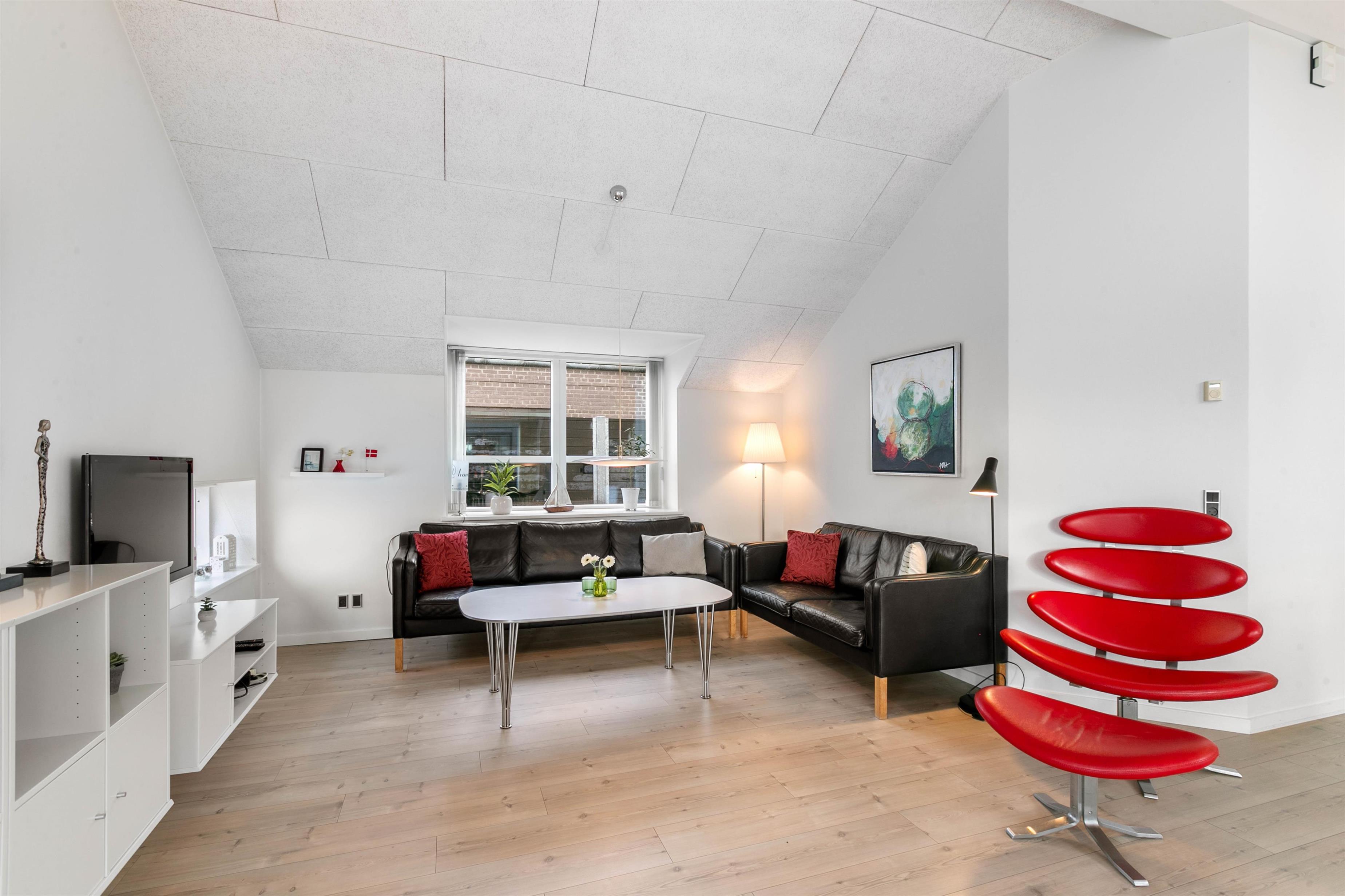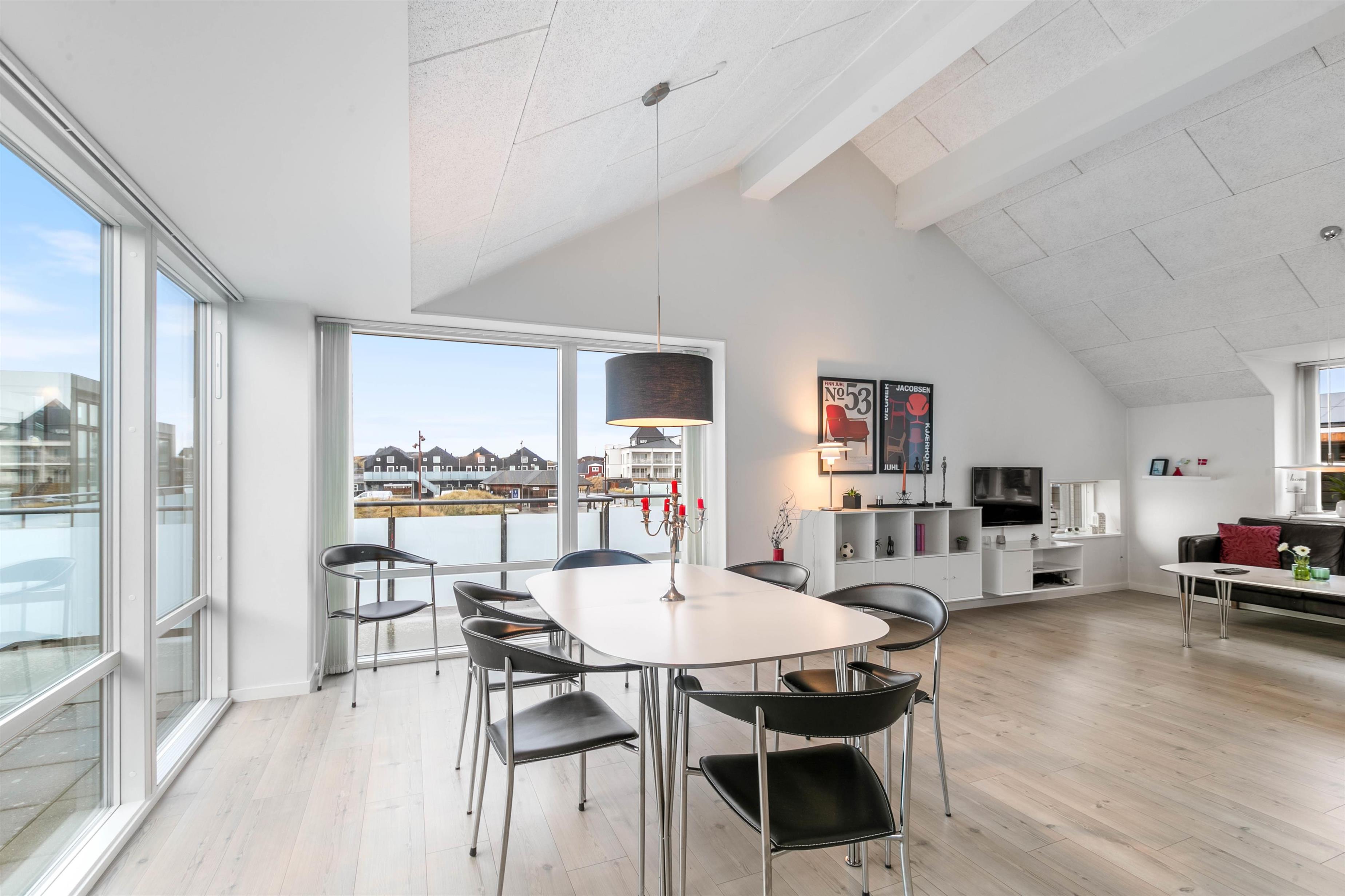 Med sine 96 km2 kan lejligheden nemt rumme 6 gæster. Det flotte og veludstyrede køkken ligger i åben forbindelse med stuen, som er moderne indrettet med gode møbler og højt til loftet. Den lette, stringente indretning og det flotte lysindfald giver en dejlig atmosfære i rummet. Perfekt til hyggelige middage med god vin eller afslapning i sofaen. Fra stuen er der adgang til en dejlig hems, med en god udsigt over alrummet. Hemsen er perfekt som en hule til børnene eller som ekstra soveplads. Bemærk venligst, at ud af de seks sovepladser som huset kan tilbyde, er to af disse på husets hems.