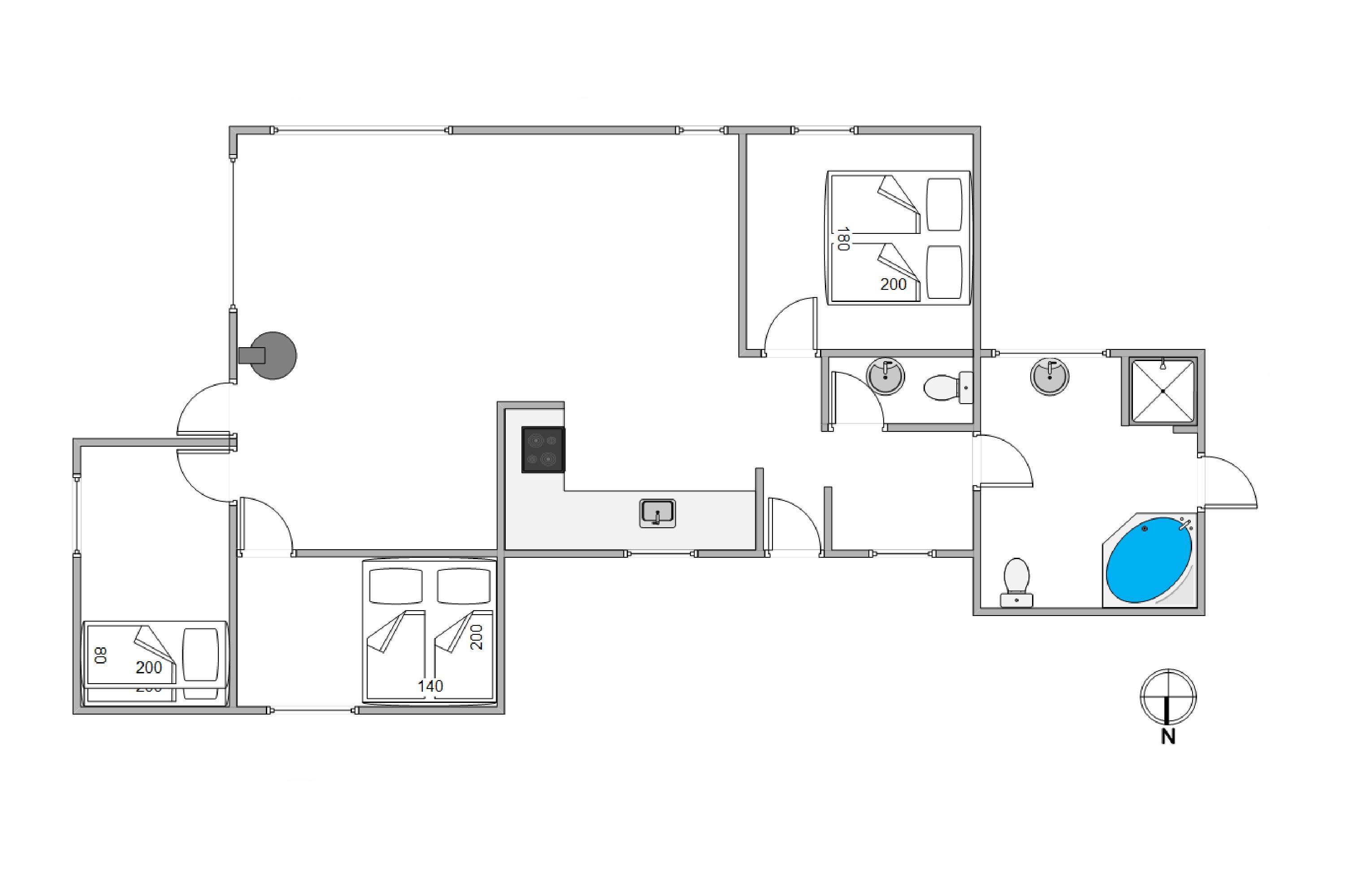 3. soverum/sengestørrelser2 Køjer (2x80x190)
