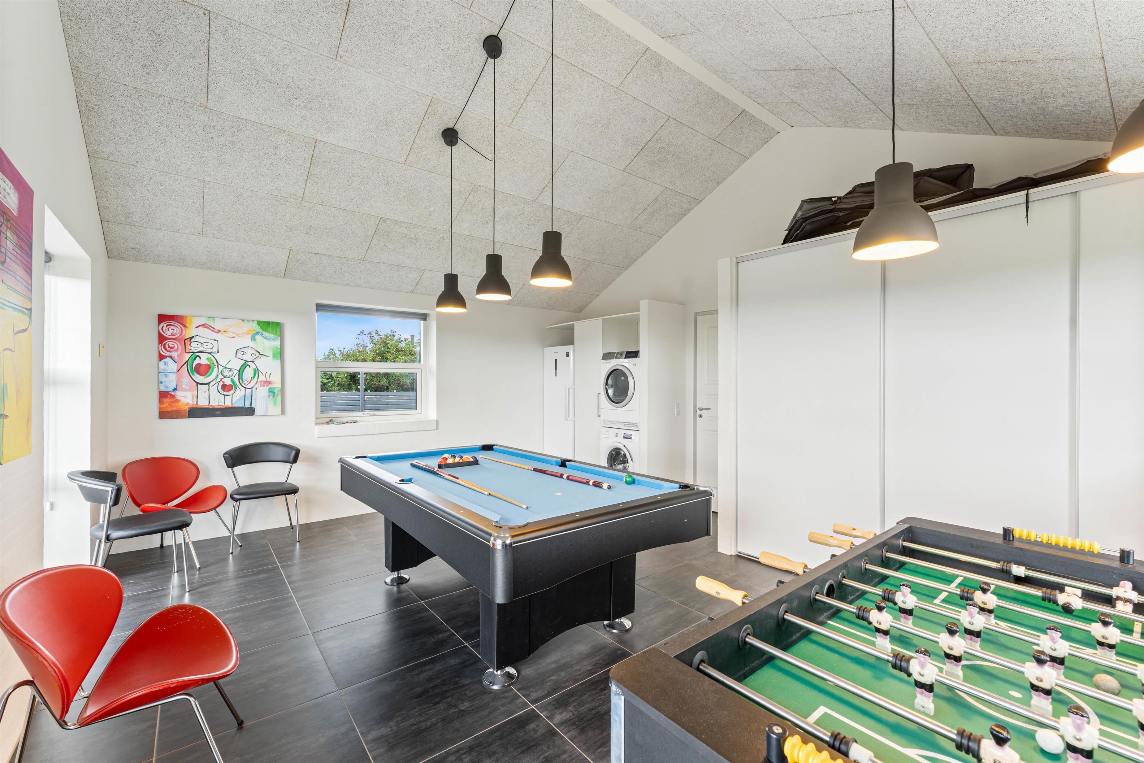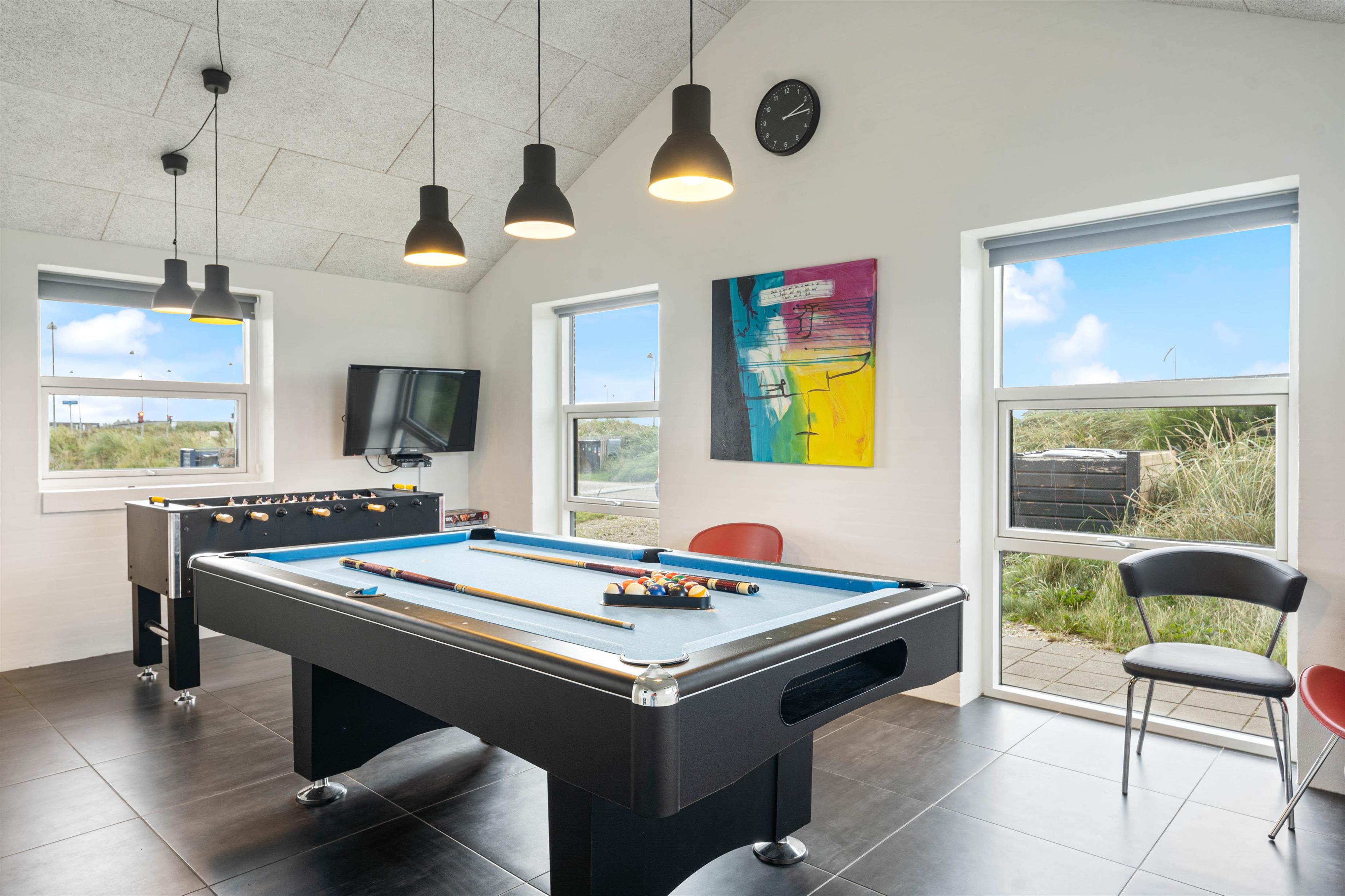 Huset har et godt og stort aktivitetsrum, som børnene vil elske. Her er der både tv, poolbord og bordfodbold. I er dermed sikret timevis af underholdning til børnene uden at være afhængige af vejret udenfor. Huset har desuden både sauna og spabad, som er oplagt at hoppe i efter en lang dag ude i den friske luft.