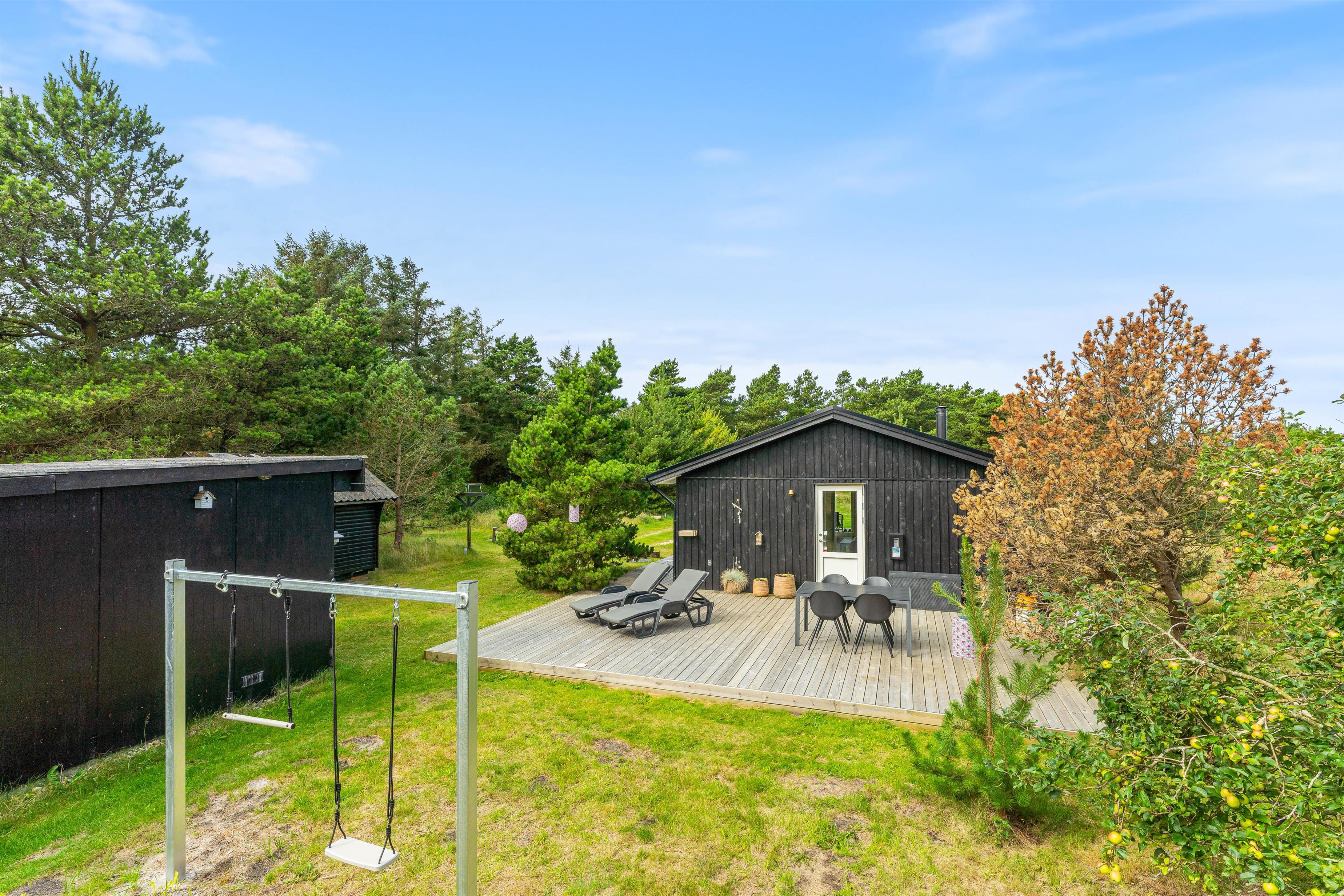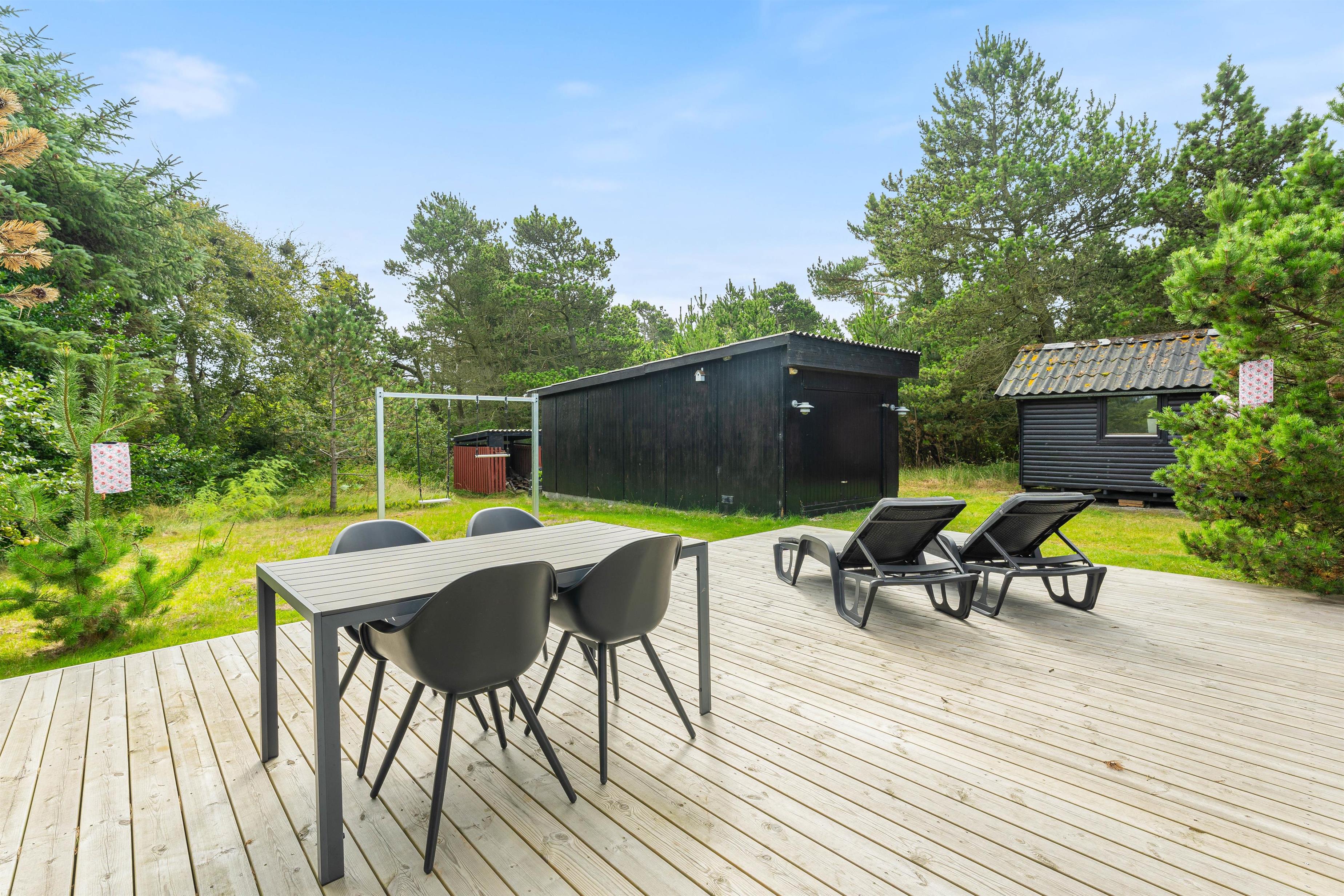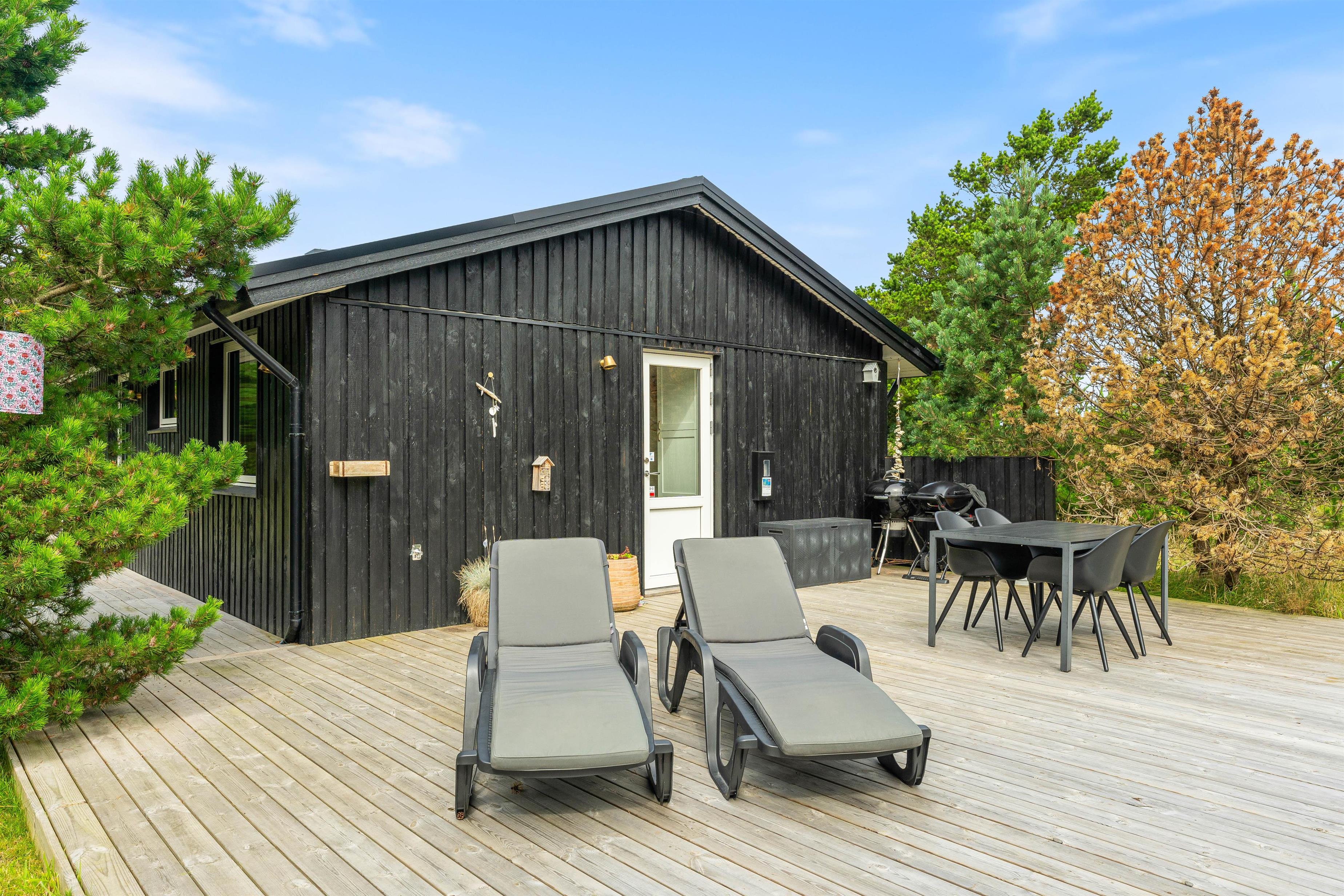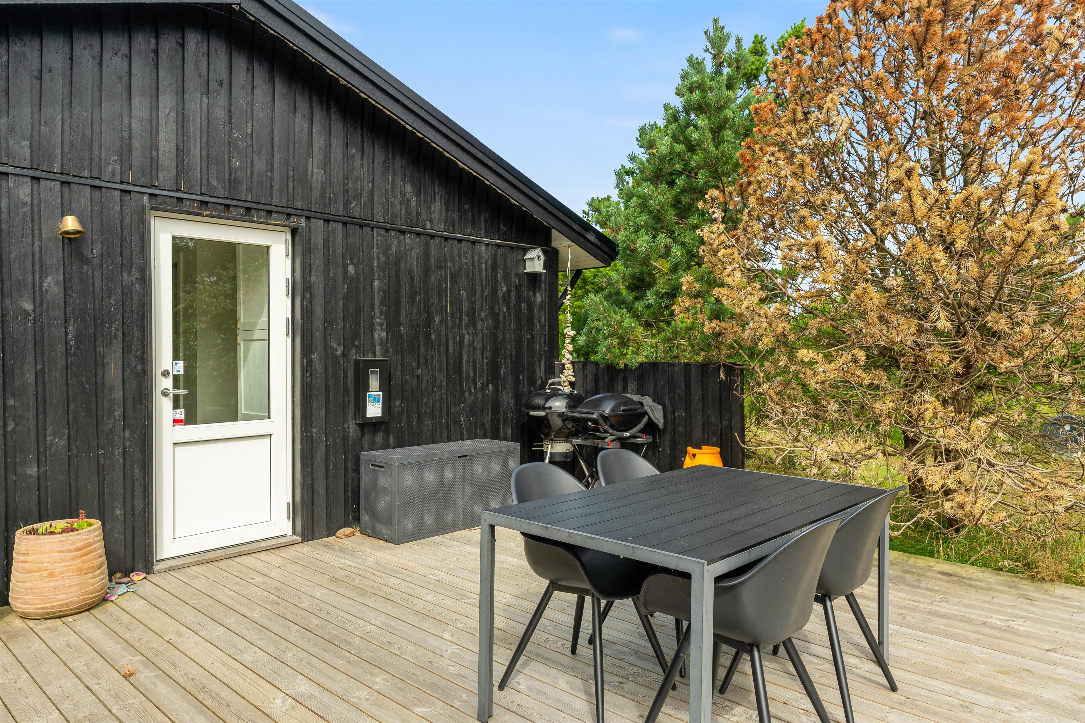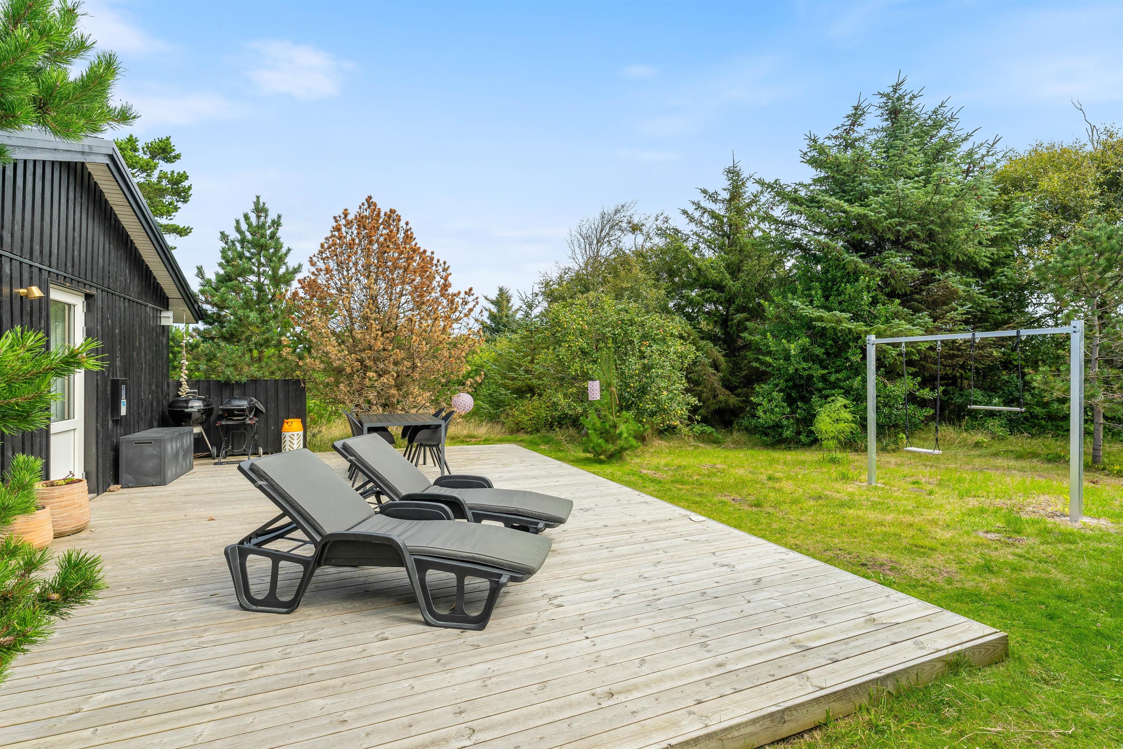 Uanset hvor på terrassen I foretrækker at sidde, er der havemøbler og liggestole, som I kan finde jer godt til rette i. Derudover har I en kulgrill og gasgrill til rådighed, så I kan tilberede nogle lækre grillmiddage i løbet af ferien, som I kan nyde på terrassen på de lune ferieaftener.