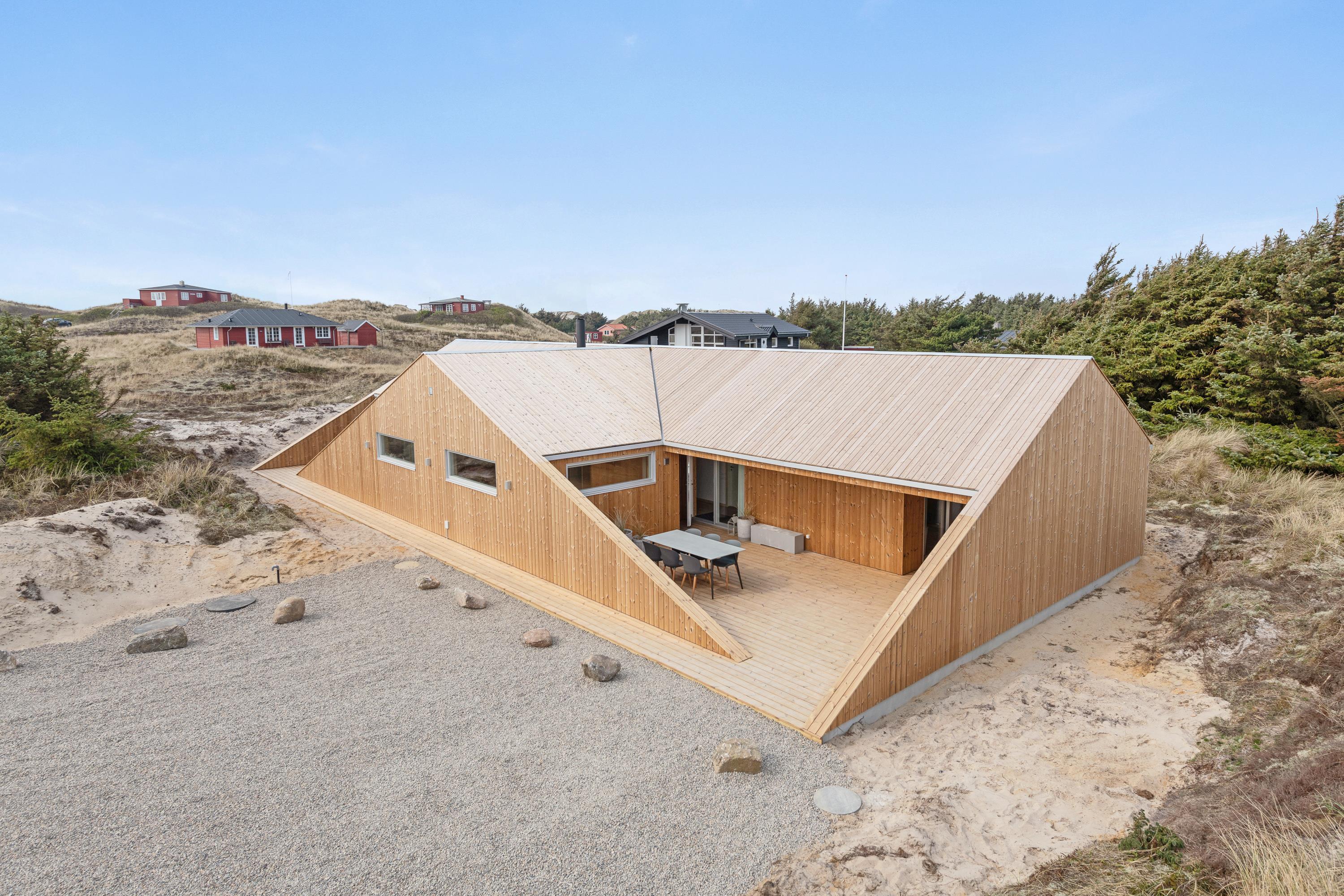 Leder I efter et feriehus ud over det sædvanlige? Så er Marehalmen 54 helt ideelt! Den spændende arkitektur og opbygning er lavet med omtanke for beliggenheden - nemlig så feriehuset passer flot ind i landskabet og så du får mest muligt ud af den smukke natur. Derudover er det flot, lyst og rummeligt indrettet, så du har god plads til en hyggelig og afslappende familieferie. Feriehuset er opført i 2019 og byder på en stilren indretning (med sauna, badekar og udendørs bruser!), aktivitetsrum og ikke mindst en fantastisk beliggenhed kun 350 meter fra Vesterhavet.