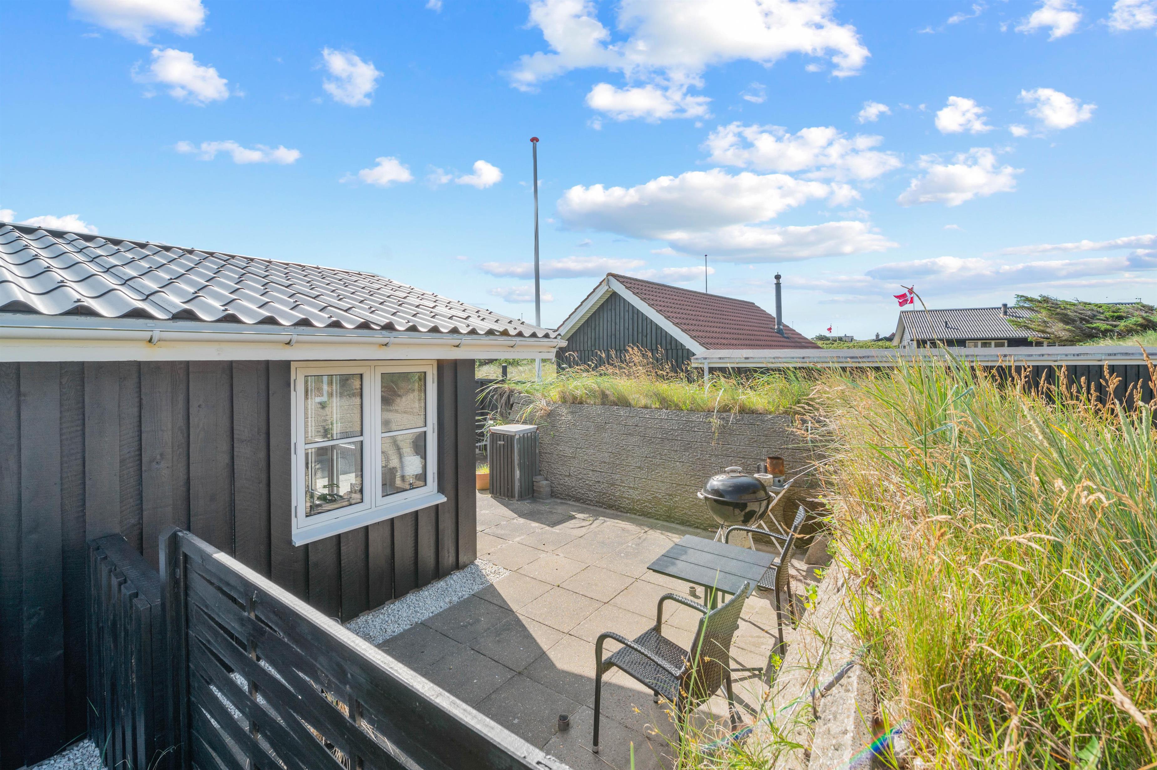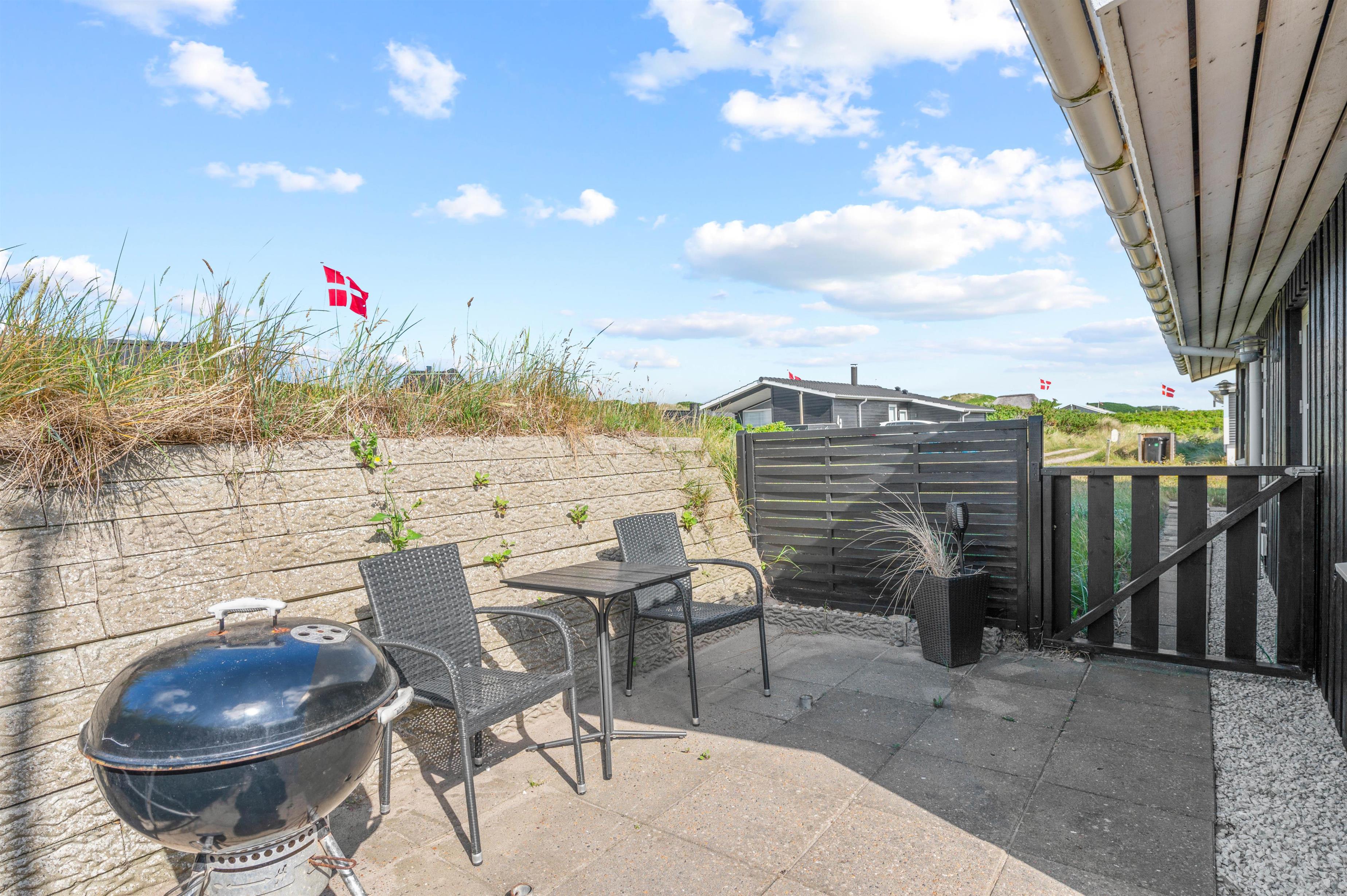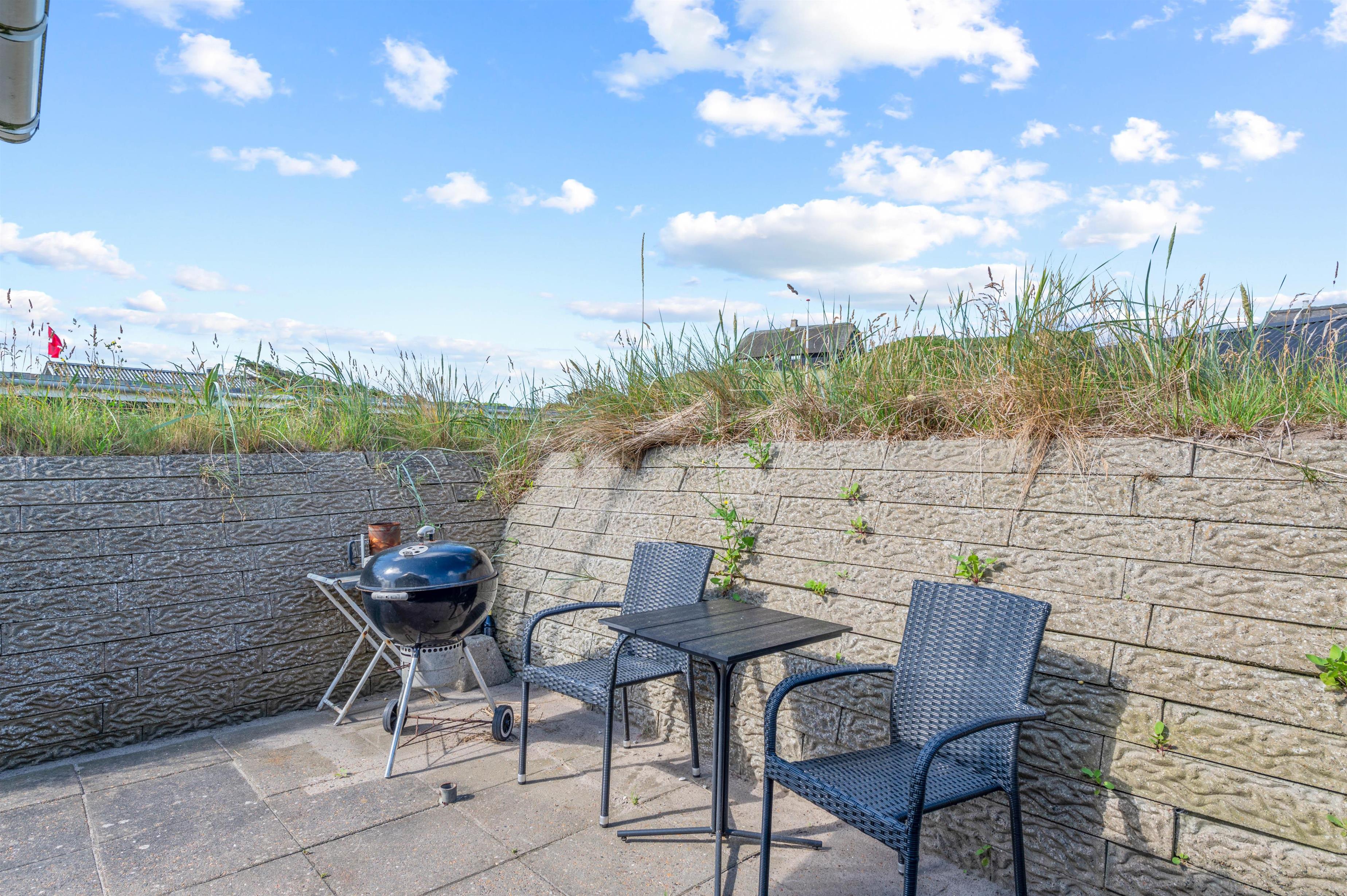 På de varme feriedage kan I rykke ud på sommerhusets skønne terrasse. Her har I både havemøbler og liggestole til rådighed, så I har god mulighed for at slappe af på en god plads i solen. På terrassen har I også mulighed for at grille en lækker middag om aftenen på sommerhusets grill. Sommerhuset ligger desuden på en indhegnet grund, så jeres hund kan sagtens være med ude, uden at gå på opdagelse på egen hånd.
