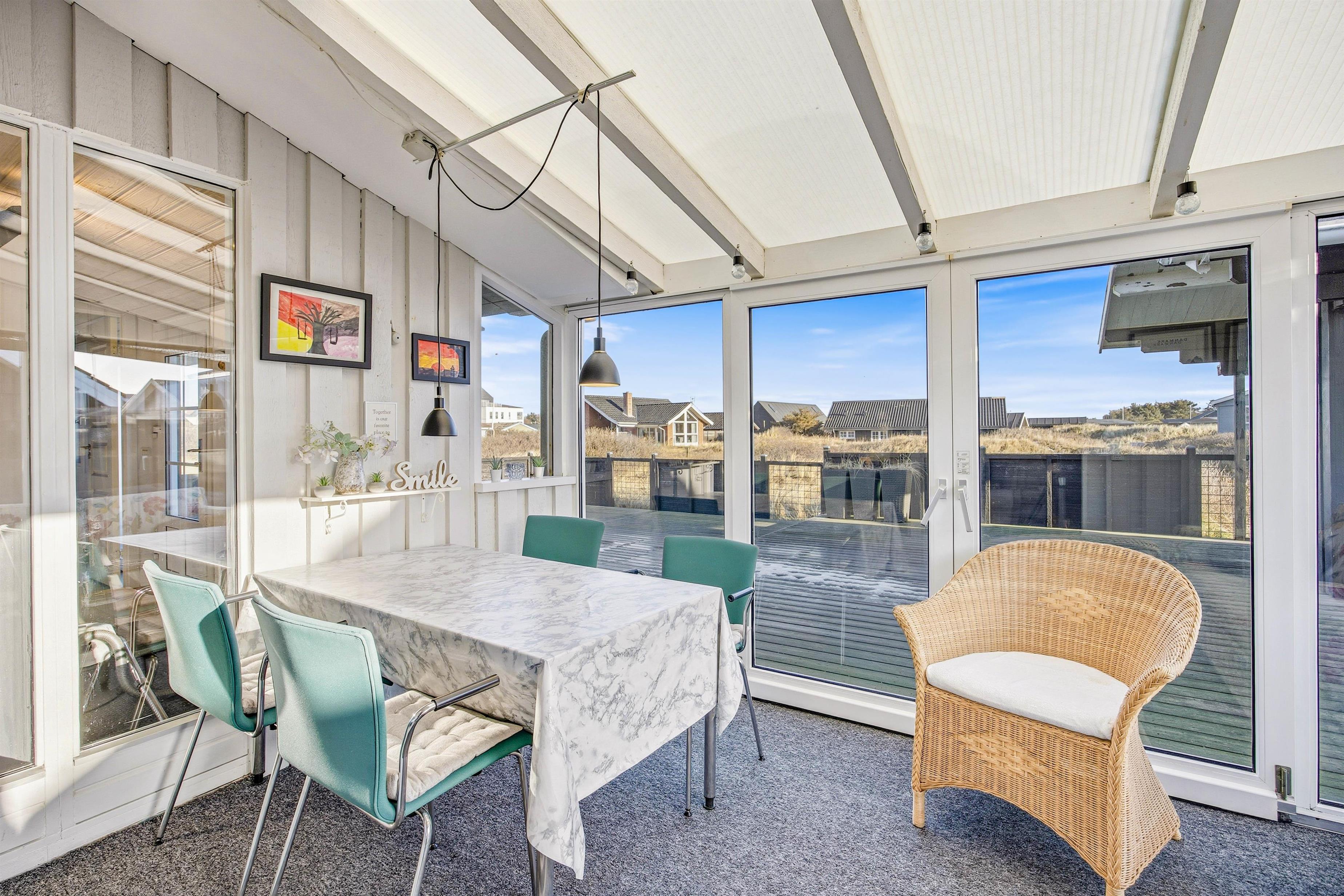 Sommerhuset har en beliggenhed uden lige. Fra sommerhuset på Sletten 35 har I nemlig kun 100 meter til det fantastiske Vesterhav, som kun tager jer få minutter at nå til, når I trænger til en frisk dukkert i de blå bølger eller en skøn gåtur langs vandet.
