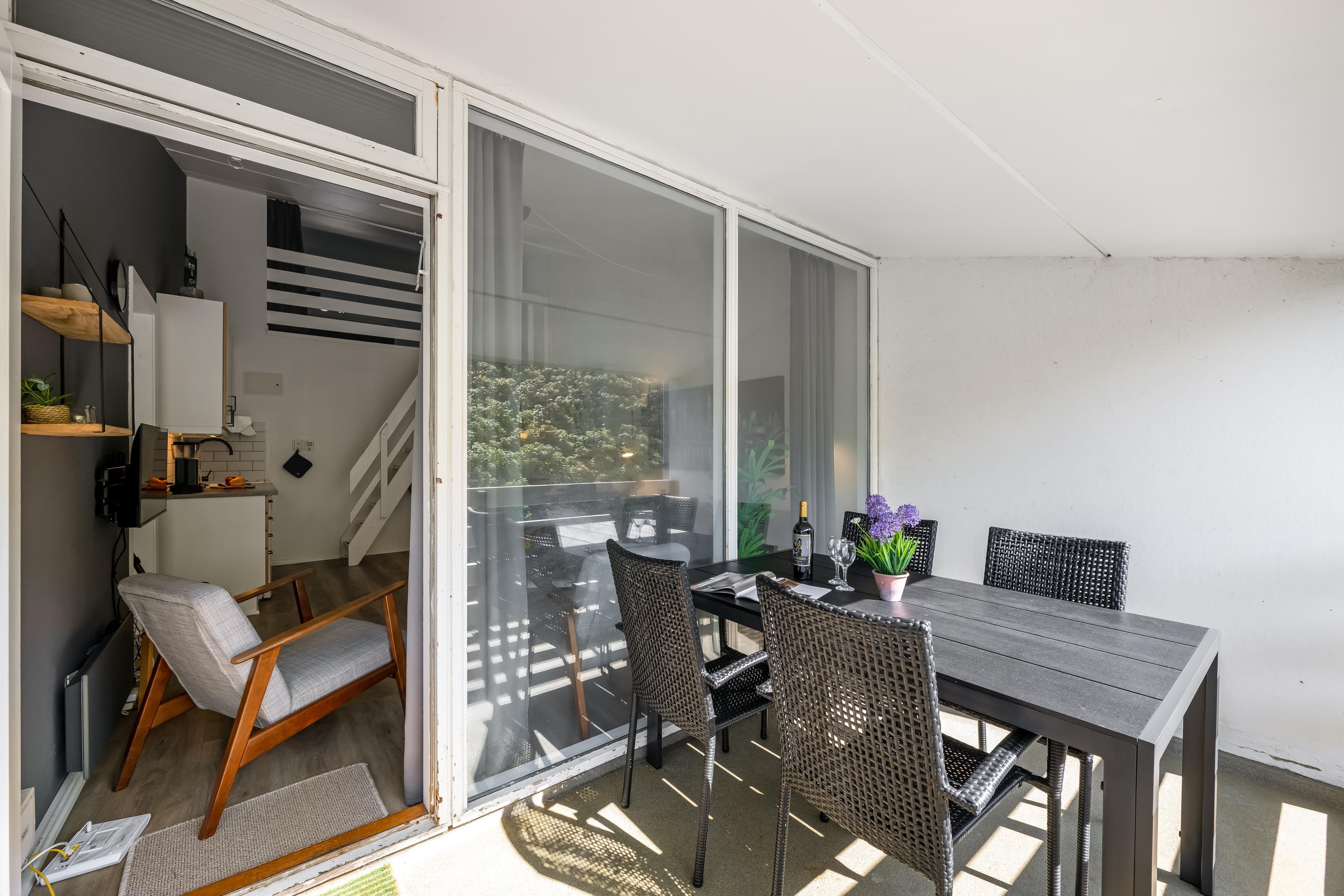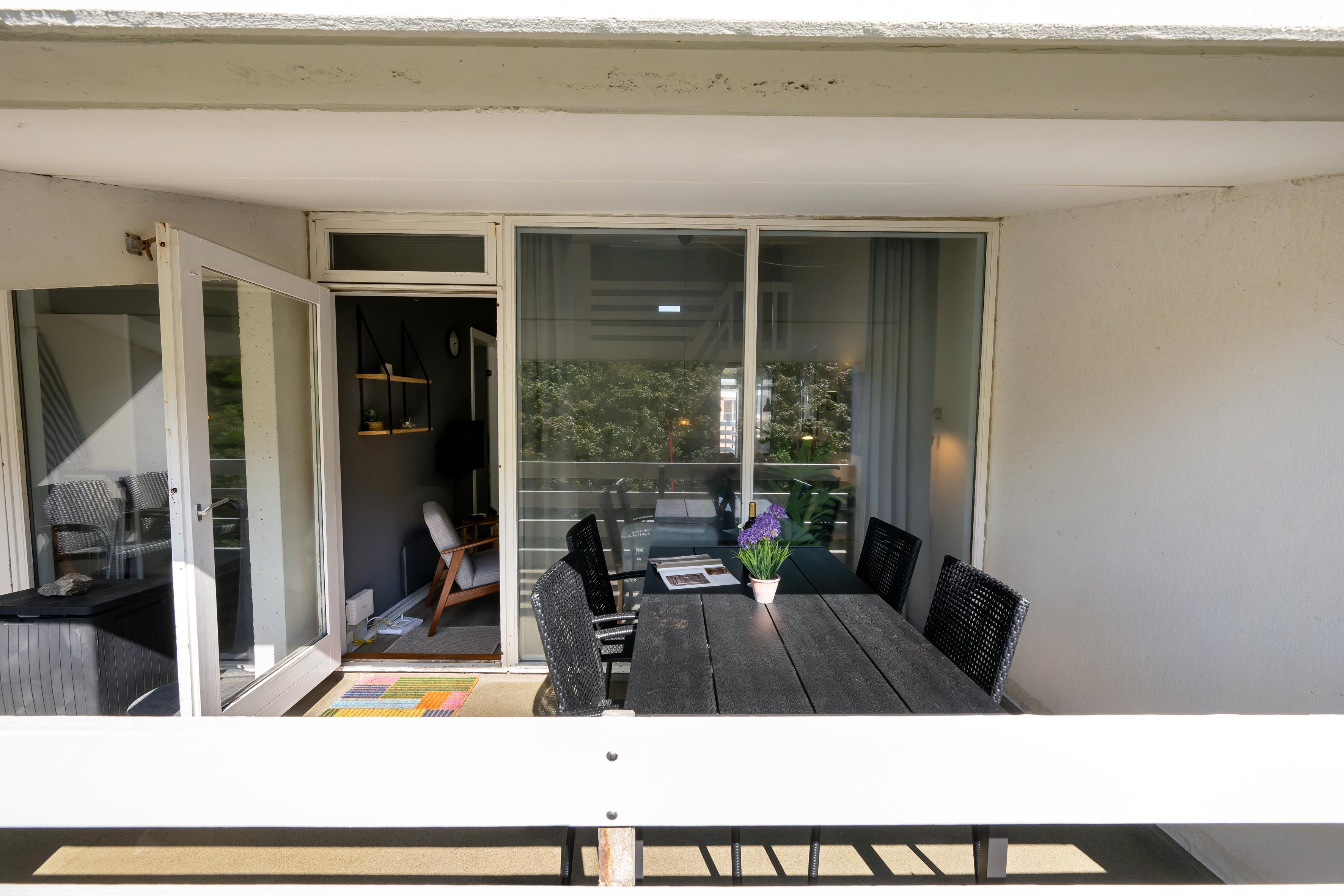 Den store balkon er et fantastisk sted at tilbringe tid sammen, uanset vejret. Her kan du nyde morgenkaffen eller en god bog i fred og ro. Du kan også tænde husets elgrill, så du kan tilberede aftensmaden i det fri. Boligen er også udstyret med en barneseng og barnestol, hvilket gør det til et perfekt valg for børnefamilier. Husdyr er tilladt, så du kan tage din firbenede ven med på ferie!