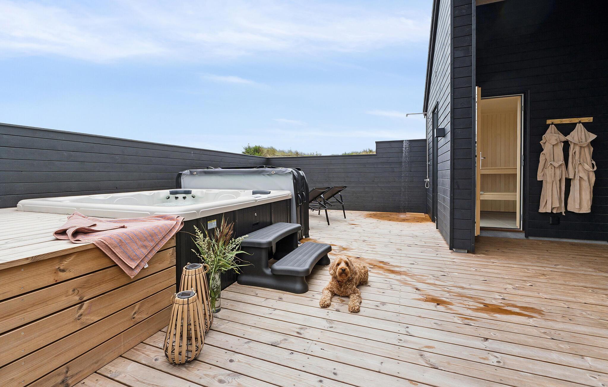 Stilfuldt feriehus i Søndervig med wellness, pool, sauna og store aktivitetsmuligheder nær Vesterhavet.