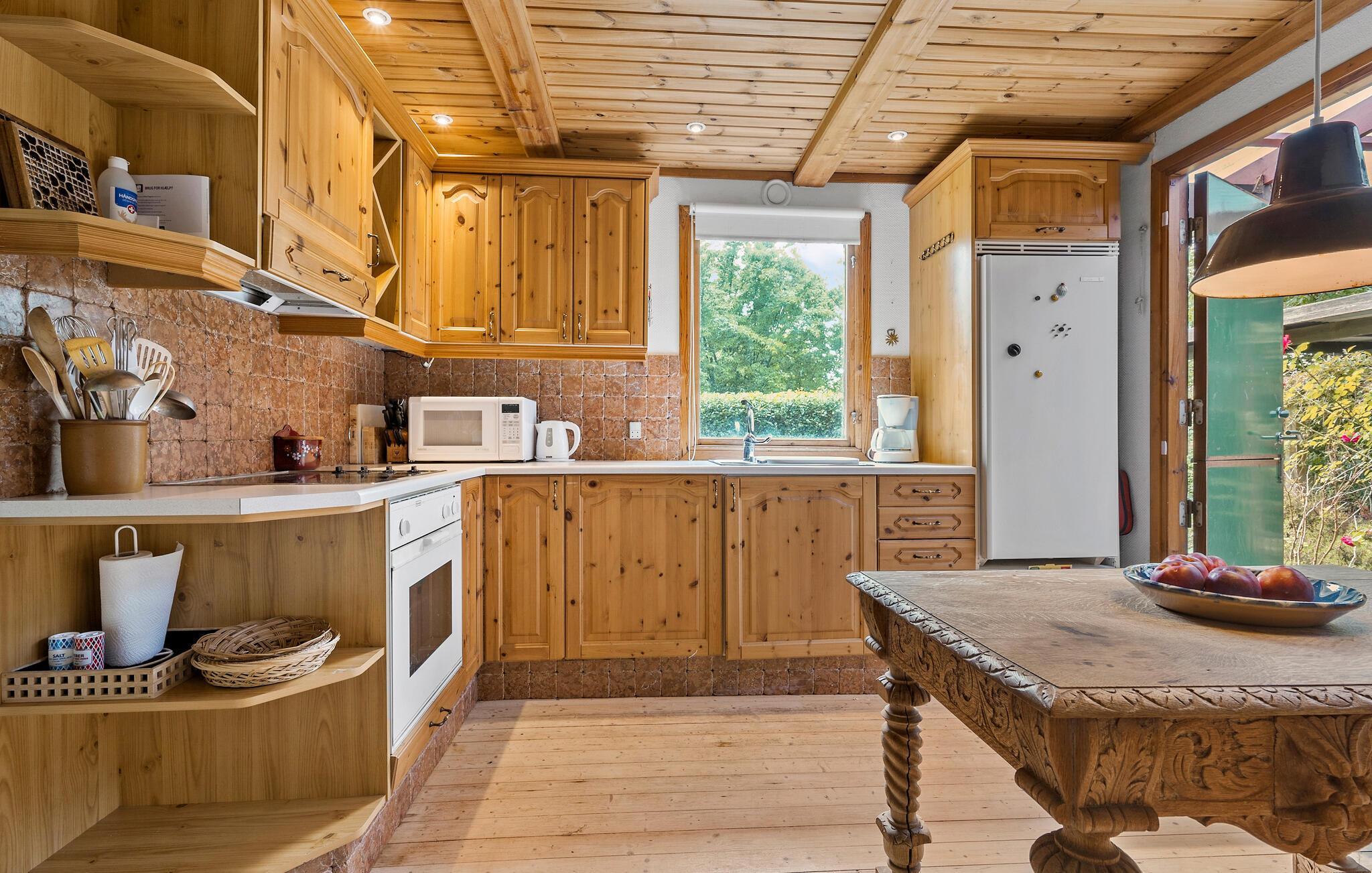 Placeringen af ??dette hyggelige sommerhus er ideel. Det ligger kun en kort gåtur fra Storebælts klare vand, så I får de skønneste rammer til gåture og en frisk dukkert, så tit I vil. I kan begynde dagene med at klargøre morgenmaden i det åbne, veludstyrede køkken og derefter sætte jer og planlægge dagens aktiviteter og udflugter. Hvis I dækker op til måltiderne på den overdækkede terrasse, har I en vidunderlig udsigt over haven og kan nyde freden og roen i grønne omgivelser. Haven giver jer også masser af plads til sjove boldspil.