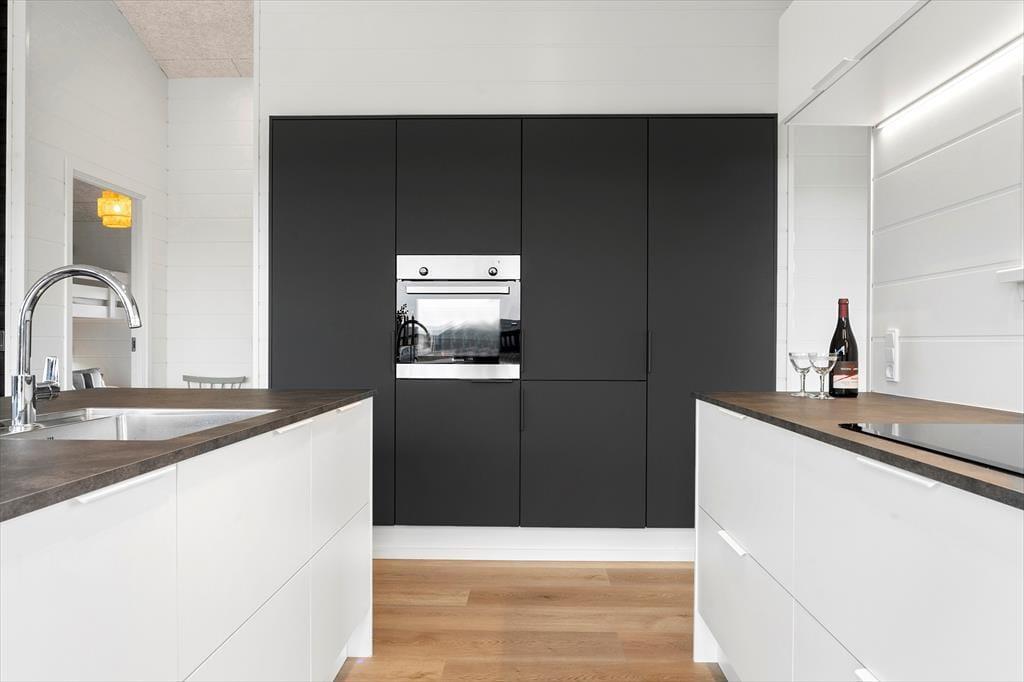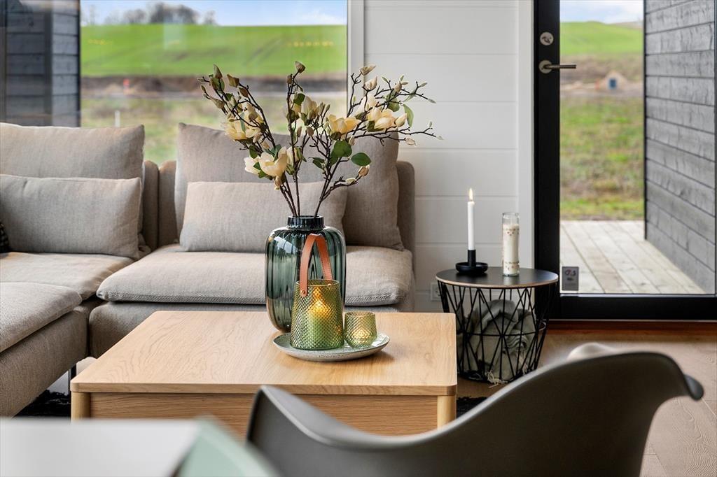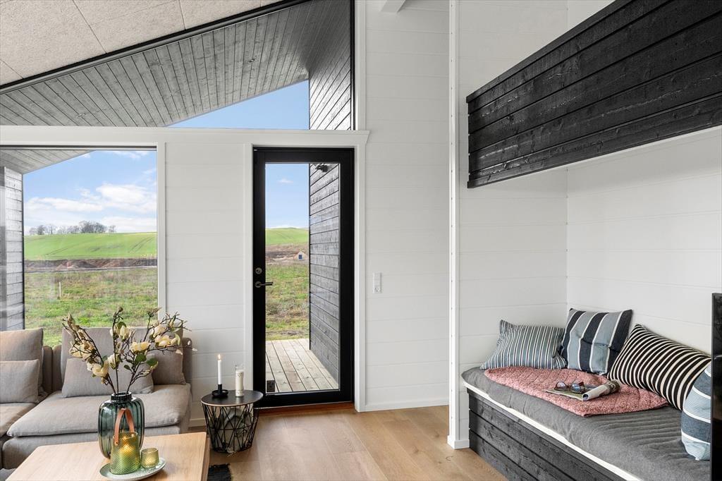 Når du træder indenfor, bliver du mødt af et lyst og stilfuldt indrettet sommerhus, der er skabt til fællesskab. Det store, åbne køkken-alrum er hjemmets hjerte – her kan I lave mad sammen, dække op til lange middage og hygge jer med brætspil og gode samtaler. Store vinduespartier lukker lyset ind og skaber en naturlig forbindelse til terrassen, så I kan nyde ude- og indelivet på samme tid.