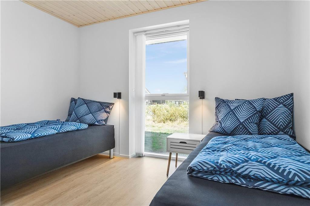 Boligen rummer tre gode soverum. To af værelserne er indrettet med enkeltsenge og god skabsplads og giver samtidig plads til både afslapning og leg. Det tredje soverum har dobbeltseng, god opbevaringsplads og direkte adgang til eget badeværelse, hvilket giver ekstra komfort under opholdet. I alle tre soverum finder du TV med Chromecast og adgang til husets TV-pakke, ligesom du nemt kan streame dine egne TV- og streamingtjenester.