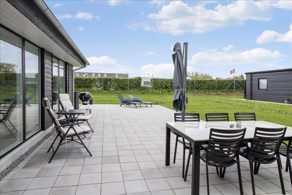 Der er flere fine havemøbler, positionsstole og liggestol, hvor i opholdet kan nydes sammen med familien. På husets kul grill kan aftensmaden tilberedes imens der hygges og snakkes om dagens og morgenens oplevelser.