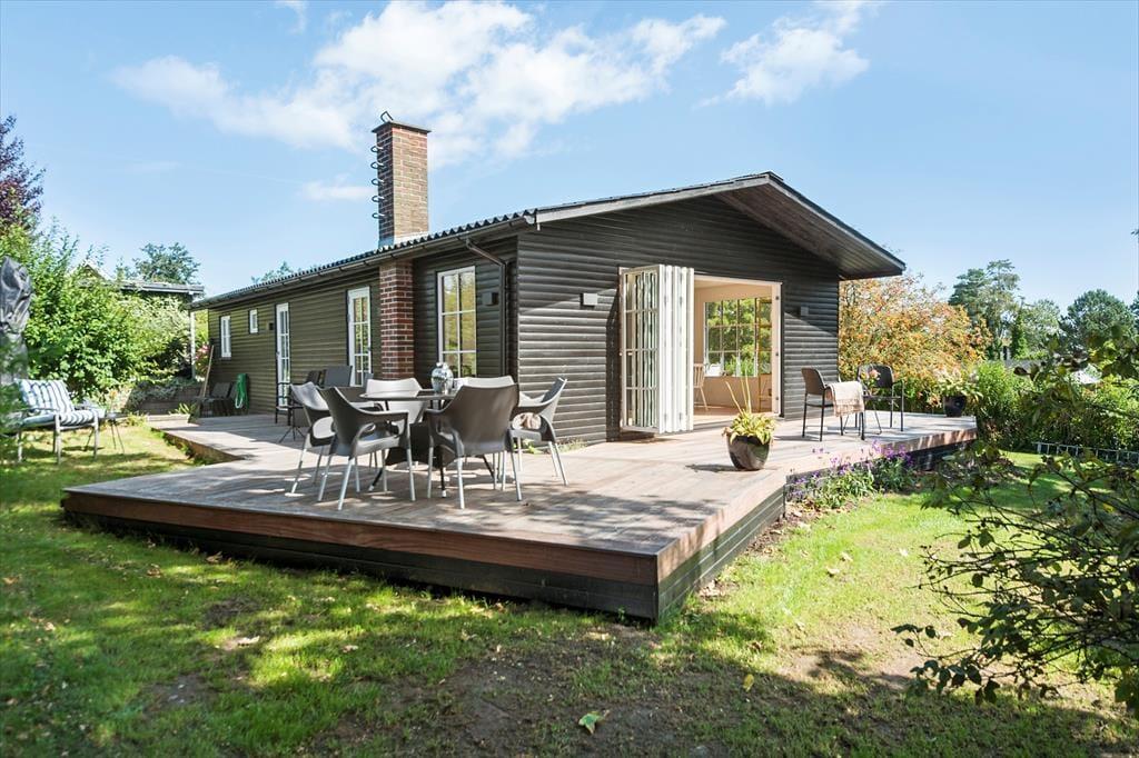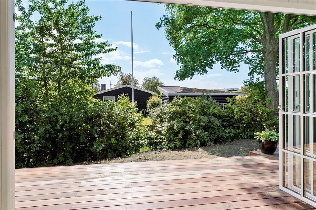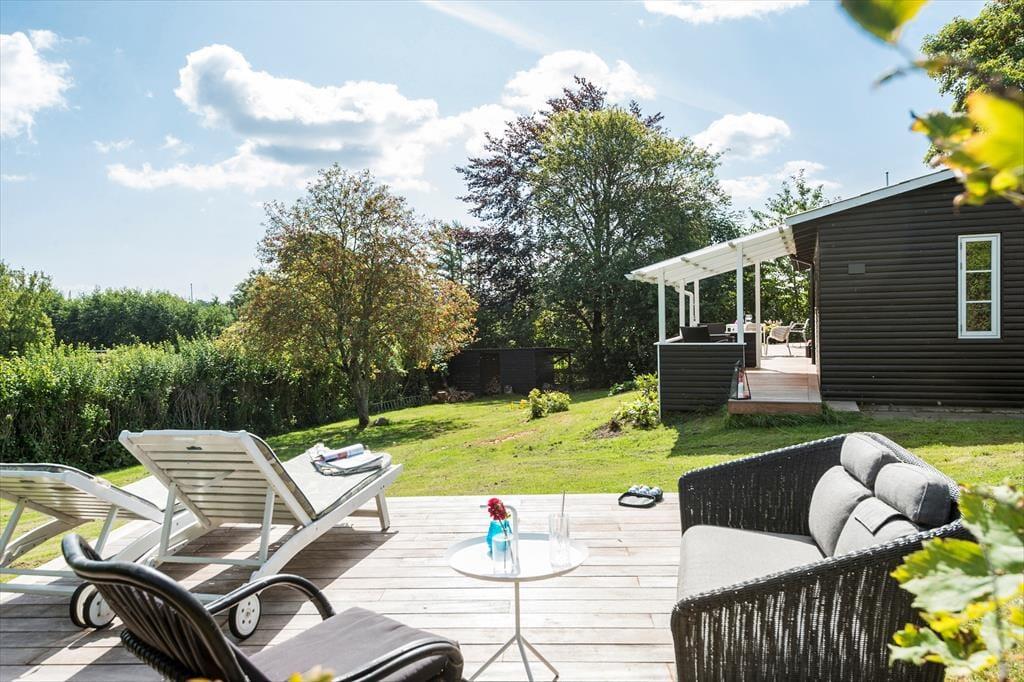 Fra stuen og spiseområdet går du direkte ud på en dejlig træterrasse der går hele vejen rundt om huset, og her kan du nyde de lange sommeraftener i alle dens faser. Huset har et stort, dejligt alrum, hvor hele familien kan samles, og gode værelser, hvor du kan trække dig tilbage og nyde freden.
