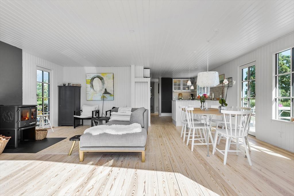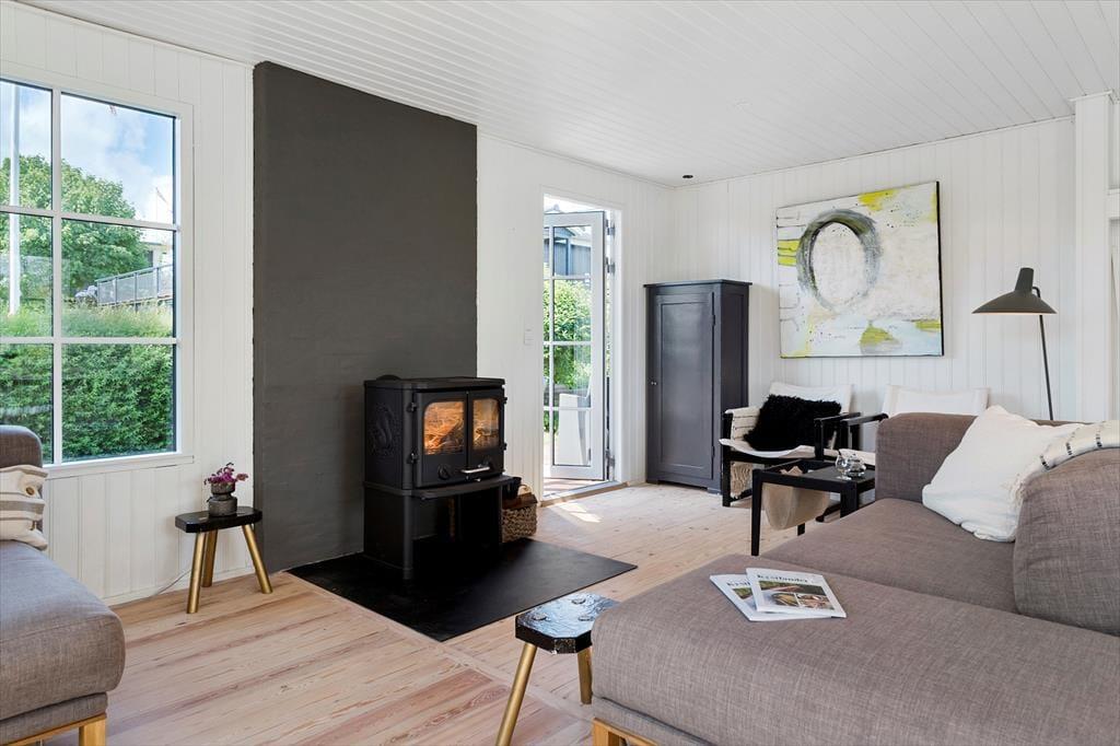 Når du træder ind i det lyse og lækre sommerhus, vil du straks mærke roen og hyggen brede sig. Stuen har en helt ny og lækker brændeovn, som indbyder til hyggelige aftener, og indretningen er gennemført med god sans for detaljen i en ny nordisk sommerhusstil.