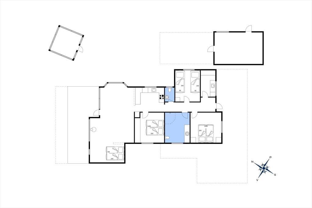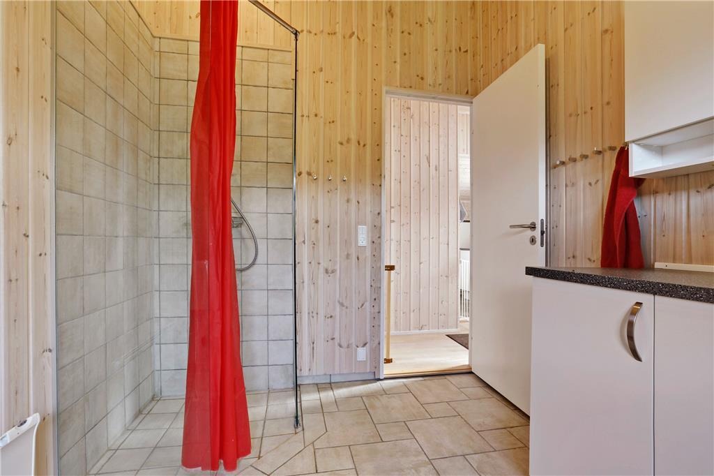 Dette sommerhus er fra 2008, det fremstår lyst og stort og med moderne indretning. Husets 101 kvm er fordelt på et køkken med opvaskemaskine, der er i åben forbindelse til den store stue, der er med brændeovn. I stuen er der en alkove med en dobbeltseng. Herudover er der tre soverum med henholdsvis to dobbeltsenge og to enkeltsenge. Herudover er der et badeværelse med brus og gulvvarme og et gæstetoilet. Huset har desuden et bryggers.