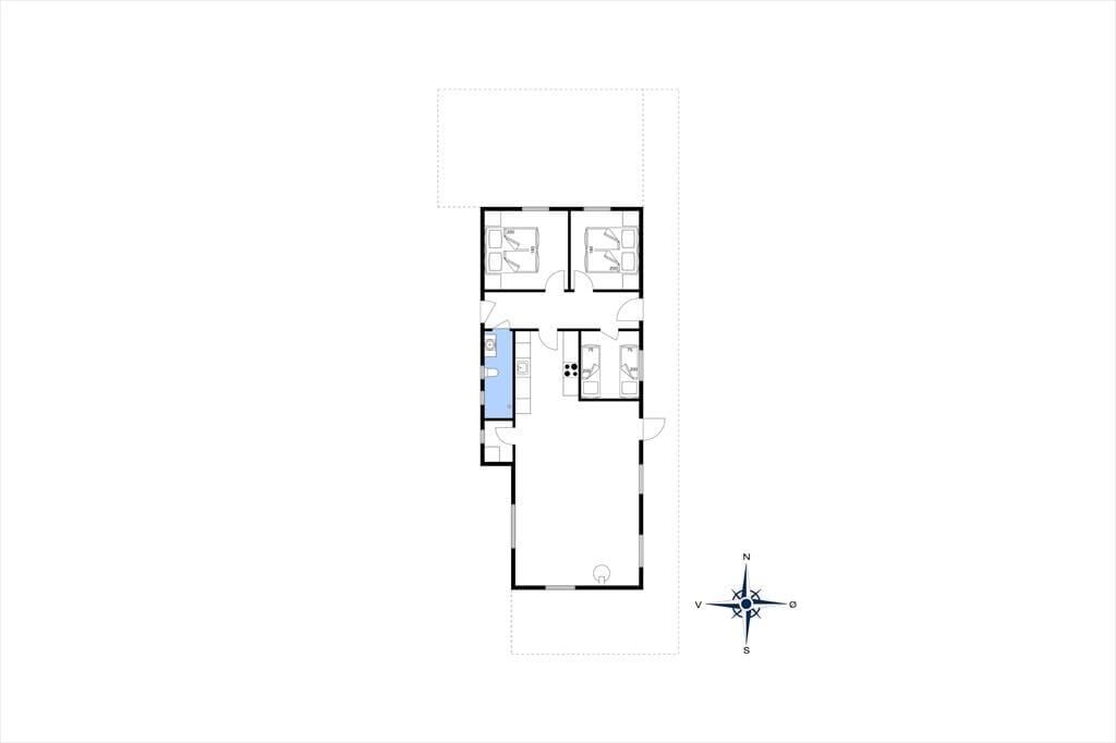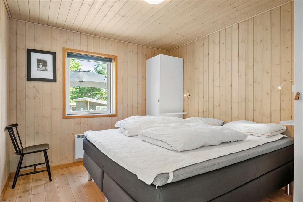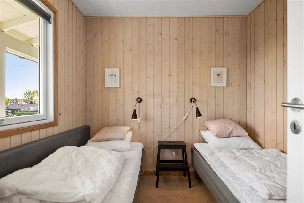 Sovepladserne er fordelt i 3 soverum med to dobbeltsenge og 2 enkelte senge – alle med gode madrasser.