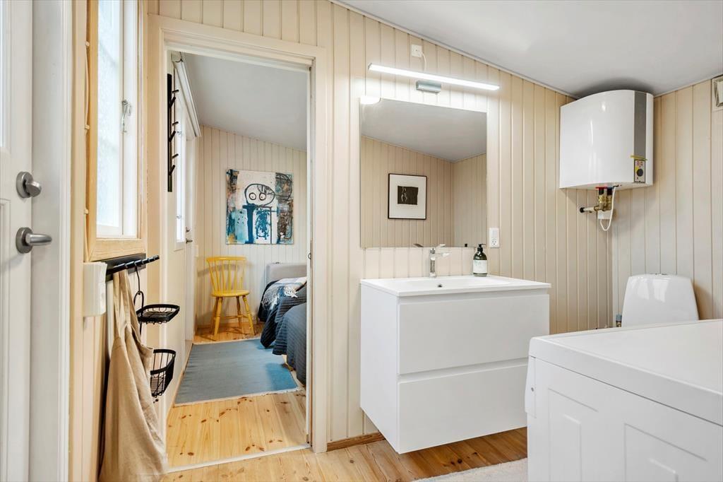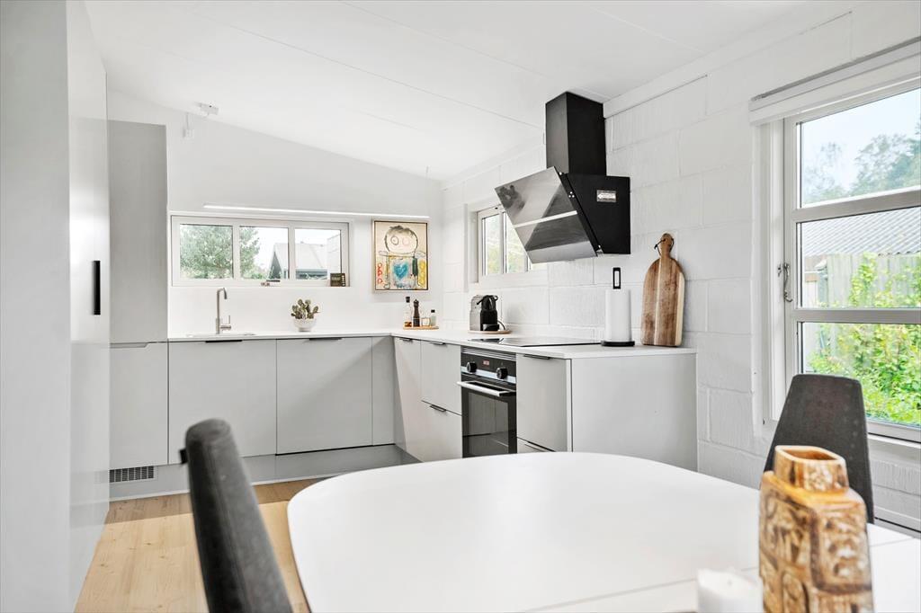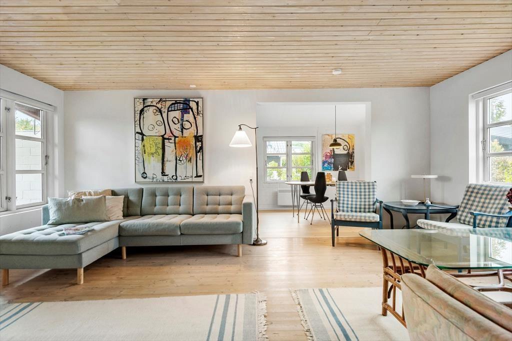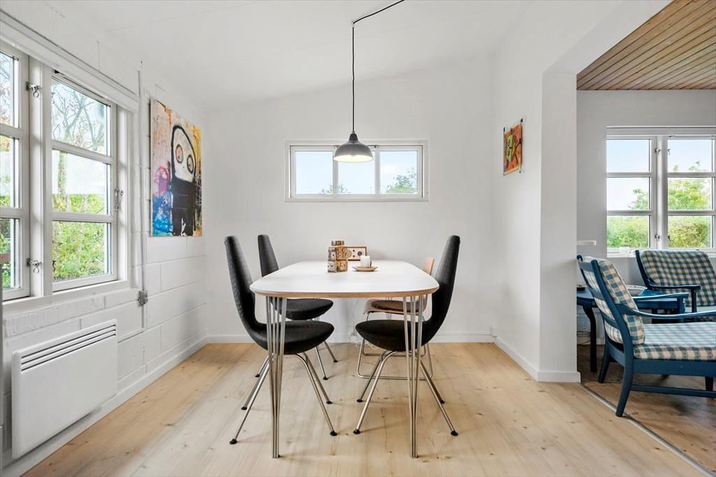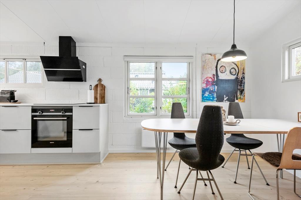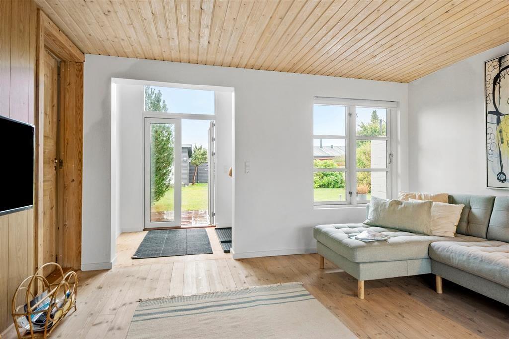 Når du træder ind i huset, bliver du mødt af en afslappet atmosfære, der indbyder til at sænke skuldrene og trække vejret dybt. Lyset fra de store vinduer fylder rummene, og den lyse indretning skaber en rolig og behagelig stemning. Her er alt, hvad du behøver for at føle dig hjemme – et åbent opholdsrum, hvor stue og køkken smelter sammen, og hvor du nemt kan være sammen med familie og venner, mens der bliver lavet mad eller snakket om dagens oplevelser. Det er et hjem, hvor du mærker, at ferien begynder, så snart du træder indenfor. Sæt dig godt til rette med en bog, find et spil frem eller nyd bare stilheden og den lette summen af sommer udenfor.